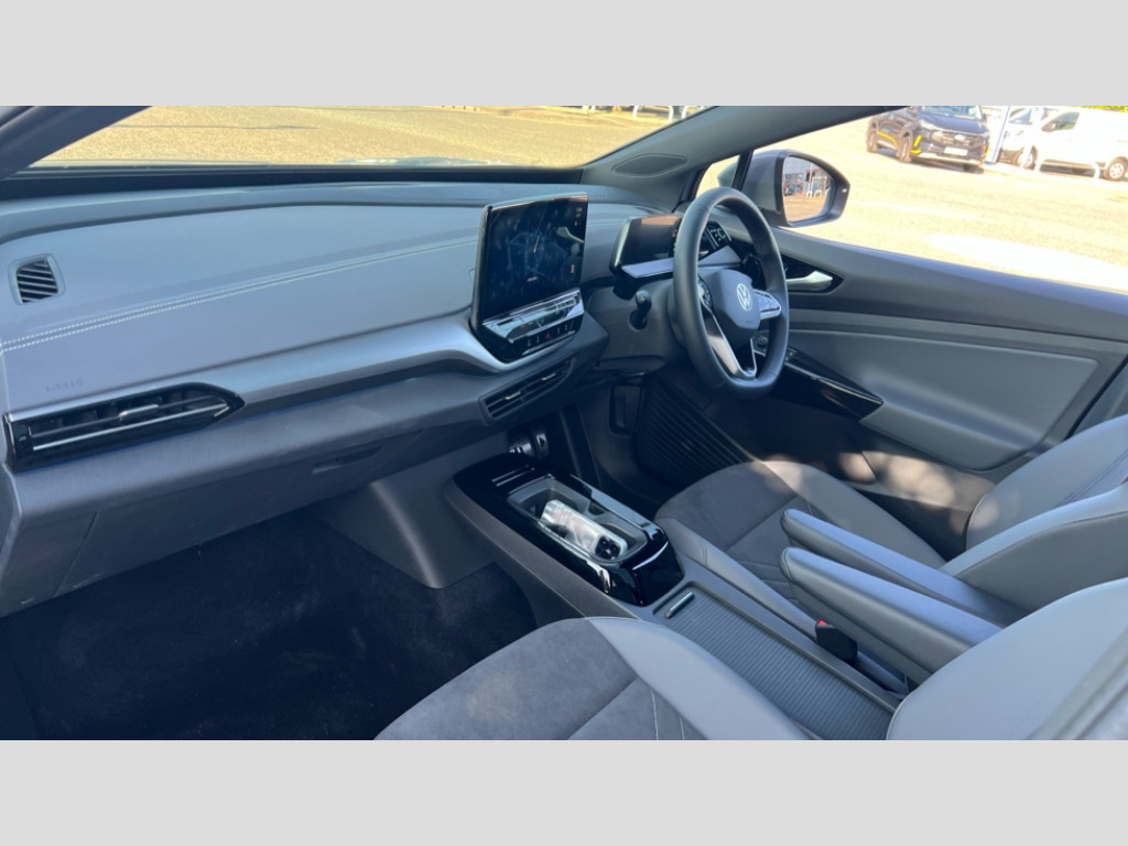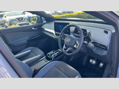 Volkswagen Id.5 128kW Style Pro 77kWh 5dr Auto App connect with wireless connection for apple carplay and android auto, Car2X intelligent vehicle networking, Driver alert system, Driver profile selection, Dynamic road sign display, E-call, Emergency assist 3.0, ID. Light, Natural voice control, Oncoming vehicle braking when turning including swerve support, Online service, with OCU, with head unit coding, without engine immobilizer interconnection, Power assisted speed sensitive steering, Speedo and rev counter, electronic odometer, trip, service interval display and exterior temperature gauge, Traffic sign recognition, USB-C ports in the front and rear centre console with increased charging performance, Warning signal and warning light for front and rear seatbelts not fastened, Auxillary battery with operating voltage 12V, DC Battery charging capacity, Mode 3 32-amp / 7.2kW charging cable for charging at public charge points, On board battery charger, 1-phase 7.2kW and 3-phase 11kW, Rear wheel drive, Standard electronic engine sound actuator, DAB Digital radio, Diversity antenna for FM reception, AC Charging socket, Aggressive front bumper, Aggressive rear bumper and diffuser, Automatic dimming interior rear view mirror, Body coloured bumpers, Climate windscreen, Daytime running lights, Exterior ambient lighting, Exterior mirrors aspherical on driver side, convex on front passenger side, Front electric windows, Gloss black door mirrors with integrated indicators, Integrated door handle, Integrated rear spoiler, Painted side skirt, Privacy glass with 65% tinted windows, Rear side wing doors, Roof frame and C-pillar in silver glossy, Roof trim strip in matte black, Silver roof frame strip, Third brake light, Welcome light, 3 seat bench in 2nd row, Art Velours microfleece cloth upholstery, Central control unit in black, Door and side trim panel with leatherette insert, Electric auxiliary air heater, Front + rear carpet mats in recycled material, Front seat armrests, Headliner in recycled material, Isofix child seat preparation easy-fit (for two outer rear seats, and front passenger seat) compatible with I-size, Safety optimised front head restraints, Single front passenger seat, Soul black and platinum grey dash inserts, Sun visors with illuminated vanity mirrors, Three rear head restraints, Variable boot floor, height adjustable and removable, Assistance pack - ID.5 Style, Comfort plus pack - ID.5, Design plus pack - ID.5, Interior style pack - ID.5, 3 Point seat belts in front with pretensioners, 3x3 point rear seatbelts, Anti-lock braking system (ABS), Autonomous emergency braking front assist with pedestrian and cyclist monitoring, Driver and front passenger airbag with front passenger airbag deactivation, Electronic Stability Programme (ESP), First aid kit with warning triangle, safety vest + 2 face masks, Front curtain and side airbags with center airbag, Front disc brakes and rear drum brakes, Pre-crash occupant protection, Rear door child safety locks, Single torn horn, Traction control, Tyre pressure loss indicator, Anti theft wheel bolts, Immobiliser, Remote central locking, Wheel locks with extended theft protection, Sealed tyres, Tool kit, Tyre repair kit