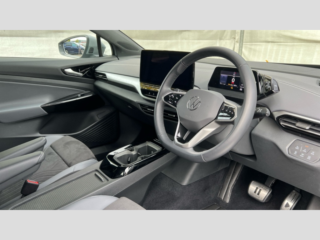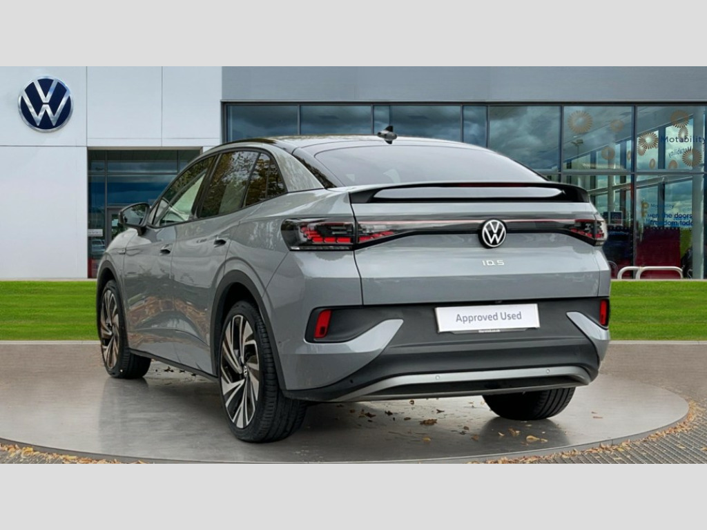 Volkswagen Id.5 128kW Tech Pro 77kWh 5dr Auto App connect with wireless connection for apple carplay and android auto, Car2X intelligent vehicle networking, Driver alert system, Driver profile selection, Dynamic road sign display, E-call, Emergency assist 3.0, ID. Light, Natural voice control, Oncoming vehicle braking when turning including swerve support, Online service, with OCU, with head unit coding, without engine immobilizer interconnection, Power assisted speed sensitive steering, Speedo and rev counter, electronic odometer, trip, service interval display and exterior temperature gauge, Traffic sign recognition, USB-C ports in the front and rear centre console with increased charging performance, Warning signal and warning light for front and rear seatbelts not fastened, Auxillary battery with operating voltage 12V, DC Battery charging capacity, Mode 3 32-amp / 7.2kW charging cable for charging at public charge points, On board battery charger, 1-phase 7.2kW and 3-phase 11kW, Rear wheel drive, Standard electronic engine sound actuator, DAB Digital radio, Diversity antenna for FM reception, AC Charging socket, Aggressive front bumper, Aggressive rear bumper and diffuser, Automatic dimming interior rear view mirror, Body coloured bumpers, Climate windscreen, Daytime running lights, Exterior ambient lighting, Exterior mirrors aspherical on driver side, convex on front passenger side, Front electric windows, Gloss black door mirrors with integrated indicators, Integrated door handle, Integrated rear spoiler, Painted side skirt, Privacy glass with 65% tinted windows, Rear side wing doors, Roof frame and C-pillar in silver glossy, Roof trim strip in matte black, Silver roof frame strip, Third brake light, Welcome light, 3 seat bench in 2nd row, Art Velours microfleece cloth upholstery, Central control unit in black, Door and side trim panel with leatherette insert, Electric auxiliary air heater, Front + rear carpet mats in recycled material, Front seat armrests, Headliner in recycled material, Isofix child seat preparation easy-fit (for two outer rear seats, and front passenger seat) compatible with I-size, Safety optimised front head restraints, Single front passenger seat, Soul black and platinum grey dash inserts, Sun visors with illuminated vanity mirrors, Three rear head restraints, Variable boot floor, height adjustable and removable, Assistance plus pack - ID.5, Comfort plus pack - ID.5, Design plus pack - ID.5, Infotainment plus pack - ID.5, Interior style plus pack - ID.5, 3 Point seat belts in front with pretensioners, 3x3 point rear seatbelts, Anti-lock braking system (ABS), Autonomous emergency braking front assist with pedestrian and cyclist monitoring, Driver and front passenger airbag with front passenger airbag deactivation, Electronic Stability Programme (ESP), First aid kit with warning triangle, safety vest + 2 face masks, Front curtain and side airbags with center airbag, Front disc brakes and rear drum brakes, Pre-crash occupant protection, Rear door child safety locks, Single torn horn, Traction control, Tyre pressure loss indicator, Anti theft wheel bolts, Immobiliser, Remote central locking, Wheel locks with extended theft protection, Sealed tyres, Tool kit, Tyre repair kit