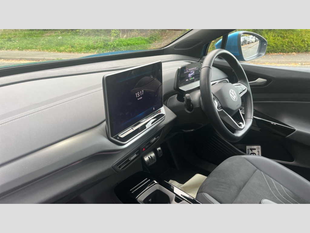 Volkswagen Id.5 210kW Match Pro 77kWh 5dr Auto 12.9" infotainment screen, 2 x Front USB-C ports,2 x USB-C charging sockets on the centre console in the rear,charging capacity up to 45W, Adaptive cruise control, Advanced driver attention and drowsiness monitor, App connect with wireless connection for apple carplay and android auto, Car2X intelligent vehicle networking, Discover pro navigation, Driving profile selection, Dynamic road sign display, E-call, Electrically-operated tailgate opening and closing function (Easy open), operated via foot movement under rear tailgate, Emergency assist 3.0, ID. Light, Lane assist, Natural voice control, Oncoming vehicle braking when turning including swerve support, Park assistance plus with front and rear parking sensors, Power assisted speed sensitive steering, Preparation for We connect and We connect plus, Speedo and rev counter, electronic odometer, trip, service interval display and exterior temperature gauge, Traffic sign recognition, Warning signal and warning light for front and rear seatbelts not fastened, Wireless Smartphone charger, 82 kWh High voltage battery, AC charging socket (Type 2), Auxillary battery with operating voltage 12V, Charging cable mode 3, Type 2: 7.2kW 1-Phase/11kW 3-Phase (32A), DC battery charging capablity (Type 2:CCS), DC-DC converter 2.4 kW, Rear wheel drive, Standard electronic engine sound actuator, DAB Digital radio, Diversity antenna for FM reception, Radio - Ready 2 discover, Advanced dynamic light assist for LED matrix headlights, Ambient lighting - Exterior illuminated styling elements in door handle recesses and front grille, Automatic dimming interior rear view mirror, Body coloured bumpers, Climate windscreen, Daytime running lights, Exterior mirrors aspherical on driver side, convex on front passenger side, Front electric windows, Gloss black door mirrors with integrated indicators, Heated windscreen washer jets, Illuminated molding between headlamps, Integrated door handle, LED rear tail lights with dynamic turn signal, Matrix LED headlights with automatic headlight control, poor weather light and entry lighting, Power adjustable, heated exterior mirrors, Privacy glass with 65% tinted windows, Rain sensor, Rear side wing doors, Rear tinted glass from B-pillar backwards approx 65% tinted, Roof trim strip in matte black, Third brake light, Welcome light, 3 seat bench in 2nd row, 30 colour ambient lighting, Air care climatronic 2 zone air conditioning system, Art Velours microfleece cloth upholstery, Central control unit in black, Centre console with illuminated storage compartment with sliding cover and two drinks holders, Door and side trim panel with leatherette insert, Electric auxiliary air heater, Front + rear carpet mats, Front seat armrests, Headliner in recycled material, Heated front seats, Interior style comfort seats, Isofix child seat preparation easy-fit (for two outer rear seats, and front passenger seat) compatible with I-size, Leather wrapped multi function steering wheel, heated with touch control, Net partition, Play and Pause brake and accelerator pedals, Rear seat bench unsplit, backrest split folding with center armrest, Safety optimised front head restraints, Single front passenger seat, Sun visors with illuminated vanity mirrors, Three rear head restraints, 3 Point seat belts in front with pretensioners, 3x3 point rear seatbelts, Anti-lock braking system (ABS), Autonomous emergency braking front assist with pedestrian and cyclist monitoring, Driver and front passenger airbag with front passenger airbag deactivation, Electronic Stability Programme (ESP), First aid kit with warning triangle and safety vest, Front curtain and side airbags with center airbag, Front disc brakes and rear drum brakes, Pre-crash occupant protection, Proactive passenger protection system in combination with front assist, Rear door child safety locks, Single torn horn, Traction control, Tyre pressure loss indicator, Alarm with interior protection, Anti theft wheel bolts, Immobiliser, Keyless entry and keyless start, Remote central locking, Wheel locks with extended theft protection, Soul black dash trim, Tool kit, Tyre repair kit
