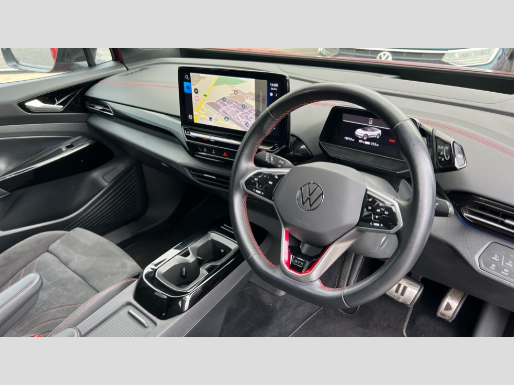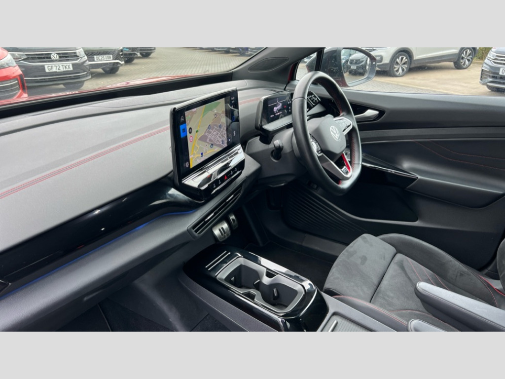 Volkswagen Id.5 220kW 4MOTION GTX Max 77kWh 5dr Auto App connect with wireless connection for apple carplay and android auto, Car2X intelligent vehicle networking, Driver alert system, Dynamic road sign display, E-call, Emergency assist 3.0, ID. Light, Natural voice control, Oncoming vehicle braking when turning including swerve support, Online service, with OCU, with head unit coding, without engine immobilizer interconnection, Speedo and rev counter, electronic odometer, trip, service interval display and exterior temperature gauge, Traffic sign recognition, USB-C ports in the front and rear centre console with increased charging performance, Warning signal and warning light for front and rear seatbelts not fastened, All wheel drive - 4Motion, Auxillary battery with operating voltage 12V, DC Battery charging capacity, Mode 3 32-amp / 7.2kW charging cable for charging at public charge points, On board battery charger, 1-phase 7.2kW and 3-phase 11kW, Rear shock absorption, Standard electronic engine sound actuator, DAB Digital radio, Diversity antenna for FM reception, 2 Piece GTX badge, AC Charging socket, Automatic dimming interior rear view mirror, Body coloured bumpers, Climate windscreen, Daytime running lights, Differentiated front bumper including AFS additional light, Differentiated rear bumper with diffuser/clip in galvano grey, Door sill protectors with GTX inscription at the front, Exterior ambient lighting, Exterior mirrors aspherical on driver side, convex on front passenger side, Front electric windows, Front underbody guard, Gloss black door mirrors with integrated indicators, Integrated door handle, Painted side skirt, Privacy glass with 65% tinted windows, Rear side wing doors, Roof frame and C-pillar in anthracite glossy, Roof trim strip in matte black, Silver roof frame strip, Third brake light, Welcome light, 3 seat bench in 2nd row, Art Velours microfleece cloth upholstery, Central control unit in black, Dark blue leatherette insert on door and side trim panel in foam film, Decor in black glossy, Electric auxiliary air heater, Energy efficient heat pump, Front + rear carpet mats in recycled material, Front seat armrests, GTx specific HMI content, Headliner in recycled material, Instrument panel in dark blue with double cap seam in red, Isofix child seat preparation easy-fit (for two outer rear seats, and front passenger seat) compatible with I-size, Leatherette-wrapped (imitation leather) heated multifunction steering wheel with touch control, Safety optimised front head restraints, Single front passenger seat, Soul black and GTX blue dash inserts, Sun visors with illuminated vanity mirrors, Three rear head restraints, Variable boot floor, height adjustable and removable, Assistance plus pack - ID.5, Comfort plus pack - ID.5, Design plus pack - ID.5, Infotainment plus pack - ID.5, Interior top sport plus pack - ID.5, Sports plus pack - ID.5, 3 Point seat belts in front with pretensioners, 3x3 point rear seatbelts, Anti-lock braking system (ABS), Autonomous emergency braking front assist with pedestrian and cyclist monitoring, Driver and front passenger airbag with front passenger airbag deactivation, Electronic Stability Programme (ESP), First aid kit with warning triangle, safety vest + 2 face masks, Front curtain and side airbags with center airbag, Front disc brakes and rear drum brakes, Pre-crash occupant protection, Rear door child safety locks, Single torn horn, Traction control, Tyre pressure loss indicator, Anti theft wheel bolts, Immobiliser, Remote central locking, Wheel locks with extended theft protection, Pirelli tyres, Sealed tyres, Tool kit, Tyre repair kit