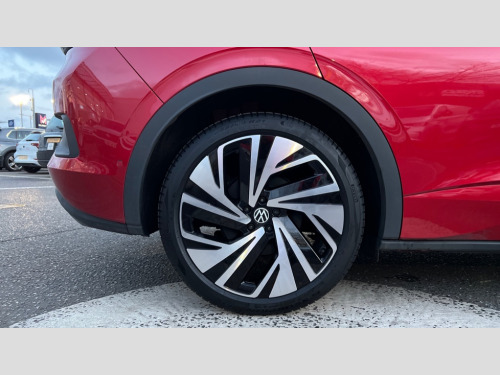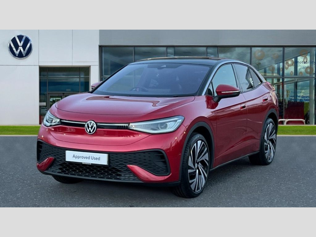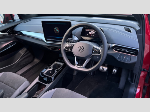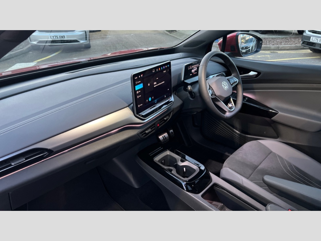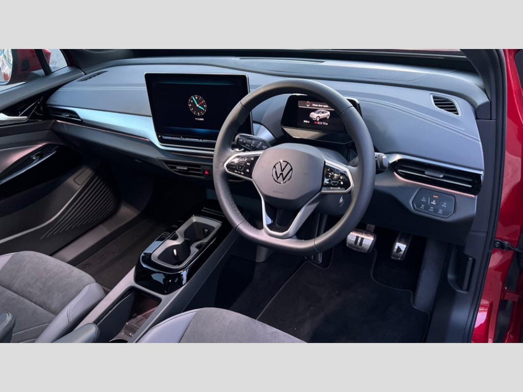 Volkswagen Id.5 210kW Match Pro 77kWh 5dr Auto 12.9" infotainment screen, 2 x Front USB-C ports,2 x USB-C charging sockets on the centre console in the rear,charging capacity up to 45W, Adaptive cruise control, Advanced driver attention and drowsiness monitor, App connect with wireless connection for apple carplay and android auto, Discover pro navigation, Driving profile selection, Dynamic road sign display, E-call, Emergency assist 3.0, ID. Light, Lane assist, Natural voice control, Oncoming vehicle braking when turning including swerve support, Power assisted speed sensitive steering, Preparation for We connect and We connect plus, Side assist blind spot lane change system, rear traffic alert and exit warning system, Speedo and rev counter, electronic odometer, trip, service interval display and exterior temperature gauge, Traffic sign recognition, Warning signal and warning light for front and rear seatbelts not fastened, Wireless Smartphone charger, 82 kWh High voltage battery, AC charging socket (Type 2), Charging cable mode 3, Type 2: 7.2kW 1-Phase/11kW 3-Phase (32A), DC battery charging capablity (Type 2:CCS), DC-DC converter 2.4 kW, Rear wheel drive, Standard electronic engine sound actuator, DAB Digital radio, Diversity antenna for FM reception, Gaming platform via car app, Radio - Ready 2 discover, Advanced dynamic light assist for LED matrix headlights, Automatic dimming interior rear view mirror, Body coloured bumpers, Climate windscreen, Daytime running lights, Exterior mirrors convex on the left and aspherical on the right, Front electric windows, Gloss black door mirrors with integrated indicators, Heat insulating glass in side and rear windows, Heated windscreen washer jets, Illuminated molding between headlamps, Integrated door handle, LED rear tail lights with dynamic turn signal, Matrix LED headlights with automatic headlight control, poor weather light and entry lighting, Power adjustable, heated and folding mirrors, Rain sensor, Rear side wing doors, Rear tinted glass from B-pillar backwards approx 65% tinted, Roof trim strip in matte black, Third brake light, Welcome light, 3 seat bench in 2nd row, Air care climatronic 2 zone air conditioning system, Art Velours microfleece cloth upholstery, Black steering wheel, Central control unit in black, Centre console with illuminated storage compartment with sliding cover and two drinks holders, Door and side trim panel with leatherette insert, Electric auxiliary air heater, Front + rear carpet mats, Front seat armrests, Headliner in recycled material, Heated front seats, Interior style comfort seats, Isofix child seat preparation easy-fit (for two outer rear seats, and front passenger seat) compatible with I-size, Leather wrapped multi function steering wheel, heated with touch control, Net partition, Operating voltage 12V, Play and Pause brake and accelerator pedals, Rear seat bench unsplit, backrest split folding with center armrest, Safety optimised front head restraints, Single front passenger seat, Sun visors with illuminated vanity mirrors, Three rear head restraints, 3 Point seat belts in front with pretensioners, 3x3 point rear seatbelts, Anti-lock braking system (ABS), Autonomous emergency braking front assist with pedestrian and cyclist monitoring, Driver and front passenger airbag with front passenger airbag deactivation, Electronic Stability Programme (ESP), First aid kit with warning triangle and safety vest, Front curtain and side airbags with center airbag, Front disc brakes and rear drum brakes, Pre-crash occupant protection, Proactive passenger protection system in combination with front assist, Rear door child safety locks, Traction control, Two tone horn, Tyre pressure loss indicator, Alarm with interior protection, Anti theft wheel bolts, Immobiliser, Remote central locking, Wheel locks with extended theft protection, Soul black dash trim, Tool kit, Tyre repair kit