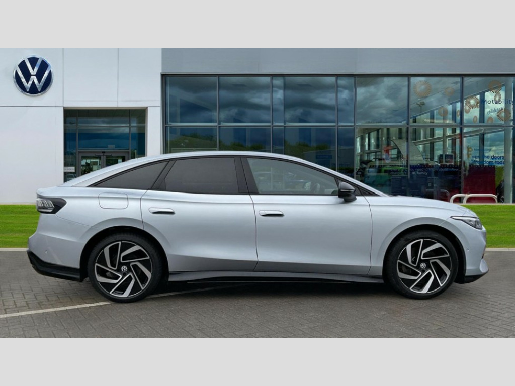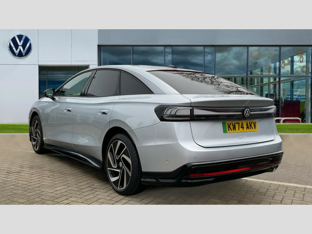 Volkswagen Id.7 210kW Match Pro 77kWh 5dr Auto Adaptive cruise control, Advanced driver attention and drowsiness monitor, Area view including rear view camera, Augmented reality head up display, Car2X intelligent vehicle networking, Digital instrument cluster, Discover pro navigation system with 15" centre display, media and internet package, Dynamic road sign display, Emergency call service, Engine start button, Lane change system, Side assist, Rear traffic alert and Exit warning system, Memory feature for park assist, Oncoming vehicle braking when turning including swerve support, Park assist plus with park distance control, Preparation for Volkswagen connect, Semi-automatic vehicle control in an emergency, Speedo and rev counter, electronic odometer, trip, service interval display and exterior temperature gauge, Traffic jam assist, Travel assist with lane assist and emergency assist, Voice activation for navigation and phone, Wireless App-Connect, Wireless Smartphone charger, Charging cable mode 3, Type 2: 7.2kW 1-Phase/11kW 3-Phase (32A), Standard electronic engine sound actuator, 8+1 Speakers, DAB+ radio, Gaming platform via car app, AC Charging socket, Auto dimming rear view mirror, Auto headlights, Body coloured bumpers, Charging flap with weather protection, Exterior mirrors convex on the left and aspherical on the right, Front and rear electric windows, Gloss black door mirrors with integrated indicators, Heat insulating darkened glass in side and rear windows, Heated door mirrors, Heated windscreen washer jets, High beam assist with automatic sensing for switching between dipped and main beam, LED 3rd brake light, LED daytime running lights, LED indicator lights, Rain sensor, Rear side wing doors, Rear wiper, Remote electrically foldable door mirrors, puddle lights and reverse activated tilting door mirror, Roof aerial, Welcome lights, Windscreen - Laminated, heated, infrared-reflecting and sound insulating, 12 way power seat adjustment for both front seats, with memory feature and seat depth adjustment, 2 USB-C ports in the front, 2 USB-C charging sockets on the center console in the rear, 3 zone air care climatronic with rear air conditioning control panel, 30 colours options interior ambient lighting, Allergen filter and enhanced air filter, Art Velours eco microfleece cloth upholstery with seat bolsters in Artex, Black carpet mats, Door and side trim panel in foam film, insert in leatherette, Electric auxiliary air heater, ErgoActive comfort seats in front, First aid kit, warning triangle and safety vest, Front centre armrest, Front seats with massage programs, Heated front seats, Isofix child seat preparation, Leatherette-wrapped multifunction heated steering wheel with touch control, Luggage compartment floor, folding with stowage area, Luggage net and storage net on sides, Matt black interior door handles, Play and Pause brake and accelerator pedals, Power adjustable lumbar support in front, Rear centre headrest, Rear seat bench unsplit, backrest split folding with center armrest including 2 cup holders, Single front passenger seat, Sun visors with illuminated vanity mirrors, System optimised front head restraints, Variable boot floor, height adjustable and removable, 3 point seat belts in front with seat belt pretensioners, 3x3 point rear seatbelts, ABS, Autonomous emergency braking front assist with pedestrian and cyclist monitoring, Brake energy recuperation, Driver and front passenger airbag with front passenger airbag deactivation, Electric parking brake, ESP, Extended safety system with proactive passenger protection system, Front curtain and side airbags with center airbag, Front disc brakes, Rear door child safety locks, Rear drum brakes, Tyre pressure warning, Warning signal and warning light for front and rear seat belts not fastened, Anti theft alarm, Anti theft wheel bolts, Immobiliser, Keyless entry and start with safelock, Comfort dashboard in soul black, Tool kit for tyre mobility