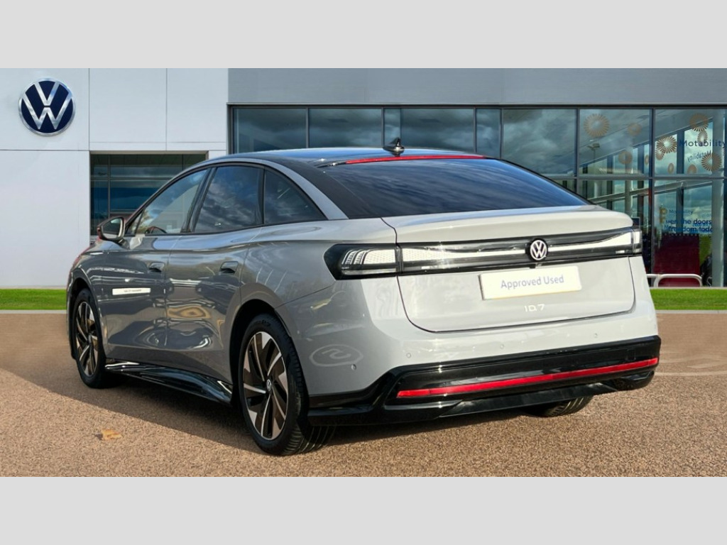 This 2024 Volkswagen ID.7 Pro Match is a Volkswagen manufacturer approved electric vehicle, boasting a single owner from new. This impressive ID.7, in its Match trim, offers a substantial 82 kWh battery capacity, providing a remarkable maximum range of 382 miles. For your convenience, it features a swivelling towbar, adaptive cruise control for effortless journeys, and a comfort package that includes climate control, a heated steering wheel, and wireless phone charging. Illuminating your way are the IQ.LIGHT LED matrix headlights with automatic control, and accessing the vehicle is seamless with keyless entry and starting with SAFELOCK.