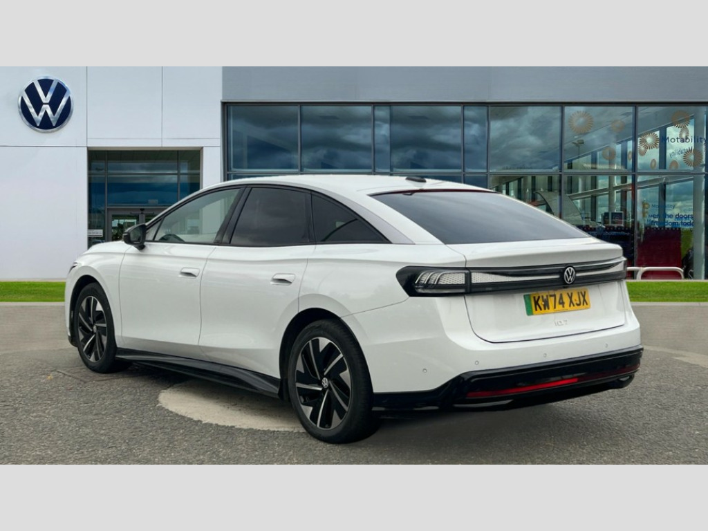 Volkswagen Id.7 210kW Match Pro 77kWh 5dr Auto Adaptive cruise control, Advanced driver attention and drowsiness monitor, Area view including rear view camera, Augmented reality head up display, Car2X intelligent vehicle networking, Digital instrument cluster, Discover pro navigation system with 15" centre display, media and internet package, Dynamic road sign display, Emergency call service, Engine start button, Lane change system, Side assist, Rear traffic alert and Exit warning system, Memory feature for park assist, Oncoming vehicle braking when turning including swerve support, Park assist plus with park distance control, Preparation for Volkswagen connect, Semi-automatic vehicle control in an emergency, Speedo and rev counter, electronic odometer, trip, service interval display and exterior temperature gauge, Traffic jam assist, Travel assist with lane assist and emergency assist, Voice activation for navigation and phone, Wireless App-Connect, Wireless Smartphone charger, Charging cable mode 3, Type 2: 7.2kW 1-Phase/11kW 3-Phase (32A), Standard electronic engine sound actuator, 8+1 Speakers, DAB+ radio, Gaming platform via car app, AC Charging socket, Auto dimming rear view mirror, Auto headlights, Body coloured bumpers, Charging flap with weather protection, Exterior mirrors convex on the left and aspherical on the right, Front and rear electric windows, Gloss black door mirrors with integrated indicators, Heat insulating darkened glass in side and rear windows, Heated door mirrors, Heated windscreen washer jets, High beam assist with automatic sensing for switching between dipped and main beam, LED 3rd brake light, LED daytime running lights, LED indicator lights, Rain sensor, Rear side wing doors, Rear wiper, Remote electrically foldable door mirrors, puddle lights and reverse activated tilting door mirror, Roof aerial, Welcome lights, Windscreen - Laminated, heated, infrared-reflecting and sound insulating, 12 way power seat adjustment for both front seats, with memory feature and seat depth adjustment, 2 USB-C ports in the front, 2 USB-C charging sockets on the center console in the rear, 3 zone air care climatronic with rear air conditioning control panel, 30 colours options interior ambient lighting, Allergen filter and enhanced air filter, Art Velours eco microfleece cloth upholstery with seat bolsters in Artex, Black carpet mats, Door and side trim panel in foam film, insert in leatherette, Electric auxiliary air heater, ErgoActive comfort seats in front, First aid kit, warning triangle and safety vest, Front centre armrest, Front seats with massage programs, Heated front seats, Isofix child seat preparation, Leatherette-wrapped multifunction heated steering wheel with touch control, Luggage compartment floor, folding with stowage area, Luggage net and storage net on sides, Matt black interior door handles, Play and Pause brake and accelerator pedals, Power adjustable lumbar support in front, Rear centre headrest, Rear seat bench unsplit, backrest split folding with center armrest including 2 cup holders, Single front passenger seat, Sun visors with illuminated vanity mirrors, System optimised front head restraints, Variable boot floor, height adjustable and removable, 3 point seat belts in front with seat belt pretensioners, 3x3 point rear seatbelts, ABS, Autonomous emergency braking front assist with pedestrian and cyclist monitoring, Brake energy recuperation, Driver and front passenger airbag with front passenger airbag deactivation, Electric parking brake, ESP, Extended safety system with proactive passenger protection system, Front curtain and side airbags with center airbag, Front disc brakes, Rear door child safety locks, Rear drum brakes, Tyre pressure warning, Warning signal and warning light for front and rear seat belts not fastened, Anti theft alarm, Anti theft wheel bolts, Immobiliser, Keyless entry and start with safelock, Comfort dashboard in soul black, Tool kit for tyre mobility