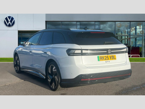 Volkswagen Id.7 250kW 4MOTION GTX 86kWh 5dr Auto Adaptive cruise control, Advanced driver attention and drowsiness monitor, Area view including rear view camera, Augmented reality head up display, Car2X intelligent vehicle networking, Digital instrument cluster, Discover pro navigation system with 15" centre display, media and internet package, Dynamic road sign display, Emergency call service, Engine start button, Lane change system, Side assist, Rear traffic alert and Exit warning system, Memory feature for park assist, Oncoming vehicle braking when turning including swerve support, Park assist plus with park distance control, Power assisted speed sensitive steering, Preparation for Volkswagen connect, Semi-automatic vehicle control in an emergency, Speedo and rev counter, electronic odometer, trip, service interval display and exterior temperature gauge, Traffic jam assist, Travel assist with lane assist and emergency assist, Voice activation for navigation and phone, Wireless App-Connect, Wireless Smartphone charger, Charging cable mode 3, Type 2: 7.2kW 1-Phase/11kW 3-Phase (32A), DC battery charging capability (Type 2-CCS), Front shock absorption, Standard electronic engine sound actuator, DAB+ radio, Gaming platform via car app, Harman Kardon sound system with 12 speakers, digital 16-channel amplifier, subwoofer and 700W total power output, AC Charging socket, Advanced dynamic light assist for LED matrix headlights, Auto dimming rear view mirror, Charging flap with weather protection, Dynamic headlight range control with dynamic cornering light, Exterior mirrors convex on the left and aspherical on the right, Front and rear electric windows, Gloss black door mirrors with integrated indicators, Heated door mirrors, Heated windscreen washer jets, High beam assist with automatic sensing for switching between dipped and main beam, Illuminated emblem in front and rear and lightline between headlamp with illuminated door handle recesses, IQ.LIGHT - LED matrix headlights with automatic headlight control, LED 3rd brake light, LED daytime running lights, LED indicator lights, LED rear combination lights, Poor weather light and cornering light, Privacy glass for rear side windows and rear window, Rain sensor, Rear side wing doors, Rear wiper, Remote electrically foldable door mirrors, puddle lights and reverse activated tilting door mirror, Roof aerial, Sound insulating laminated safety glass from B-pillar backwards, Sports style body coloured bumpers, Welcome lights, 12 way power seat adjustment for both front seats, with memory feature and seat depth adjustment, 2 USB-C ports in the front, 2 USB-C charging sockets on the center console in the rear, 3 zone air care climatronic with rear air conditioning control panel, 30 colours interior ambient lighting with ID light, Allergen filter and enhanced air filter, Art Velours Prefarated eco microfleece cloth upholstery with seat bolsters inserts in Alex for front and outer rear seats, Black carpet mats, Centre console with illuminated storage compartment with sliding cover and two drinks holders, Door and side trim panel in foam film, insert in leatherette, Electric auxiliary air heater, ErgoActive comfort seats in front, First aid kit, warning triangle and safety vest, Front centre armrest, Heated front and outer rear seats, Isofix child seat preparation, Leatherette-wrapped multifunction heated steering wheel with touch control, Luggage compartment floor, folding with stowage area, Luggage net and storage net on sides, Matt black interior door handles, Play and pause stainless steel pedals, Power adjustable lumbar support in front, Rear centre headrest, Rear seat bench unsplit, backrest split folding with center armrest including 2 cup holders, Separately controlled seat heater for front and rear seats, Single front passenger seat, Sun visors with illuminated vanity mirrors, System optimised front head restraints, Variable boot floor, height adjustable and removable, Ventilated massage seats for front, Exterior plus pack with Adaptive chassis control - ID.7, 3 point seat belts in front with seat belt pretensioners, 3x3 point rear seatbelts, ABS, Autonomous emergency braking front assist with pedestrian and cyclist monitoring, Brake energy recuperation, Centre airbag, Driver and front passenger airbag with front passenger airbag deactivation, Electric parking brake, ESP, Extended safety system with proactive passenger protection system, Front and rear curtain airbags, Front and rear side airbags, Front disc brakes, Rear door child safety locks, Rear drum brakes, Tyre pressure warning, Warning signal and warning light for front and rear seat belts not fastened, Anti theft alarm, Anti theft wheel bolts, Immobiliser, Keyless entry and start with safelock, Comfort dashboard in soul black, Tool kit for tyre mobility