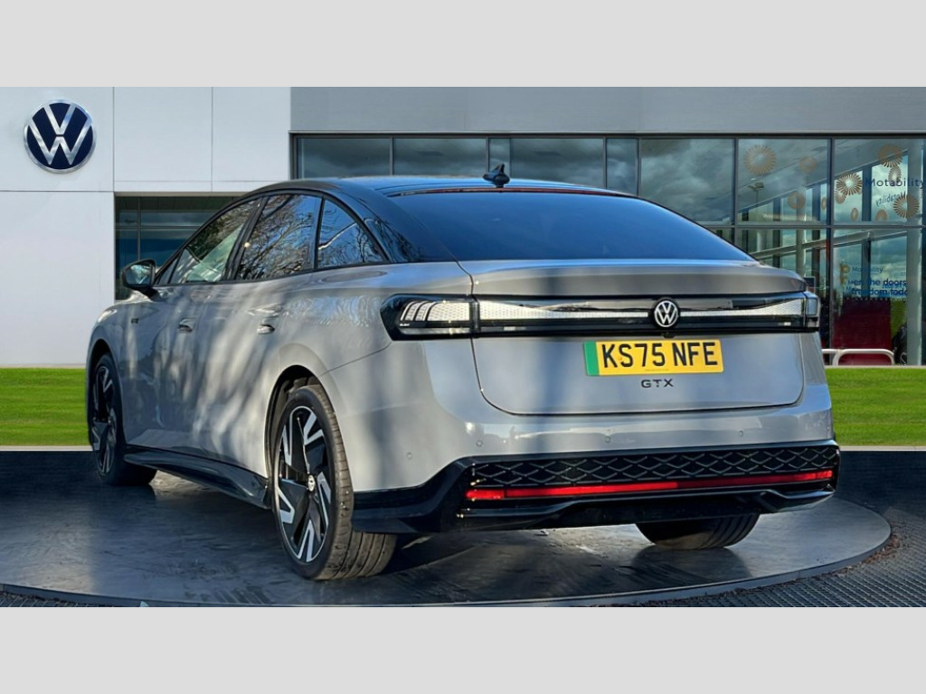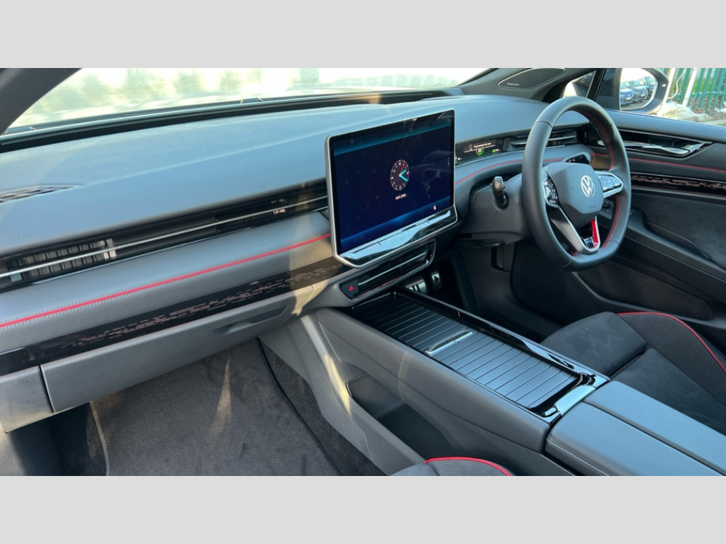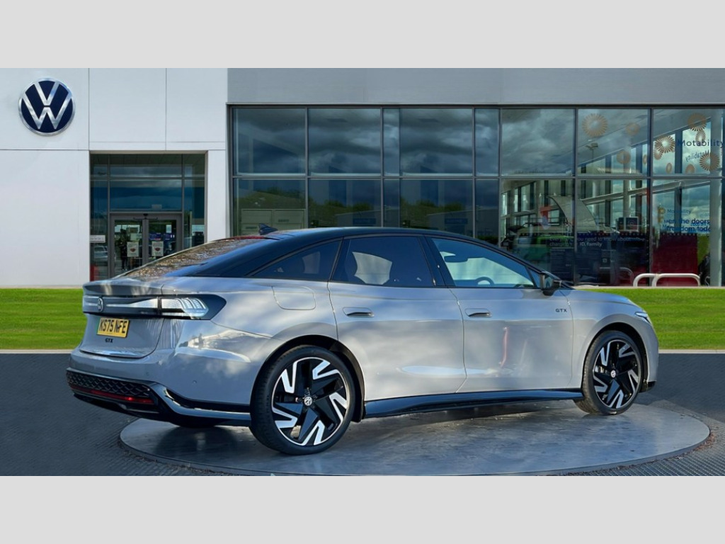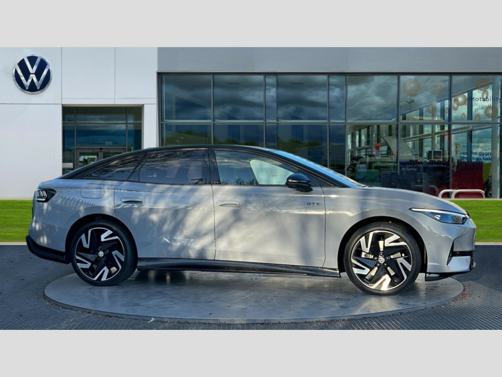 Volkswagen Id.7 250kW 4MOTION GTX Plus 86kWh 5dr Auto Adaptive cruise control, Advanced driver attention and drowsiness monitor, Area view including rear view camera, Augmented reality head up display, Car2X intelligent vehicle networking, Digital instrument cluster, Discover pro navigation system with 15" centre display, media and internet package, Dynamic road sign display, Electric tailgate, Emergency call service, Engine start button, Lane change system, Side assist, Rear traffic alert and Exit warning system, Memory feature for park assist, Oncoming vehicle braking when turning including swerve support, Park assist plus with park distance control, Parking route memory, Power assisted speed sensitive steering, Preparation for Volkswagen connect, Semi-automatic vehicle control in an emergency, Speedo and rev counter, electronic odometer, trip, service interval display and exterior temperature gauge, Traffic jam assist, Travel assist with lane assist and emergency assist, Voice activation for navigation and phone, Wireless App-Connect, Wireless Smartphone charger, Charging cable mode 3, Type 2: 7.2kW 1-Phase/11kW 3-Phase (32A), Standard electronic engine sound actuator, DAB+ radio, Gaming platform via car app, Harman Kardon sound system with 12 speakers, digital 16-channel amplifier, subwoofer and 700W total power output, AC Charging socket, Advanced dynamic light assist for LED matrix headlights, Auto dimming rear view mirror, Body colour sports bumpers, Charging flap with weather protection, Dynamic headlight range control with dynamic cornering light, Exterior mirrors convex on the left and aspherical on the right, Front and rear electric windows, Gloss black door mirrors with integrated indicators, Heated door mirrors, High beam assist with automatic sensing for switching between dipped and main beam, Illuminated emblem in front and rear and lightline between headlamp with illuminated door handle recesses, IQ.LIGHT - LED matrix headlights with automatic headlight control, LED 3rd brake light, LED daytime running lights, LED indicator lights, LED rear combination lights, Poor weather light and cornering light, Privacy glass for rear side windows and rear window, Rain sensor, Rear side wing doors, Rear wiper, Remote electrically foldable door mirrors, puddle lights and reverse activated tilting door mirror, Roof aerial, Sound insulating laminated safety glass from B-pillar backwards, Welcome lights, 12 way power seat adjustment for both front seats, with memory feature and seat depth adjustment, 2 USB-C ports in the front, 2 USB-C charging sockets on the center console in the rear, 3 zone air care climatronic with rear air conditioning control panel, 30 colours interior ambient lighting with ID light, Allergen filter and enhanced air filter, Art Velours Prefarated eco microfleece cloth upholstery with seat bolsters inserts in Alex for front and outer rear seats, Black carpet mats, Centre console with illuminated storage compartment with sliding cover and two drinks holders, Door and side trim panel in foam film, insert in leatherette, Electric auxiliary air heater, Energy efficient heat pump with refrigerant, ErgoActive comfort seats in front, First aid kit, warning triangle and safety vest, Front centre armrest, Heated front and outer rear seats, Isofix child seat preparation, Leatherette-wrapped multifunction heated steering wheel with touch control, Luggage compartment floor, folding with stowage area, Luggage net and storage net on sides, Matt black interior door handles, Play and pause stainless steel pedals, Power adjustable lumbar support in front, Rear centre headrest, Rear seat bench unsplit, backrest split folding with center armrest including 2 cup holders, Separately controlled seat heater for front and rear seats, Single front passenger seat, Sun visors with illuminated vanity mirrors, System optimised front head restraints, Variable boot floor, height adjustable and removable, Ventilated massage seats for front, Exterior plus pack - ID.7 GTX, 3 point seat belts in front with seat belt pretensioners, 3x3 point rear seatbelts, ABS, Autonomous emergency braking front assist with pedestrian and cyclist monitoring, Brake energy recuperation, Centre airbag, Driver and front passenger airbag with front passenger airbag deactivation, Electric parking brake, ESP, Extended safety system with proactive passenger protection system, Front and rear curtain airbags, Front and rear side airbags, Front disc brakes, Rear door child safety locks, Rear drum brakes, Two tone horn, Tyre pressure warning, Warning signal and warning light for front and rear seat belts not fastened, Anti theft alarm, Anti theft wheel bolts, Immobiliser, Keyless entry and start with safelock, Comfort dashboard in soul black, Tool kit for tyre mobility