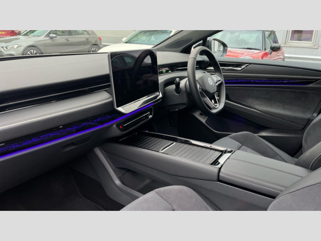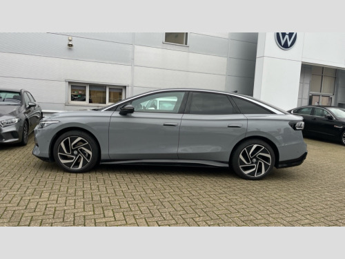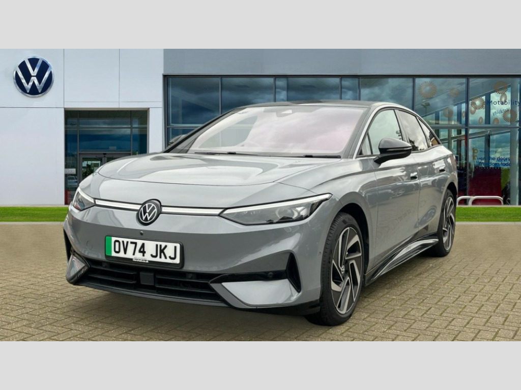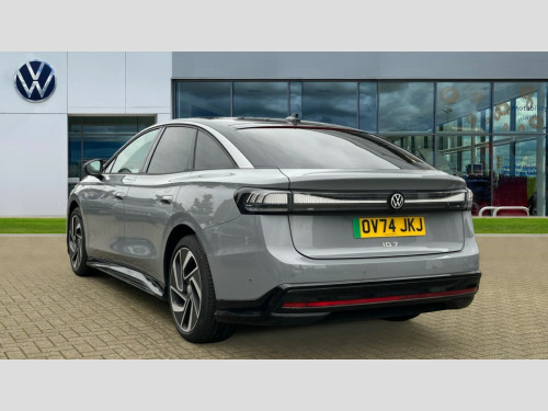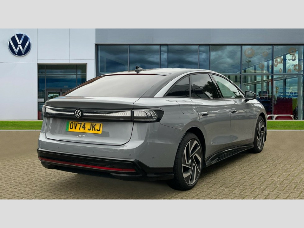 Volkswagen Id.7 210kW Match Pro 77kWh 5dr Auto 360 degree arial view parking camera, Adaptive cruise control, Advanced driver attention and drowsiness monitor, Augmented reality head up display, Car2X intelligent vehicle networking, Digital instrument cluster, Dynamic road sign display, Emergency call service, Engine start button, Lane change system, Side assist, Rear traffic alert and Exit warning system, Oncoming vehicle braking when turning including swerve support, Park assist with park distance control, Parking route memory, Preparation for Volkswagen connect, Ready 2 discover pro navigation system with 15" infotainment display, Semi-automatic vehicle control in an emergency, Speedo and rev counter, electronic odometer, trip, service interval display and exterior temperature gauge, Traffic jam assist, Travel assist with lane assist and emergency assist, Voice activation for navigation and phone, Wireless App-Connect, Wireless Smartphone charger, Charging cable mode 3, Type 2: 7.2kW 1-Phase/11kW 3-Phase (32A), Standard electronic engine sound actuator, 8+1 Speakers, DAB+ radio, AC Charging socket, Auto dimming rear view mirror, Auto headlights, Black solid roof, Body coloured bumpers, Charging flap with weather protection, Exterior mirrors convex on the left and aspherical on the right, Front and rear electric windows, Gloss black door mirrors with integrated indicators, Heat insulating darkened glass in side and rear windows, Heated door mirrors, Heated windscreen washer jets, High beam assist with automatic sensing for switching between dipped and main beam, LED 3rd brake light, LED daytime running lights, LED indicator lights, Rain sensor, Rear side wing doors, Rear wiper, Remote electrically foldable door mirrors, puddle lights and reverse activated tilting door mirror, Roof aerial, Welcome lights, Windscreen - Laminated, heated, infrared-reflecting and sound insulating, 12 way power seat adjustment for both front seats, with memory feature and seat depth adjustment, 2 USB-C ports in the front, 2 USB-C charging sockets on the center console in the rear, 3 zone air care climatronic with rear air conditioning control panel, 30 colours options interior ambient lighting, Allergen filter and enhanced air filter, Art Velours eco microfleece cloth upholstery with seat bolsters in Artex, Black carpet mats, Door and side trim panel in foam film, insert in leatherette, Electric auxiliary air heater, ErgoActive comfort seats in front, First aid kit, warning triangle and safety vest, Front centre armrest, Front seats with massage programs, Heated front seats, Isofix child seat preparation, Leatherette-wrapped multifunction heated steering wheel with touch control, Luggage compartment floor, folding with stowage area, Luggage net and storage net on sides, Play and Pause brake and accelerator pedals, Power adjustable lumbar support in front, Rear centre headrest, Rear seat bench unsplit, backrest split folding with center armrest including 2 cup holders, Single front passenger seat, Sun visors with illuminated vanity mirrors, System optimised front head restraints, Variable boot floor, height adjustable and removable, 3 point seat belts in front with seat belt pretensioners, 3x3 point rear seatbelts, ABS, Autonomous emergency braking front assist with pedestrian and cyclist monitoring, Brake energy recuperation, Driver and front passenger airbag with front passenger airbag deactivation, Electric parking brake, ESP, Extended safety system with proactive passenger protection system, Front curtain and side airbags with center airbag, Front disc brakes, Rear door child safety locks, Rear drum brakes, Tyre pressure warning, Warning signal and warning light for front and rear seat belts not fastened, Anti theft alarm, Anti theft wheel bolts, Immobiliser, Keyless entry and start with safelock, Comfort dashboard in soul black, Tool kit for tyre mobility