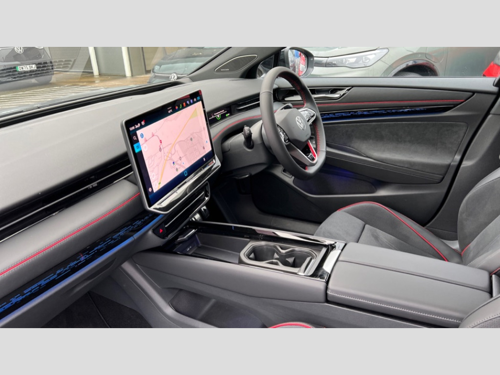 Volkswagen Id.7 250kW 4MOTION GTX Plus 86kWh 5dr Auto Adaptive cruise control, Advanced driver attention and drowsiness monitor, Area view including rear view camera, Augmented reality head up display, Car2X intelligent vehicle networking, Digital instrument cluster, Discover pro navigation system with 15" centre display, media and internet package, Dynamic road sign display, Emergency call service, Engine start button, Lane change system, Side assist, Rear traffic alert and Exit warning system, Memory feature for park assist, Oncoming vehicle braking when turning including swerve support, Park assist plus with park distance control, Power assisted speed sensitive steering, Preparation for Volkswagen connect, Semi-automatic vehicle control in an emergency, Speedo and rev counter, electronic odometer, trip, service interval display and exterior temperature gauge, Traffic jam assist, Travel assist with lane assist and emergency assist, Voice activation for navigation and phone, Wireless App-Connect, Wireless Smartphone charger, Charging cable mode 3, Type 2: 7.2kW 1-Phase/11kW 3-Phase (32A), DC battery charging capability (Type 2-CCS), Standard electronic engine sound actuator, DAB+ radio, Gaming platform via car app, Harman Kardon sound system with 12 speakers, digital 16-channel amplifier, subwoofer and 700W total power output, AC Charging socket, Advanced dynamic light assist for LED matrix headlights, Auto dimming rear view mirror, Charging flap with weather protection, Dynamic headlight range control with dynamic cornering light, Exterior mirrors convex on the left and aspherical on the right, Front and rear electric windows, Gloss black door mirrors with integrated indicators, Heated door mirrors, Heated windscreen, High beam assist with automatic sensing for switching between dipped and main beam, Illuminated emblem in front and rear and lightline between headlamp with illuminated door handle recesses, IQ.LIGHT - LED matrix headlights with automatic headlight control, LED 3rd brake light, LED daytime running lights, LED indicator lights, LED rear combination lights, Poor weather light and cornering light, Privacy glass for rear side windows and rear window, Rain sensor, Rear side wing doors, Rear wiper, Remote electrically foldable door mirrors, puddle lights and reverse activated tilting door mirror, Roof aerial, Sound insulating laminated safety glass from B-pillar backwards, Sports style body coloured bumpers, Welcome lights, 12 way power seat adjustment for both front seats, with memory feature and seat depth adjustment, 2 USB-C ports in the front, 2 USB-C charging sockets on the center console in the rear, 3 zone air care climatronic with rear air conditioning control panel, 30 colours interior ambient lighting with ID light, Allergen filter and enhanced air filter, Art Velours Prefarated eco microfleece cloth upholstery with seat bolsters inserts in Alex for front and outer rear seats, Black carpet mats, Centre console with illuminated storage compartment with sliding cover and two drinks holders, Door and side trim panel in foam film, insert in leatherette, Electric auxiliary air heater, Energy efficient heat pump with refrigerant, ErgoActive comfort seats in front, First aid kit, warning triangle and safety vest, Front centre armrest, Isofix child seat preparation, Leatherette-wrapped multifunction heated steering wheel with touch control, Luggage compartment floor, folding with stowage area, Luggage net and storage net on sides, Matt black interior door handles, Play and pause stainless steel pedals, Power adjustable lumbar support in front, Rear centre headrest, Rear seat bench unsplit, backrest split folding with center armrest including 2 cup holders, Separately controlled seat heater for front and rear seats, Single front passenger seat, Soul black roof lining, Sun visors with illuminated vanity mirrors, System optimised front head restraints, Variable boot floor, height adjustable and removable, Ventilated massage seats for front, Exterior plus pack - ID.7 GTX, 3 point seat belts in front with seat belt pretensioners, 3x3 point rear seatbelts, ABS, Autonomous emergency braking front assist with pedestrian and cyclist monitoring, Brake energy recuperation, Centre airbag, Driver and front passenger airbag with front passenger airbag deactivation, Electric parking brake, ESP, Extended safety system with proactive passenger protection system, Front and rear curtain airbags, Front and rear side airbags, Front disc brakes, Rear door child safety locks, Rear drum brakes, Two tone horn, Tyre pressure warning, Warning signal and warning light for front and rear seat belts not fastened, Anti theft alarm, Anti theft wheel bolts, Immobiliser, Keyless entry and start with safelock, Comfort dashboard in soul black, Tool kit for tyre mobility