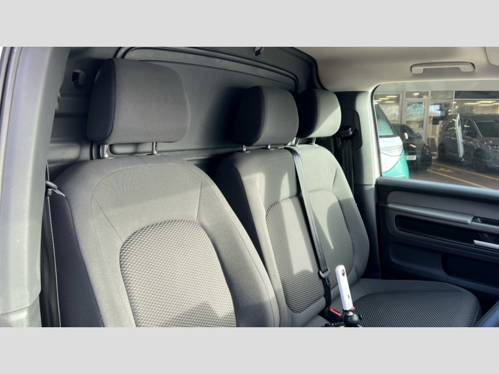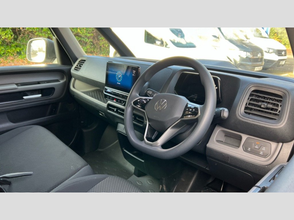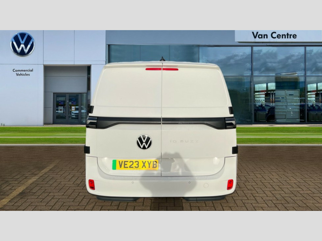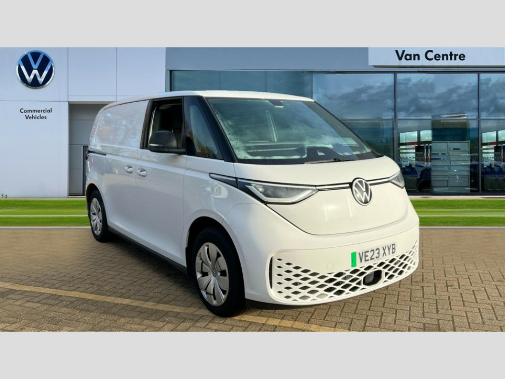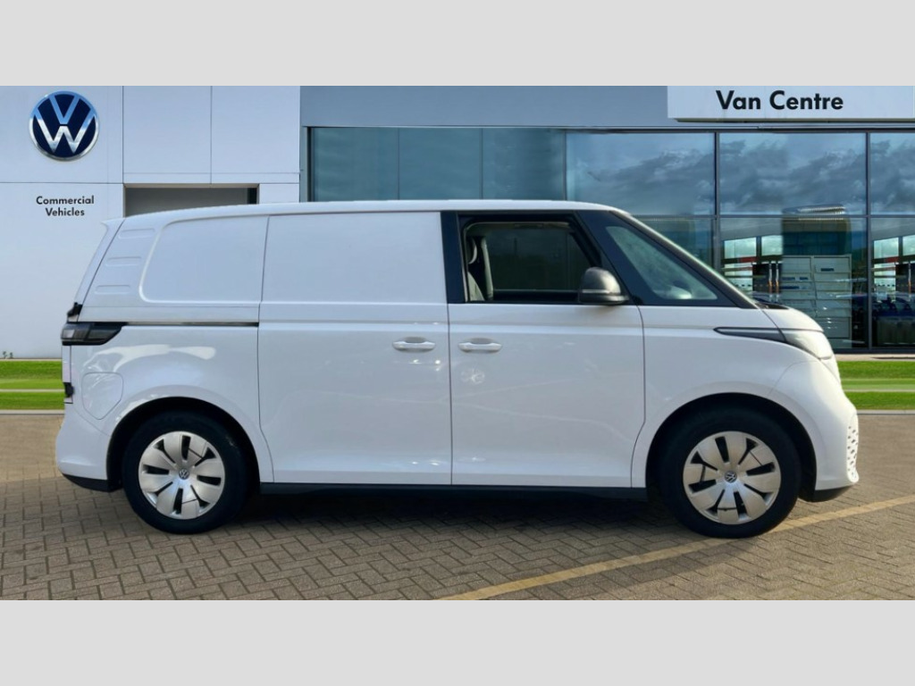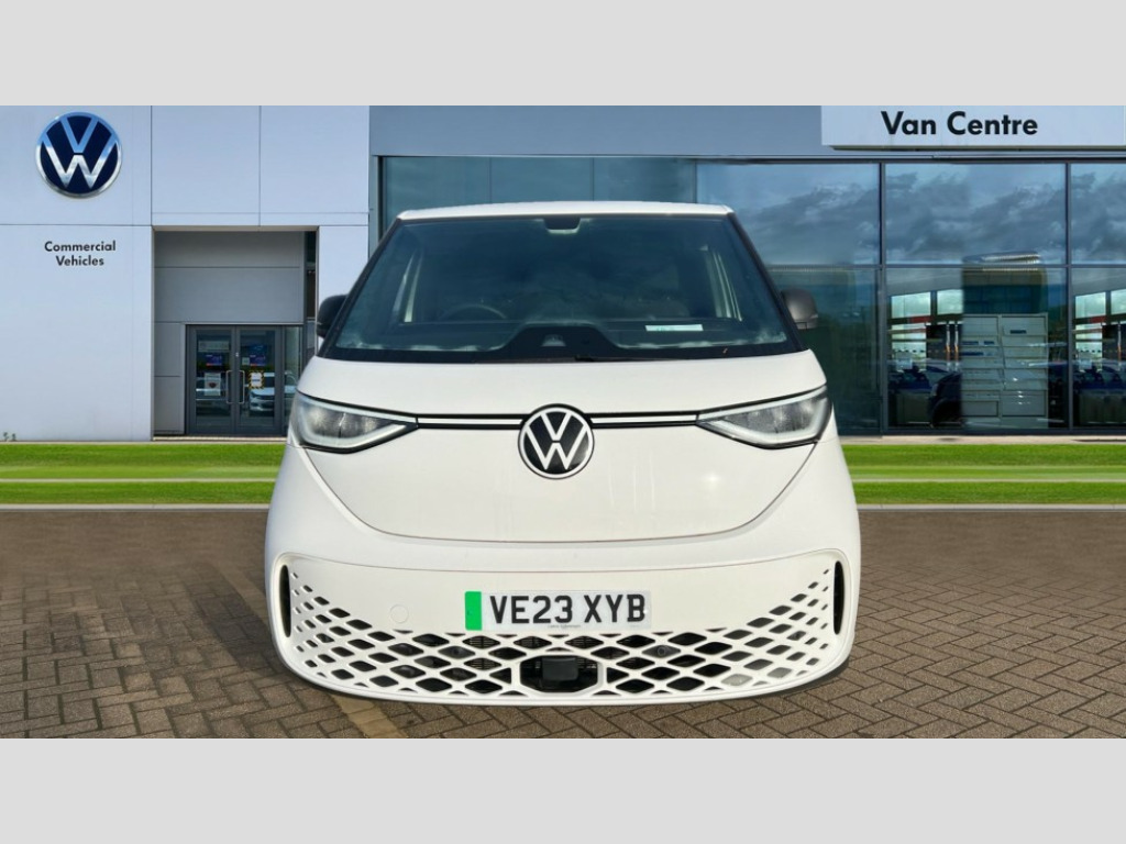 Volkswagen Id. Buzz 150kW Commerce 77kWh Auto Autonomous emergency braking front assist with monitoring and braking for vehicles, pedestrians, cyclists, Car2X technology, Driver alert system, eCall emergency system, Front and rear park distance control, PAS, 2 speakers (full-range), 2 USB-C ports in dashboard and 2 USB-C charging sockets in front, App-Connect incl. App-Connect Wireless for Apple CarPlay and Android Auto, Digital radio reception (DAB+), We Connect preparation, Body coloured door handles, Heat reflecting glass, Unique ID Buzz badging, Carpet in Black, Door trim panel and armrest in plastic, Heated front seats, Illuminated mirrors in sun vinsors with airbag label on sun visor and B-pillar, LED load compartment lighting, Lockable glovebox, Robust floor covering in cab, Single driver seat with manual height adjustment, Steering wheel, dashboard and central controls in black, Wooden floor covering in load compartment, Driver and front passenger airbags, First aid kit with warning triangle and safety vest, Front passenger airbag deactivation, Seat belt reminder with electric contact in buckle, Tyre pressure monitoring system (TPMS), Anti-theft alarm system, interior monitoring in cab, back-up horn and towing protection, 11 kW AC charging power, Charging cable mode 3 type 2, 32 A (6 metres length), Electronic engine sound, Black decorative trim, Soul - soul dashboard