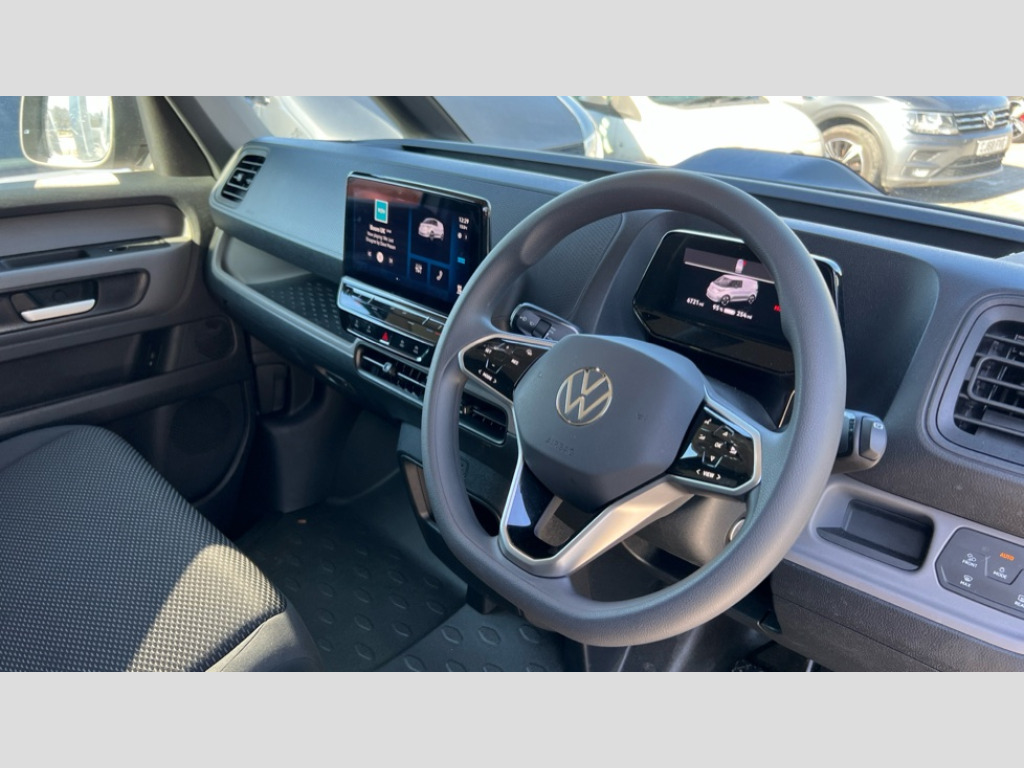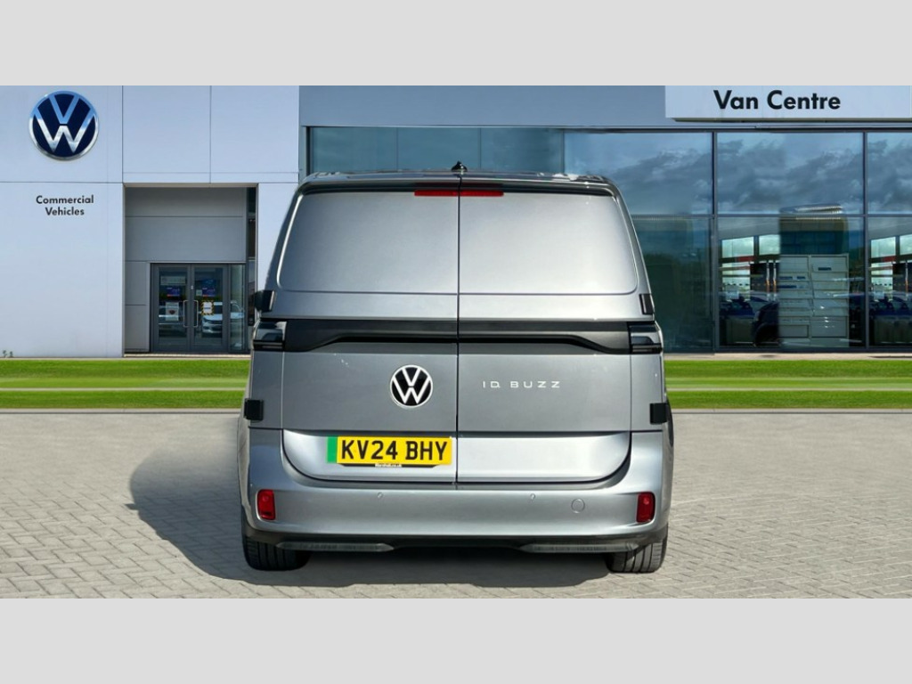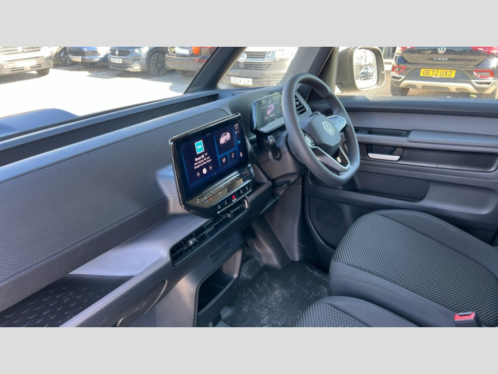 Volkswagen Id. Buzz 150kW Commerce 77kWh Auto Autonomous emergency braking front assist with monitoring and braking for vehicles, pedestrians, cyclists, Car2X technology, Driver alert system, eCall emergency system, Intelligent Park Assist incl. Park Assist with memory function and Park Assistance Plus with park distance control, PAS, 2 speakers (full-range), 2 USB-C ports in dashboard and 2 USB-C charging sockets in front, App-Connect incl. App-Connect Wireless for Apple CarPlay and Android Auto, Digital radio reception (DAB+), Discover Pro navigation with 10" screen, We Connect preparation, Body coloured bumpers, Body coloured door handles, Folding door mirrors with front passenger lowering function, Heat reflecting glass, Heated windscreen, Unique ID Buzz badging, Carpet in Black, Door trim panel and armrest in plastic, Heated front seats, Illuminated mirrors in sun vinsors with airbag label on sun visor and B-pillar, LED load compartment lighting, Lockable glovebox, Robust floor covering in cab, Single driver seat with manual height adjustment, Steering wheel, dashboard and central controls in black, Wooden floor covering in load compartment, Driver and front passenger airbags, First aid kit with warning triangle and safety vest, Front passenger airbag deactivation, Seat belt reminder with electric contact in buckle, Tyre pressure monitoring system (TPMS), Anti-theft alarm system, interior monitoring in cab, back-up horn and towing protection, Keyless start incl central locking with two remote control folding keys incl interior control safelock and Illuminated door handle recesses, 11 kW AC charging power, Charging cable mode 3 type 2, 32 A (6 metres length), Electronic engine sound, Black decorative trim, Soul - soul dashboard