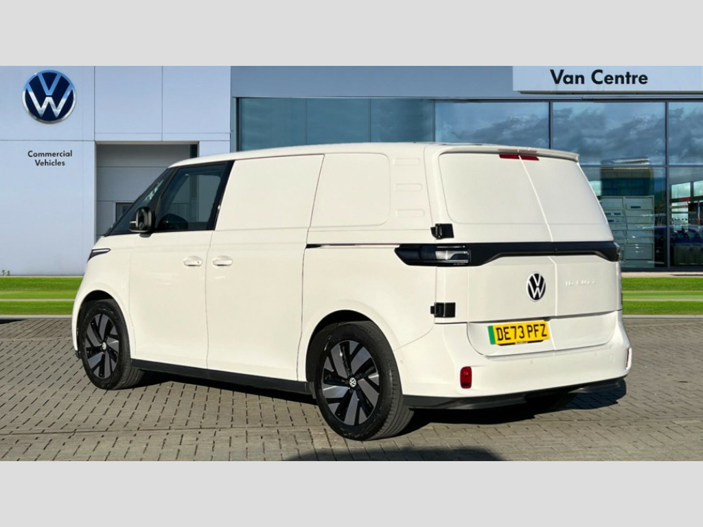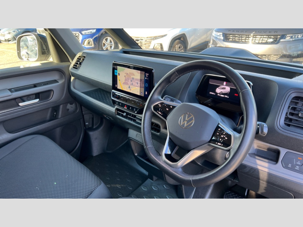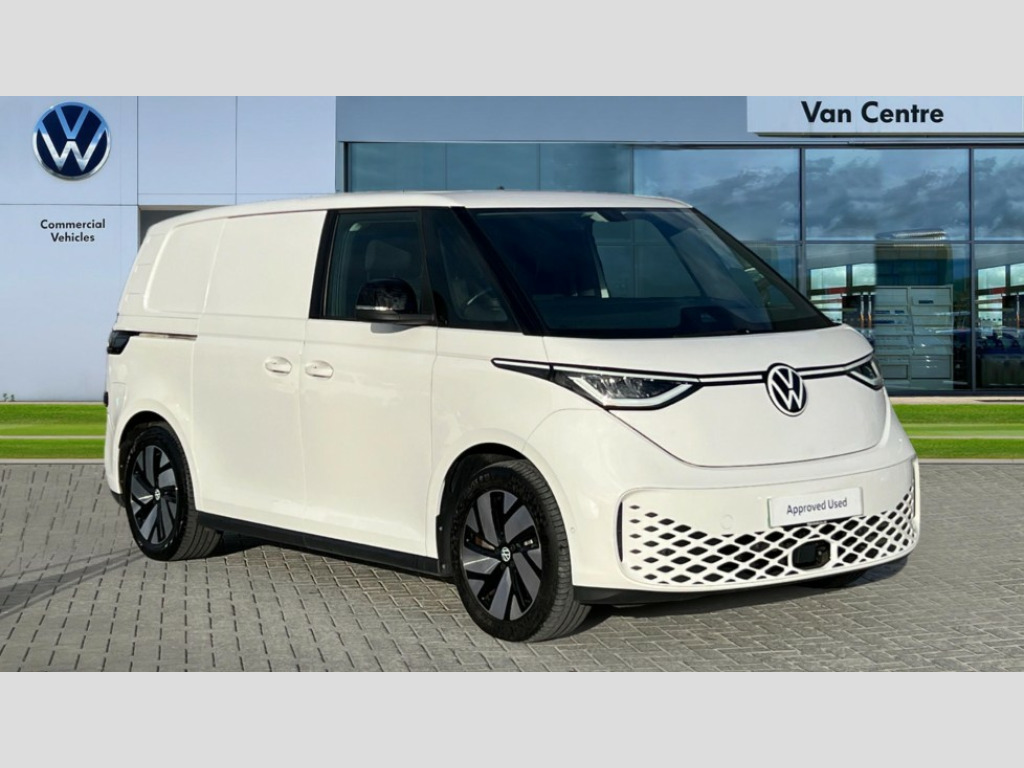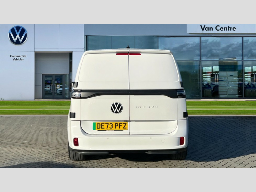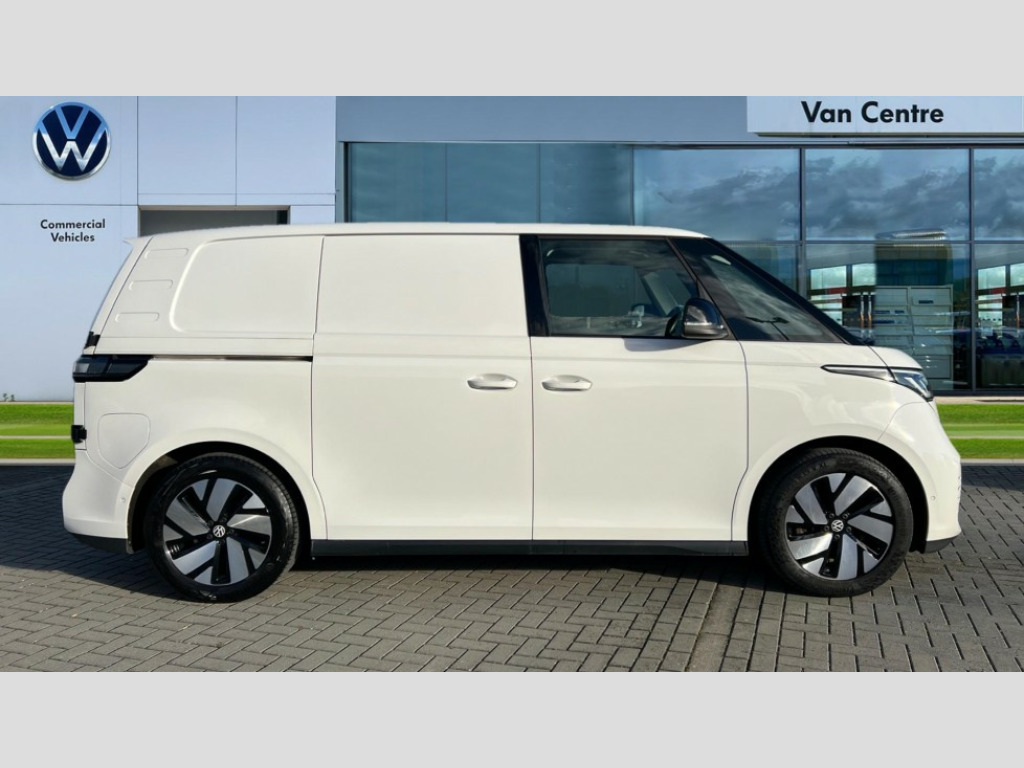 Volkswagen Id. Buzz 150kW Commerce Plus 77kWh Auto Autonomous emergency braking front assist with monitoring and braking for vehicles, pedestrians, cyclists, Car2X technology, Driver alert system, eCall emergency system, Intelligent Park Assist incl. Park Assist with memory function and Park Assistance Plus with park distance control, PAS, 2 speakers (full-range), 2 USB-C ports in dashboard and 2 USB-C charging sockets in front, App-Connect incl. App-Connect Wireless for Apple CarPlay and Android Auto, Digital radio reception (DAB+), Discover Pro navigation with 10" screen, We Connect preparation, Body coloured bumpers, Body coloured door handles, Folding door mirrors with front passenger lowering function, Heat reflecting glass, Heated windscreen, Unique ID Buzz badging, Carpet in Black, Door trim panel and armrest in plastic, Heated front seats, Illuminated mirrors in sun vinsors with airbag label on sun visor and B-pillar, LED load compartment lighting, Lockable glovebox, Robust floor covering in cab, Single driver seat with manual height adjustment, Steering wheel, dashboard and central controls in black, Wooden floor covering in load compartment, Driver assistance package plus - ID. Buzz Cargo, Driver and front passenger airbags, First aid kit with warning triangle and safety vest, Front passenger airbag deactivation, Seat belt reminder with electric contact in buckle, Tyre pressure monitoring system (TPMS), Anti-theft alarm system, interior monitoring in cab, back-up horn and towing protection, Keyless start incl central locking with two remote control folding keys incl interior control safelock and Illuminated door handle recesses, 11 kW AC charging power, Charging cable mode 3 type 2, 32 A (6 metres length), Electronic engine sound, Black decorative trim, Soul - soul dashboard