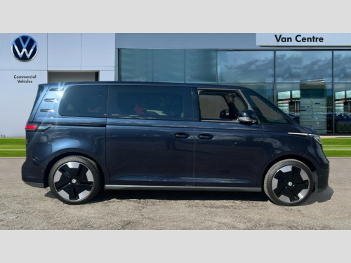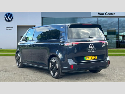 Volkswagen Id. Buzz 210kW Style Pro 86kWh 5dr LWB Auto [7 Seat] App-Connect incl. App-Connect Wireless for Apple CarPlay and Android Auto, Car2X technology, Digital cockpit, Driver alert system, Dynamic road sign display, E-call, Electromechanical power steering, Electronic engine sound, Front and rear parking sensors, Head up Display, Oncoming vehicle braking when turning including swerve support, Speed limiter with intelligent speed control, Tailgate latching without unlatching function front inside, Voice control system, We connect preparation, Wireless charging, 11 kW AC onboard charger, Charging cable mode 3, type 2 32 A, DAB Digital radio receiver, Harman Kardon premium sound system, Advanced high beam control dynamic light assist for LED matrix headlamps, Auto dimming rear view mirror, Body coloured bumpers, Body coloured door handles, D pillar styling badges, Dark tinted rear windows, Daytime running lights, Dynamic headlight range control with dynamic cornering light, Gloss black door mirrors, Heated rear window, Heated washer nozzles, Heated windscreen, Illuminated molding between headlamps, Integrated fog lights with cornering function, IQ.LIGHT - LED matrix headlamps with automatic headlight control, poor weather light and entry lighting, LED 3rd brake light, LED rear combination lights with dynamic turn signal, LED rear lights with dynamic turn signal, Power adjustable, heated and folding mirrors with front passenger lowering function, Rain sensor, Rear window wiper and washer system with intermittent control, Surround lighting with logo projector, Windshield wiper intermittent control with rain sensor, 1 USB-C charging socket in front passenger area, 2 individual seats in 2nd row, 2 seat bench in 3rd row, 2 USB-C ports in dashboard, 2 waste bins for door pockets, 2-zone Climatronic with enhanced air filter and stationary air conditioning, 3 rear seat head restraints, 4 USB-C charging sockets in rear, 60/40 split folding rear seat bench, Airbag label on sun visor and B-pillar, Buzz box - removable centre console with storage compartments and mounting points in vehicle floor between front seats, Driver and passenger footwell lighting, Drivers and front passengers seat height adjustment, Front carpet mats, Front head restraints, LED luggage compartment lighting, Lockable glovebox with illumination, Luggage compartment cover, Luggage net, Multi flex board, Operating voltage 12V, Pedals in stainless steel with play and pause symbols, Sun visors with illuminated vanity mirrors, Assistance Package Plus - ID.Buzz, Design package plus - ID.Buzz, Infotainment package plus with Navigation system - ID.Buzz, Open and close pack Plus - ID.Buzz, 3-point rear outer seat belts with ECE label, 3-point seat belts with seat belt and lap belt pretensioner in front and height adjustment, ABS, Autonomous emergency braking front assist with pedestrian and cyclist monitoring, Driver and front passenger airbag with front passenger airbag deactivation, Electric child locks, Electronic parking brake, First aid kit with warning triangle and safety vest, Front and rear seatbelt audible and visual warning indicator, Front curtain and side airbags with center airbag, Proactive passenger protection system, Tyre pressure monitoring system, Airstop tyres, Tool kit