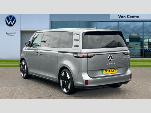 Volkswagen Id. Buzz 210kW Style Pro 86kWh 5dr LWB Auto [7 Seat] App-Connect incl. App-Connect Wireless for Apple CarPlay and Android Auto, Car2X technology, Digital cockpit, Driver alert system, Dynamic road sign display, E-call, Electromechanical power steering, Electronic engine sound, Front and rear parking sensors, Head up Display, Oncoming vehicle braking when turning including swerve support, Speed limiter with intelligent speed control, Tailgate latching without unlatching function front inside, Voice control system, We connect preparation, Wireless charging, 11 kW AC onboard charger, Charging cable mode 3, type 2 32 A, DAB Digital radio receiver, Harman Kardon premium sound system, Advanced high beam control dynamic light assist for LED matrix headlamps, Auto dimming rear view mirror, Body coloured bumpers, Body coloured door handles, D pillar styling badges, Dark tinted rear windows, Daytime running lights, Dynamic headlight range control with dynamic cornering light, Gloss black door mirrors, Heated rear window, Heated washer nozzles, Heated windscreen, Illuminated molding between headlamps, Integrated fog lights with cornering function, IQ.LIGHT - LED matrix headlamps with automatic headlight control, poor weather light and entry lighting, LED 3rd brake light, LED rear combination lights with dynamic turn signal, LED rear lights with dynamic turn signal, Power adjustable, heated and folding mirrors with front passenger lowering function, Rain sensor, Rear window wiper and washer system with intermittent control, Surround lighting with logo projector, Windshield wiper intermittent control with rain sensor, 1 USB-C charging socket in front passenger area, 2 seats in 3rd row, 2 USB-C ports in dashboard, 2 waste bins for door pockets, 2-zone Climatronic with enhanced air filter and stationary air conditioning, 3 rear seat head restraints, 3 seat bench in 2nd row, 4 USB-C charging sockets in rear, 60/40 split folding rear seat bench, Airbag label on sun visor and B-pillar, Buzz box - removable centre console with storage compartments and mounting points in vehicle floor between front seats, Driver and passenger footwell lighting, Drivers and front passengers seat height adjustment, Front carpet mats, Front head restraints, Heated front seats, LED luggage compartment lighting, Lockable glovebox with illumination, Luggage compartment cover, Luggage net, Multi flex board, Operating voltage 12V, Pedals in stainless steel with play and pause symbols, Steering wheel, dashboard and central controls in black, Sun visors with illuminated vanity mirrors, Assistance Package Plus - ID.Buzz, Infotainment package plus with Navigation system - ID.Buzz, Open and close pack Plus - ID.Buzz, 3-point rear outer seat belts with ECE label, 3-point seat belts with seat belt and lap belt pretensioner in front and height adjustment, ABS, Autonomous emergency braking front assist with pedestrian and cyclist monitoring, Driver and front passenger airbag with front passenger airbag deactivation, Electric child locks, Electronic parking brake, First aid kit with warning triangle and safety vest, Front and rear seatbelt audible and visual warning indicator, Front curtain and side airbags with center airbag, Proactive passenger protection system, Tyre pressure monitoring system, Airstop tyres, Tool kit