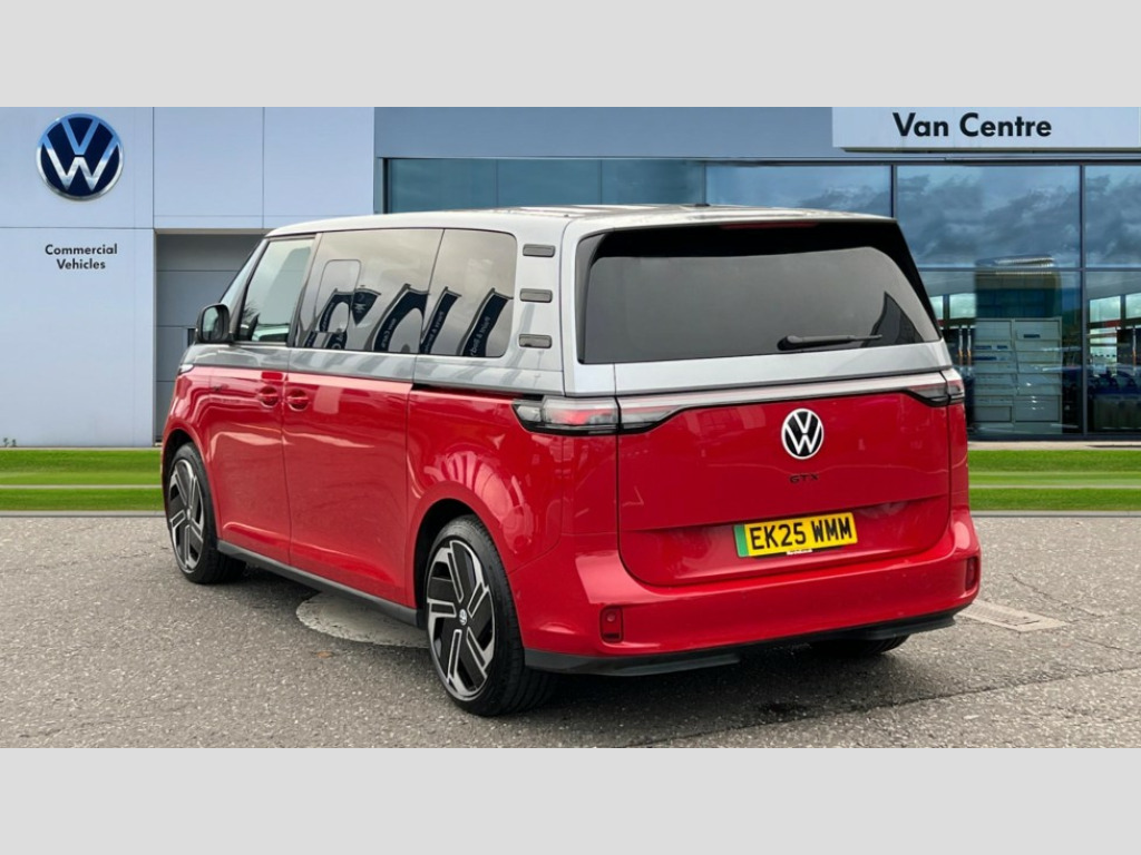 Volkswagen Id. Buzz 250kW GTX Pro 86kWh 5dr 4MOTION LWB Auto [6 Seat] App-Connect incl. App-Connect Wireless for Apple CarPlay and Android Auto, Car2X technology, Digital cockpit, Driver alert system, Dynamic road sign display, E-call, Electromechanical power steering, Electronic engine sound, Front and rear parking sensors, Head up Display, Oncoming vehicle braking when turning including swerve support, Speed limiter with intelligent speed control, Tailgate latching without unlatching function front inside, Voice control system, We connect preparation, Wireless charging, 11 kW AC onboard charger, Charging cable mode 3, type 2 32 A, DAB Digital radio receiver, Harman Kardon premium sound system, Advanced high beam control dynamic light assist for LED matrix headlamps, Auto dimming rear view mirror, Body coloured bumpers, Body coloured door handles, D pillar styling badges, Dark tinted rear windows, Daytime running lights, Dynamic headlight range control with dynamic cornering light, Electrically dimable panoramic glass roof, Exclusive GTX grille, Gloss black door mirrors, Heated rear window, Heated washer nozzles, Heated windscreen, Illuminated molding between headlamps, Integrated fog lights with cornering function, IQ.LIGHT - LED matrix headlamps with automatic headlight control, poor weather light and entry lighting, LED 3rd brake light, LED rear combination lights with dynamic turn signal, LED rear lights with dynamic turn signal, Power adjustable, heated and folding mirrors with front passenger lowering function, Rain sensor, Rear window wiper and washer system with intermittent control, Surround lighting with logo projector, Windshield wiper intermittent control with rain sensor, 1 USB-C charging socket in front passenger area, 2 individual seats in 2nd row, 2 seat bench in 3rd row, 2 USB-C ports in dashboard, 2 waste bins for door pockets, 2-zone Climatronic with enhanced air filter and stationary air conditioning, 3 rear seat head restraints, 30 colour ambient lighting, 4 USB-C charging sockets in rear, 60/40 split folding rear seat bench, Airbag label on sun visor and B-pillar, Black roof liner, Buzz box - removable centre console with storage compartments and mounting points in vehicle floor between front seats, Carpet floor covering, Comfort seat on the left and right in 1st row of seats, Driver and passenger footwell lighting, Drivers and front passengers seat height adjustment, Electrically adjustable front seats with memory feature and drivers seat with comfort entry, Front carpet mats, Front head restraints, Heated front seats, LED luggage compartment lighting, Lockable glovebox with illumination, Luggage compartment cover, Luggage net, Multi flex board, Operating voltage 12V, Pedals in stainless steel with play and pause symbols, Pneumatically adjustable lumbar support on both sides, Steering wheel, dashboard and central controls in black, Sun visors with illuminated vanity mirrors, Velour upholstery, Assistance Package Plus - ID.Buzz, Design package plus - ID.Buzz, Infotainment package plus with Navigation system - ID.Buzz, Open and close pack Plus - ID.Buzz, 3-point rear outer seat belts with ECE label, 3-point seat belts with seat belt and lap belt pretensioner in front and height adjustment, ABS, Autonomous emergency braking front assist with pedestrian and cyclist monitoring, Driver and front passenger airbag with front passenger airbag deactivation, Electric child locks, Electronic parking brake, First aid kit with warning triangle and safety vest, Front and rear seatbelt audible and visual warning indicator, Front curtain and side airbags with center airbag, Proactive passenger protection system, Tyre pressure monitoring system, Armrests on both sides of front seats in leatherette, Door trim panel in plastic with insert, Soul - Mistral dashboard, Tool kit and Tyre mobility set with 12 volt compressor and tyre sealant