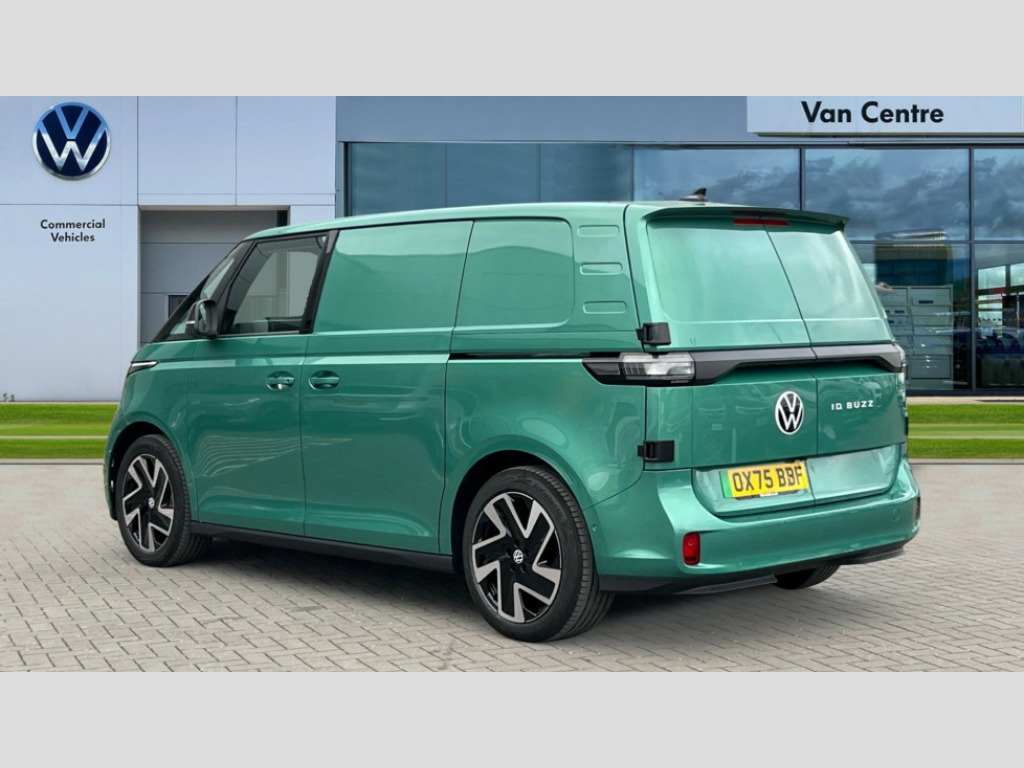 Volkswagen Id. Buzz 210kW Commerce Plus 79kWh Auto Autonomous emergency braking front assist with monitoring and braking for vehicles, pedestrians, cyclists, Car2X technology, Driver alert system, eCall emergency system, Intelligent Park Assist incl. Park Assist with memory function and Park Assistance Plus with park distance control, PAS, 2 speakers (full-range), 2 USB-C ports in dashboard and 2 USB-C charging sockets in front, App-Connect incl. App-Connect Wireless for Apple CarPlay and Android Auto, Digital radio reception (DAB+), Discover Pro navigation with 12.9" screen, We Connect preparation, Body coloured bumpers, Body coloured door handles, Folding door mirrors with front passenger lowering function, Heat reflecting glass, Heated windscreen, Sliding door on the left and right, Unique ID Buzz badging, Carpet in Black, Door trim panel and armrest in plastic, Heated front seats, Illuminated mirrors in sun vinsors with airbag label on sun visor and B-pillar, LED load compartment lighting, Lockable glovebox, Robust floor covering in cab, Single driver seat with manual height adjustment, Steering wheel, dashboard and central controls in black, Wooden floor covering in load compartment, Driver assistance package plus - ID. Buzz Cargo, Driver and front passenger airbags, First aid kit with warning triangle and safety vest, Front passenger airbag deactivation, Seat belt reminder with electric contact in buckle, Tyre pressure monitoring system (TPMS), Anti-theft alarm system, interior monitoring in cab, back-up horn and towing protection, Keyless start incl central locking with two remote control folding keys incl interior control safelock, 11 kW AC charging power, Charging cable mode 3 type 2, 32 A (6 metres length), Electronic engine sound, Black decorative trim, Soul - soul dashboard, Airstop tyres