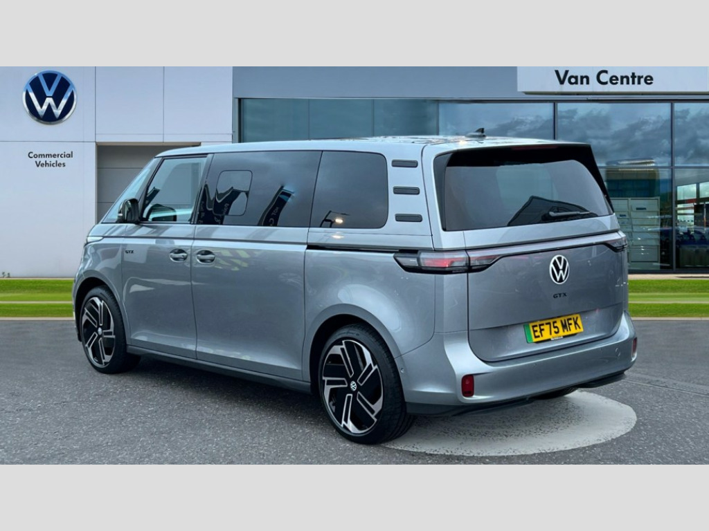 Volkswagen Id. Buzz 250kW GTX Pro 86kWh 5dr 4MOTION LWB Auto [7 Seat] App-Connect incl. App-Connect Wireless for Apple CarPlay and Android Auto, Car2X technology, Digital cockpit, Driver alert system, Dynamic road sign display, E-call, Electromechanical power steering, Electronic engine sound, Front and rear parking sensors, Head up Display, Oncoming vehicle braking when turning including swerve support, Speed limiter with intelligent speed control, Tailgate latching without unlatching function front inside, Voice control system, We connect preparation, Wireless charging, 11 kW AC onboard charger, Charging cable mode 3, type 2 32 A, DAB Digital radio receiver, Harman Kardon premium sound system, Advanced high beam control dynamic light assist for LED matrix headlamps, Auto dimming rear view mirror, Body coloured bumpers, Body coloured door handles, D pillar styling badges, Daytime running lights, Dynamic headlight range control with dynamic cornering light, Electrically dimable panoramic glass roof, Exclusive GTX grille, Gloss black door mirrors, Heated rear window, Heated washer nozzles, Heated windscreen, Illuminated molding between headlamps, Integrated fog lights with cornering function, IQ.LIGHT - LED matrix headlamps with automatic headlight control, poor weather light and entry lighting, LED 3rd brake light, LED rear combination lights with dynamic turn signal, LED rear lights with dynamic turn signal, Power adjustable, heated and folding mirrors with front passenger lowering function, Rain sensor, Rear window wiper and washer system with intermittent control, Surround lighting with logo projector, Windshield wiper intermittent control with rain sensor, 1 USB-C charging socket in front passenger area, 2 seats in 3rd row, 2 USB-C ports in dashboard, 2 waste bins for door pockets, 2-zone Climatronic with enhanced air filter and stationary air conditioning, 3 rear seat head restraints, 3 seat bench in 2nd row, 30 colour ambient lighting, 4 USB-C charging sockets in rear, 60/40 split folding rear seat bench, Airbag label on sun visor and B-pillar, Black roof liner, Buzz box - removable centre console with storage compartments and mounting points in vehicle floor between front seats, Carpet floor covering, Comfort seat on the left and right in 1st row of seats, Driver and passenger footwell lighting, Drivers and front passengers seat height adjustment, Electrically adjustable front seats with memory feature and drivers seat with comfort entry, Front carpet mats, Front head restraints, Heated front seats, LED luggage compartment lighting, Lockable glovebox with illumination, Luggage compartment cover, Luggage net, Multi flex board, Operating voltage 12V, Pedals in stainless steel with play and pause symbols, Pneumatically adjustable lumbar support on both sides, Single front passenger seat, Steering wheel, dashboard and central controls in black, Sun visors with illuminated vanity mirrors, Velour upholstery, Assistance Package Plus - ID.Buzz, Design package plus - ID.Buzz, Infotainment package plus with Navigation system - ID.Buzz, Open and close pack Plus - ID.Buzz, 3-point rear outer seat belts with ECE label, 3-point seat belts with seat belt and lap belt pretensioner in front and height adjustment, ABS, Autonomous emergency braking front assist with pedestrian and cyclist monitoring, Driver and front passenger airbag with front passenger airbag deactivation, Electric child locks, Electronic parking brake, First aid kit with warning triangle and safety vest, Front and rear seatbelt audible and visual warning indicator, Front curtain and side airbags with center airbag, Proactive passenger protection system, Tyre pressure monitoring system, Armrests on both sides of front seats in leatherette, Door trim panel in plastic with insert, Soul - Mistral dashboard, Tool kit and Tyre mobility set with 12 volt compressor and tyre sealant