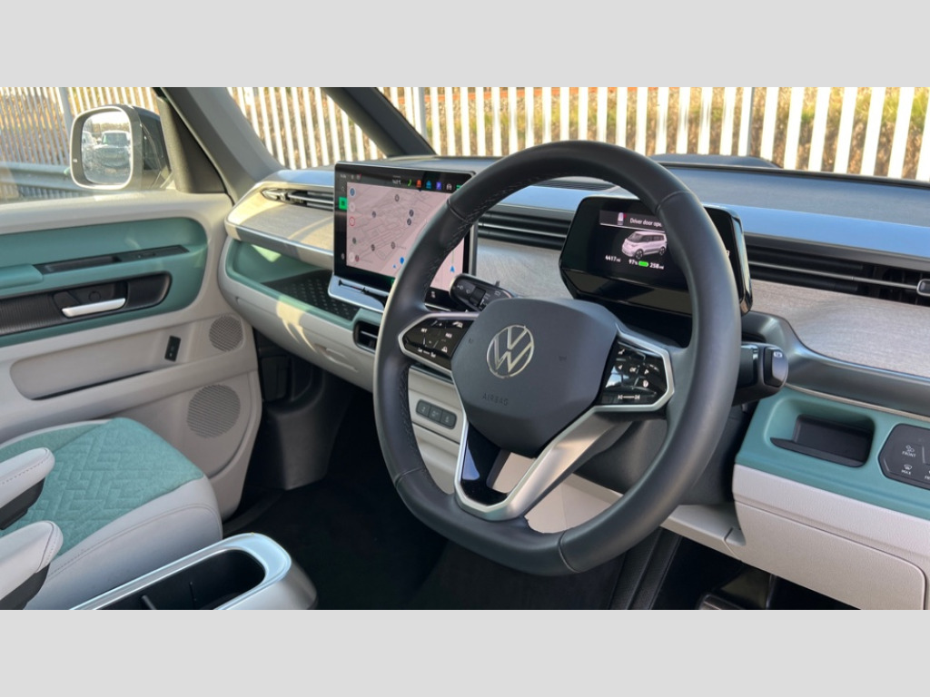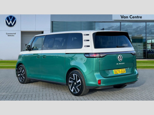 Volkswagen Id. Buzz 210kW Style Pro 86kWh 5dr LWB Auto [7 Seat] App-Connect incl. App-Connect Wireless for Apple CarPlay and Android Auto, Car2X technology, Digital cockpit, Driver alert system, Dynamic road sign display, E-call, Electromechanical power steering, Electronic engine sound, Front and rear parking sensors, Head up Display, Oncoming vehicle braking when turning including swerve support, Speed limiter with intelligent speed control, Tailgate latching without unlatching function front inside, Voice control system, We connect preparation, Wireless charging, 11 kW AC onboard charger, Charging cable mode 3, type 2 32 A, DAB Digital radio receiver, Harman Kardon premium sound system, Advanced high beam control dynamic light assist for LED matrix headlamps, Auto dimming rear view mirror, Body coloured bumpers, Body coloured door handles, D pillar styling badges, Dark tinted rear windows, Daytime running lights, Dynamic headlight range control with dynamic cornering light, Gloss black door mirrors, Heated rear window, Heated washer nozzles, Heated windscreen, Illuminated molding between headlamps, Integrated fog lights with cornering function, IQ.LIGHT - LED matrix headlamps with automatic headlight control, poor weather light and entry lighting, LED 3rd brake light, LED rear combination lights with dynamic turn signal, LED rear lights with dynamic turn signal, Power adjustable, heated and folding mirrors with front passenger lowering function, Rain sensor, Rear window wiper and washer system with intermittent control, Surround lighting with logo projector, Windshield wiper intermittent control with rain sensor, 1 USB-C charging socket in front passenger area, 2 seats in 3rd row, 2 USB-C ports in dashboard, 2 waste bins for door pockets, 2-zone Climatronic with enhanced air filter and stationary air conditioning, 3 rear seat head restraints, 3 seat bench in 2nd row, 4 USB-C charging sockets in rear, 60/40 split folding rear seat bench, Airbag label on sun visor and B-pillar, Buzz box - removable centre console with storage compartments and mounting points in vehicle floor between front seats, Driver and passenger footwell lighting, Drivers and front passengers seat height adjustment, Front carpet mats, Front head restraints, Heated front seats, LED luggage compartment lighting, Lockable glovebox with illumination, Luggage compartment cover, Luggage net, Multi flex board, Operating voltage 12V, Pedals in stainless steel with play and pause symbols, Single front passenger seat, Steering wheel, dashboard and central controls in black, Sun visors with illuminated vanity mirrors, Assistance Package Plus - ID.Buzz, Infotainment package plus with Navigation system - ID.Buzz, Open and close pack Plus - ID.Buzz, 3-point rear outer seat belts with ECE label, 3-point seat belts with seat belt and lap belt pretensioner in front and height adjustment, ABS, Autonomous emergency braking front assist with pedestrian and cyclist monitoring, Driver and front passenger airbag with front passenger airbag deactivation, Electric child locks, Electronic parking brake, First aid kit with warning triangle and safety vest, Front and rear seatbelt audible and visual warning indicator, Front curtain and side airbags with center airbag, Proactive passenger protection system, Tyre pressure monitoring system, Airstop tyres, Tool kit