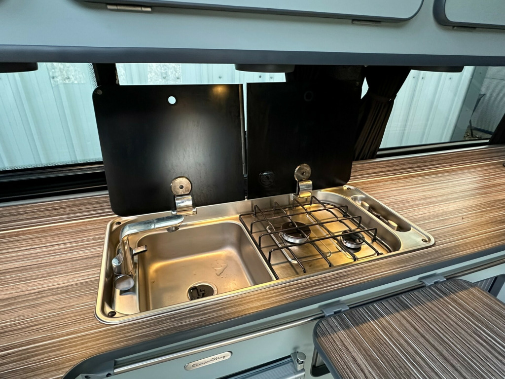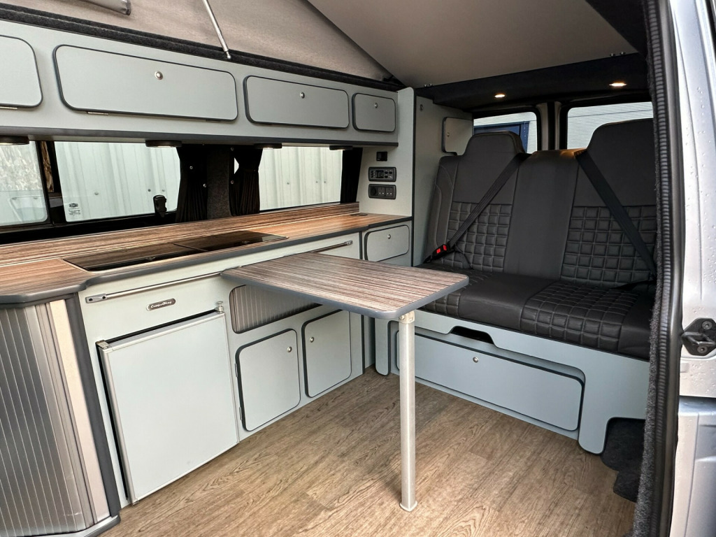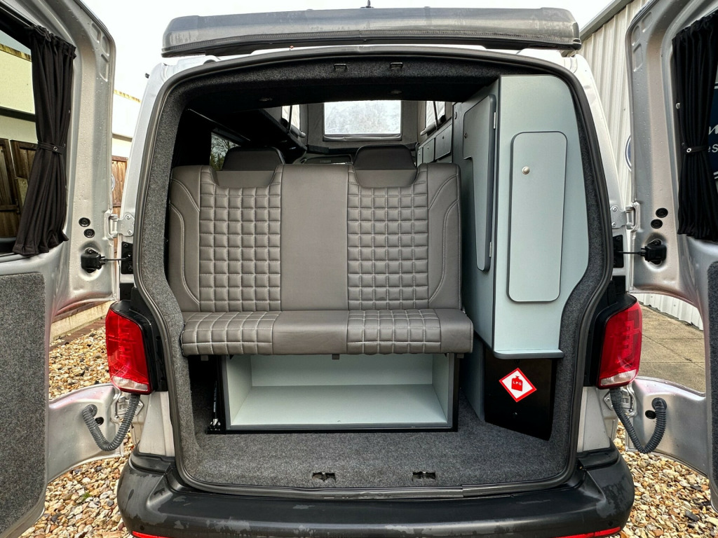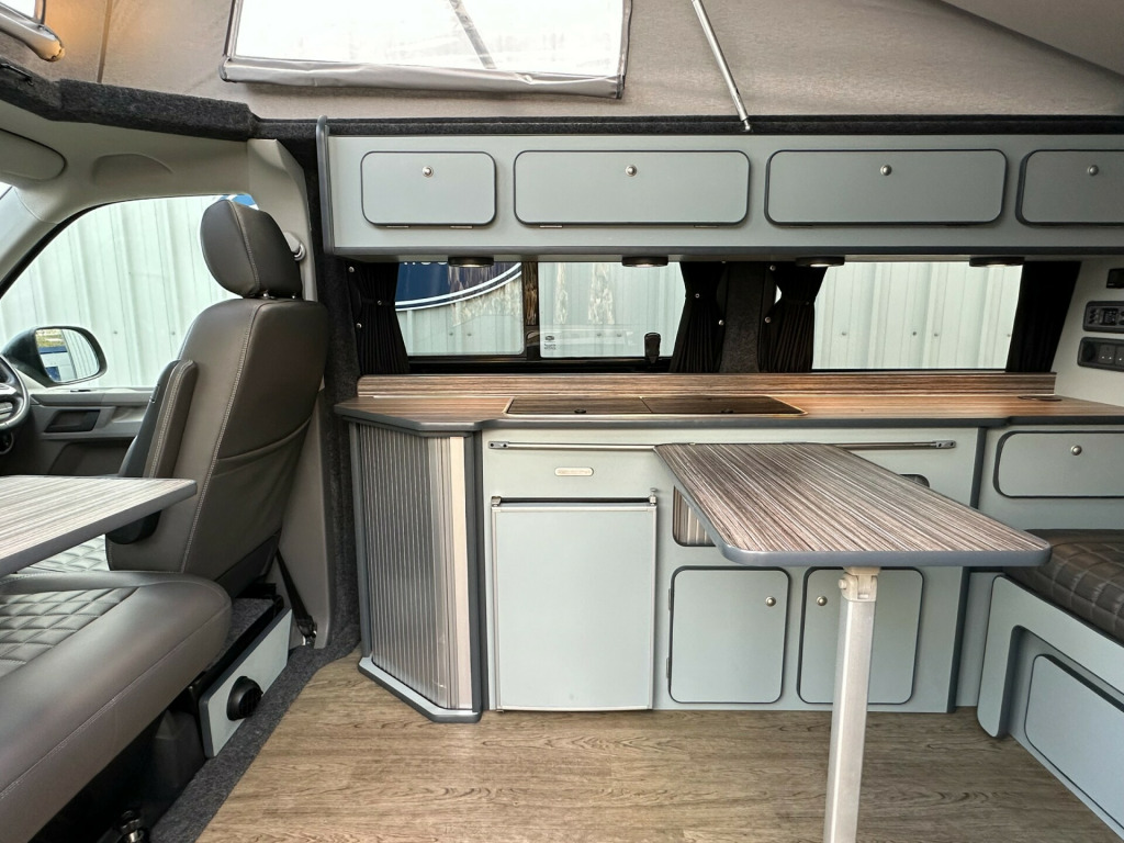 The Great St Tropez from Camper King one of the originals just got better ,This stunning example built on the Long wheel base to give you that extra space needed for those camping trips away.Double swivel passenger seat and double seat in the rear giving 5 seat belts car or camper you can decide.Traditional camper side kitchen layout - twin tables a really nice design '' We have attempted to make the above description as accurate as possible but please bear in mind that honest mistakes can happen so this description cannot form any part of any future contract. Some items fitted to models on display may be excluded from said contract' 2 berth, 240 mains & usb sockets, 4 berth, 5 seat belts, alloy wheels, apple car play, barn doors, battery charger, blinds, cab aircon, cruise control, curtains, diesel heating, double swivel passenger seat, elevating roof, euro 6, fresh water tank, fridge, gas hob, heating, leisure battery, long wheel base, lovely original condition, mains hookup, plgv (under 3.5t), rear park sensors, side running bars, sink, solar panel, sub 6.0 m van