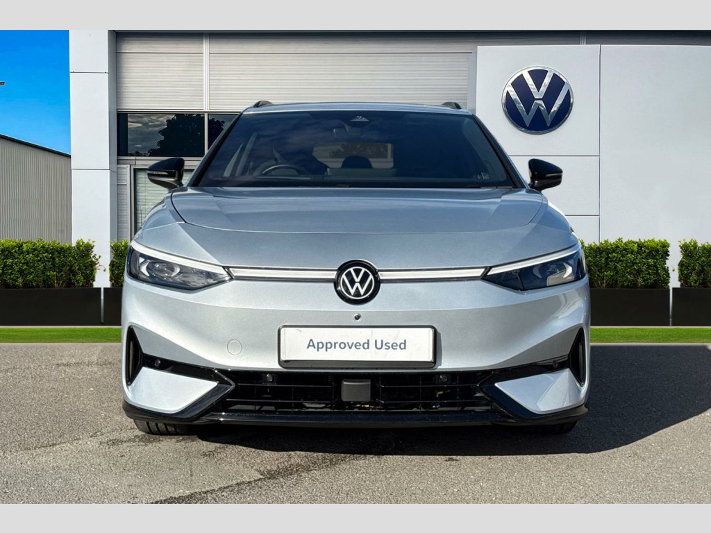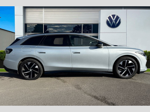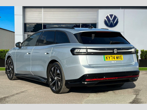 Available to purchase at Wrexham Volkswagen is this Volkswagen ID.7 Tourer Pro Match. Powering this ID.7 is a 77kWh battery that produces 286PS with automatic transmission. This ID.7 has a battery range of up to 372mi*, and can reach a charge of 80% in 29 minutes at its fastest charging speed of 175kW.