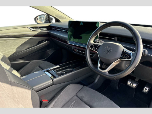 The exterior, which is finished in a Scale Silver paintwork, has a range of features on offer. To the front of the ID.7 you'll find the IQ.LIGHT LED Matrix headlights that keep the roads well lit, and to the side the rear tinted windows for passenger privacy and the 19in Hudson alloy wheels. For added convenience this ID.7 also features keyless entry and starting, electric tailgate, and parking sensors that assist with maneuvering alongside the area view cameras.