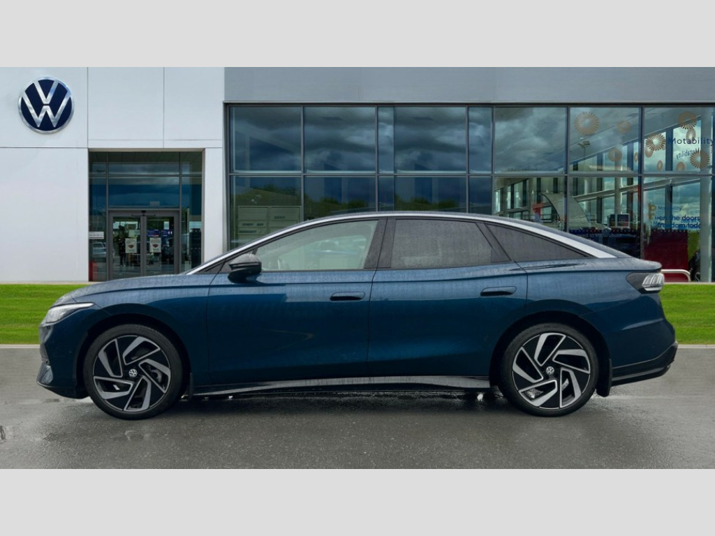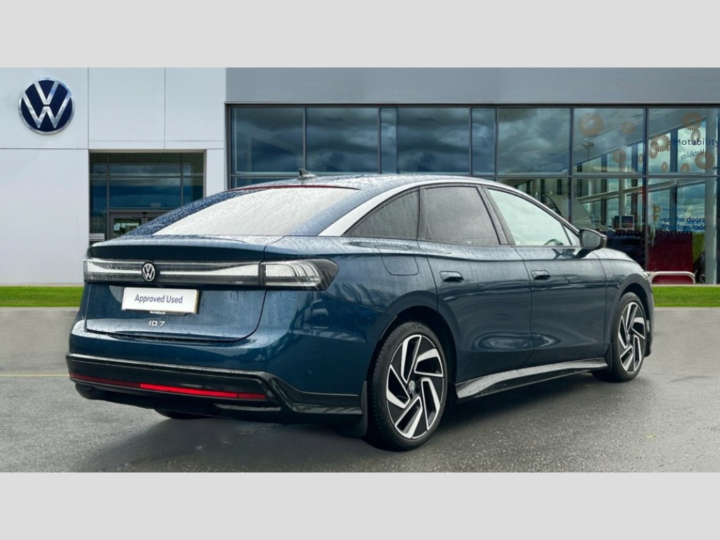 Volkswagen Id.7 210kW Match Pro S Plus 86kWh 5dr Auto Adaptive cruise control, Advanced driver attention and drowsiness monitor, Area view including rear view camera, Augmented reality head up display, Car2X intelligent vehicle networking, Digital instrument cluster, Discover pro navigation system with 15" centre display, media and internet package, Dynamic road sign display, Electric tailgate, Emergency call service, Engine start button, Lane change system, Side assist, Rear traffic alert and Exit warning system, Memory feature for park assist, Oncoming vehicle braking when turning including swerve support, Park assist plus with park distance control, Parking route memory, Preparation for Volkswagen connect, Semi-automatic vehicle control in an emergency, Speedo and rev counter, electronic odometer, trip, service interval display and exterior temperature gauge, Traffic jam assist, Travel assist with lane assist and emergency assist, Voice activation for navigation and phone, Wireless App-Connect, Wireless Smartphone charger, Charging cable mode 3, Type 2: 7.2kW 1-Phase/11kW 3-Phase (32A), Standard electronic engine sound actuator, 8+1 Speakers, DAB+ radio, Gaming platform via car app, AC Charging socket, Auto dimming rear view mirror, Auto headlights, Body coloured bumpers, Charging flap with weather protection, Exterior mirrors convex on the left and aspherical on the right, Front and rear electric windows, Gloss black door mirrors with integrated indicators, Heated door mirrors, High beam assist with automatic sensing for switching between dipped and main beam, LED 3rd brake light, LED daytime running lights, LED indicator lights, Rain sensor, Rear side wing doors, Rear wiper, Remote electrically foldable door mirrors, puddle lights and reverse activated tilting door mirror, Roof aerial, Welcome lights, Windscreen - Laminated, heated, infrared-reflecting and sound insulating, 12 way power seat adjustment for both front seats, with memory feature and seat depth adjustment, 2 USB-C ports in the front, 2 USB-C charging sockets on the center console in the rear, 3 zone air care climatronic with rear air conditioning control panel, 30 colours options interior ambient lighting, Allergen filter and enhanced air filter, Art Velours eco microfleece cloth upholstery with seat bolsters in Artex, Black carpet mats, Centre console with illuminated storage compartment with sliding cover and two drinks holders, Door and side trim panel in foam film, insert in leatherette, Electric auxiliary air heater, Energy efficient heat pump with refrigerant, ErgoActive comfort seats in front, First aid kit, warning triangle and safety vest, Front centre armrest, Front seats with massage programs, Heated front seats, Isofix child seat preparation, Leatherette-wrapped multifunction heated steering wheel with touch control, Luggage compartment floor, folding with stowage area, Luggage net and storage net on sides, Matt black interior door handles, Play and pause stainless steel pedals, Power adjustable lumbar support in front, Rear centre headrest, Rear seat bench unsplit, backrest split folding with center armrest including 2 cup holders, Single front passenger seat, Sun visors with illuminated vanity mirrors, System optimised front head restraints, Variable boot floor, height adjustable and removable, 3 point seat belts in front with seat belt pretensioners, 3x3 point rear seatbelts, ABS, Autonomous emergency braking front assist with pedestrian and cyclist monitoring, Brake energy recuperation, Driver and front passenger airbag with front passenger airbag deactivation, Electric parking brake, ESP, Extended safety system with proactive passenger protection system, Front curtain and side airbags with center airbag, Front disc brakes, Rear door child safety locks, Rear drum brakes, Two tone horn, Tyre pressure warning, Warning signal and warning light for front and rear seat belts not fastened, Anti theft alarm, Anti theft wheel bolts, Immobiliser, Keyless entry and start with safelock, Comfort dashboard in soul black, Tool kit for tyre mobility, 12-volt compressor and tyre sealant