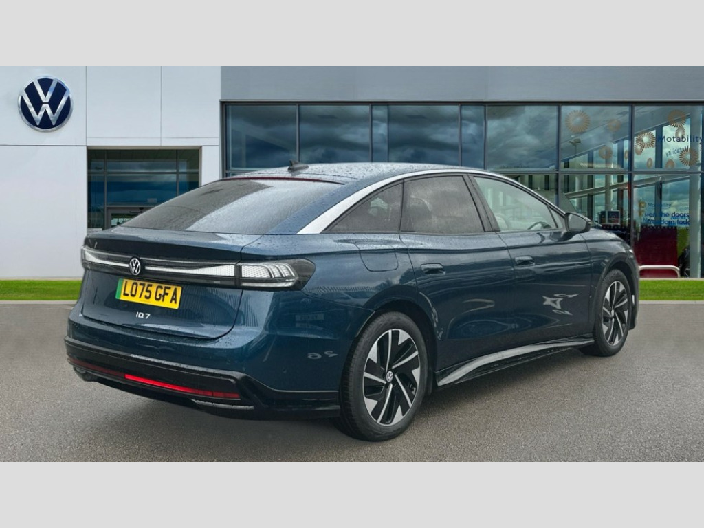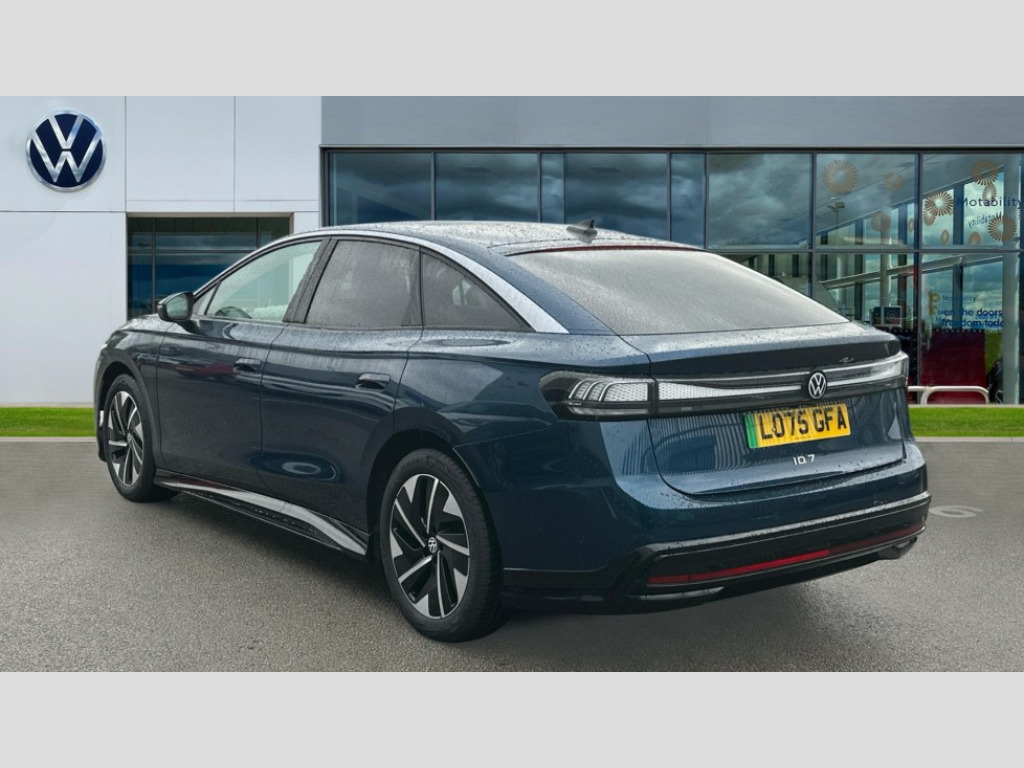The ID.7 Pro S Match Plus stands out with its exceptional performance, accelerating from 0 to 62mph in just 6.6 seconds, demonstrating its dynamic capability. Its rapid charging ability is another key advantage, capable of reaching 80% charge from empty in only 29 minutes, minimising downtime. Furthermore, the generous boot space ensures practicality for all your needs. These highlights collectively position this Volkswagen ID.7 as a superior choice for those seeking an electric vehicle that combines extensive range, rapid charging, and advanced driver assistance features. Adaptive cruise control, Advanced driver attention and drowsiness monitor, Area view including rear view camera, Augmented reality head up display, Car2X intelligent vehicle networking, Digital instrument cluster, Discover pro navigation system with 15" centre display, media and internet package, Dynamic road sign display, Electric tailgate, Emergency call service, Engine start button, Lane change system, Side assist, Rear traffic alert and Exit warning system, Memory feature for park assist, Oncoming vehicle braking when turning including swerve support, Park assist plus with park distance control, Parking route memory, Preparation for Volkswagen connect, Semi-automatic vehicle control in an emergency, Speedo and rev counter, electronic odometer, trip, service interval display and exterior temperature gauge, Traffic jam assist, Travel assist with lane assist and emergency assist, Voice activation for navigation and phone, Wireless App-Connect, Wireless Smartphone charger, Charging cable mode 3, Type 2: 7.2kW 1-Phase/11kW 3-Phase (32A), Standard electronic engine sound actuator, 8+1 Speakers, DAB+ radio, Gaming platform via car app, AC Charging socket, Auto dimming rear view mirror, Auto headlights, Body coloured bumpers, Charging flap with weather protection, Exterior mirrors convex on the left and aspherical on the right, Front and rear electric windows, Gloss black door mirrors with integrated indicators, Heated door mirrors, High beam assist with automatic sensing for switching between dipped and main beam, LED 3rd brake light, LED daytime running lights, LED indicator lights, Rain sensor, Rear side wing doors, Rear wiper, Remote electrically foldable door mirrors, puddle lights and reverse activated tilting door mirror, Roof aerial, Welcome lights, Windscreen - Laminated, heated, infrared-reflecting and sound insulating, 12 way power seat adjustment for both front seats, with memory feature and seat depth adjustment, 2 USB-C ports in the front, 2 USB-C charging sockets on the center console in the rear, 3 zone air care climatronic with rear air conditioning control panel, 30 colours options interior ambient lighting, Allergen filter and enhanced air filter, Art Velours eco microfleece cloth upholstery with seat bolsters in Artex, Black carpet mats, Centre console with illuminated storage compartment with sliding cover and two drinks holders, Door and side trim panel in foam film, insert in leatherette, Electric auxiliary air heater, Energy efficient heat pump with refrigerant, ErgoActive comfort seats in front, First aid kit, warning triangle and safety vest, Front centre armrest, Front seats with massage programs, Heated front seats, Isofix child seat preparation, Leatherette-wrapped multifunction heated steering wheel with touch control, Luggage compartment floor, folding with stowage area, Luggage net and storage net on sides, Matt black interior door handles, Play and pause stainless steel pedals, Power adjustable lumbar support in front, Rear centre headrest, Rear seat bench unsplit, backrest split folding with center armrest including 2 cup holders, Single front passenger seat, Sun visors with illuminated vanity mirrors, System optimised front head restraints, Variable boot floor, height adjustable and removable, 3 point seat belts in front with seat belt pretensioners, 3x3 point rear seatbelts, ABS, Autonomous emergency braking front assist with pedestrian and cyclist monitoring, Brake energy recuperation, Driver and front passenger airbag with front passenger airbag deactivation, Electric parking brake, ESP, Extended safety system with proactive passenger protection system, Front curtain and side airbags with center airbag, Front disc brakes, Rear door child safety locks, Rear drum brakes, Two tone horn, Tyre pressure warning, Warning signal and warning light for front and rear seat belts not fastened, Anti theft alarm, Anti theft wheel bolts, Immobiliser, Keyless entry and start with safelock, Comfort dashboard in soul black, Tool kit for tyre mobility, 12-volt compressor and tyre sealant