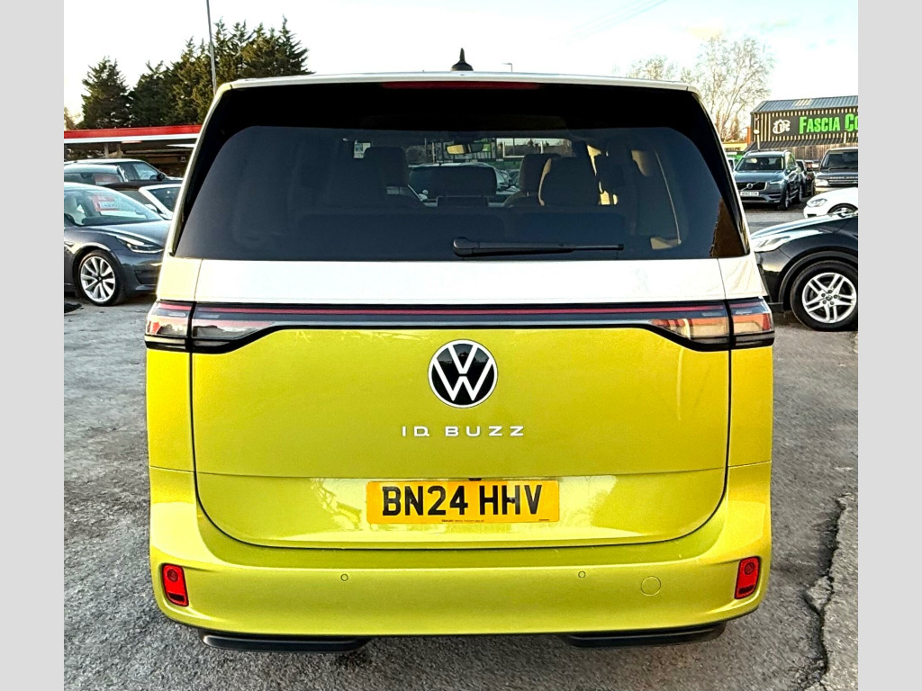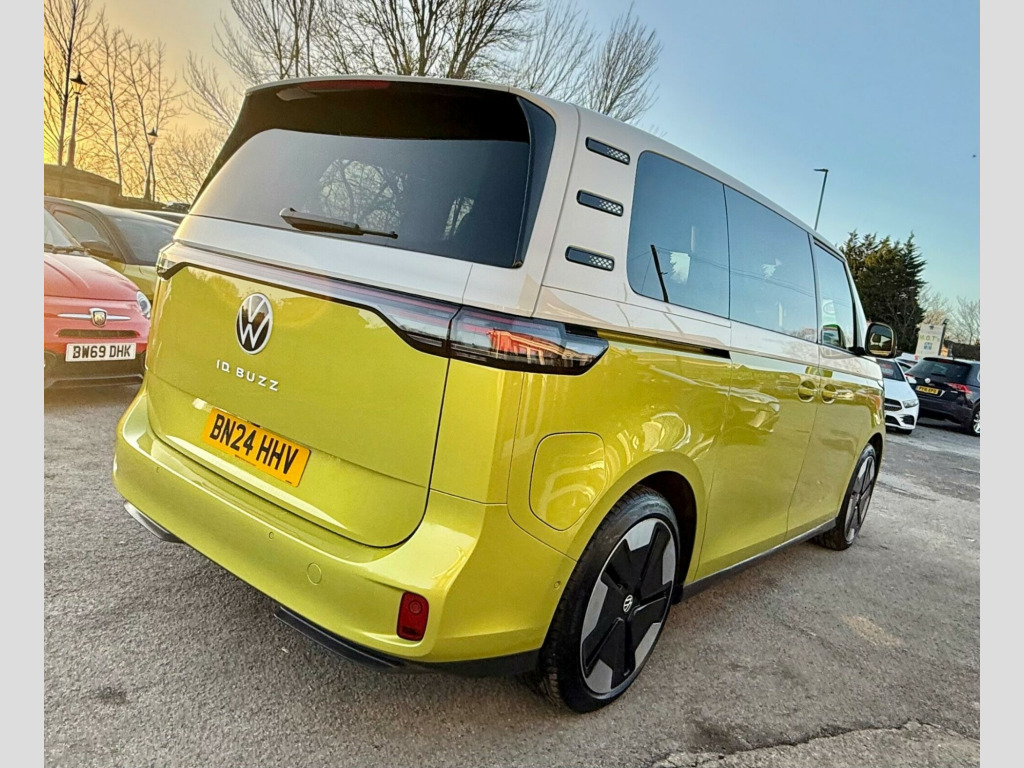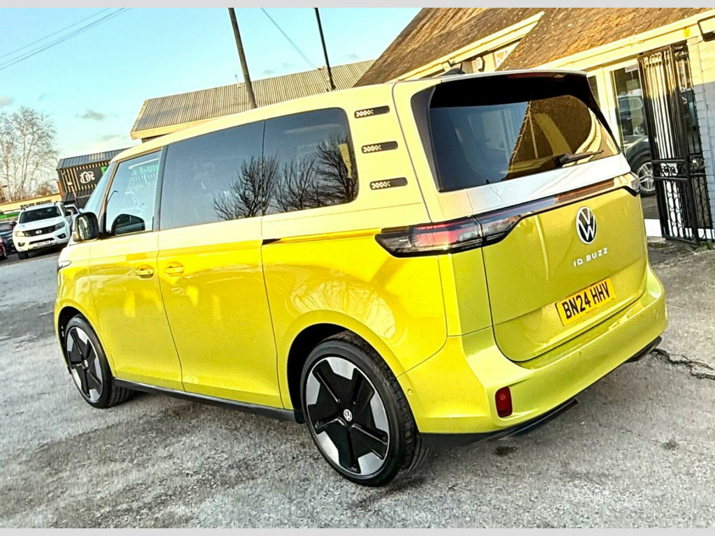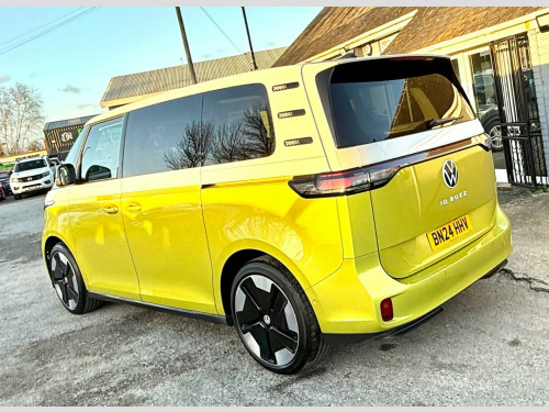 This 2024 Volkswagen ID. Buzz Pro 1ST Edition is a superb example, having had only one owner since new. This electric vehicle boasts an 82 kWh battery, offering a maximum range of 255 miles on a full charge. It is equipped with IQ Light LED Matrix dipped and mainbeam headlights, an Infotainment Package Plus featuring wireless phone charging, and Adaptive Cruise Control with a speed limiter for effortless journeys.The Comfort Seat Package includes memory seats and a heated steering wheel, enhancing your driving experience, while front and rear parking sensors make manoeuvring simple. With a generous boot space, this ID. Buzz is as practical as it is stylish. Its rapid charging capability means it can reach 80% charge in just 30 minutes, setting it apart from many other electric vehicles and ensuring you spend less time waiting and more time driving. wo cloth - lime yellow-mistral, 12v socket in luggage compartment, 1x 6 metre charging cable - 16amp ac cable for wallbox charge points - mode 3, 2 waste bins for door storage compartments in cab, 21in alloy wheels - bromberg - black diamond turned, 3 point seat belts in front and outer rear seats with pretensioner and height adjustment, 3x usb-c ports in the front, 4x usb-c ports in the passenger compartment, abs - anti-lock braking system, adaptive cruise control - acc with speed limiter, advanced high-beam control dynamic light assist for led matrix headlights, ambient lighting, anti-theft alarm system with interior monitoring - backup horn and towing protection, armrests for front seats, automatic dimming interior rear view mirror, automatic post-collision braking system, autonomous emergency braking - front assist with pedestrian and cycling monitoring, body coloured bumpers, buzz box, car2x - intelligent vehicle networking, carpet floor covering, central locking with two remote control folding keys including interior control and safelock, climatronic two-zone electronic air conditioning system including allergen filter, comfort seat package, comfort seats on the left and right of 1st row, dab digital radio receiver, digital cockpit, driver alert system, driver and front passenger airbags with front passenger airbag deactivation, dynamic headlight range control with dynamic cornering light, dynamic road sign display, electric childproof lock, electric windows - front, electrically heated - adjustable and foldable door mirrors, emergency call service - e-call, exterior e-sound, first aid kit and warning triangle and safety vest, footwell illumination - front and rear, gloss black door mirrors, glovebox - illuminated - lockable, heated front seats, heated front windscreen with heat reflecting glass, heated leatherette trimmed multi-function black steering wheel with height and logitudinal adjustment and touch control, heated rear window with wiper and washer system, heated windscreen, iq light led matrix dipped and mainbeam headlights, isofix including i-size and top tether in outer seats in 2nd row, illuminated door handles, illuminated light band between headlights, infotainment package plus, infotainment surround - steering wheel and central controls in electric white, keyless start, led rear light clusters with dynamic sequential indicators, luggage compartment cover, mobile phone interface with wireless charging, park assist, parking sensors - front and rear, power front seats with memory function - electrically adjustable lumbar support and drivers seat with smart comfort entry aid, power steering - electromechanical, privacy glass, proactive occupant protection, rain sensor, ready 2 discover max infotainment system including streaming and internet with 12in touch-screen and eight loudspeakers, rear view camera, seat belt warning for driver and all passenger seats if unfastened, side and curtain airbags for driver and front passenger - curtain airbags for outer seats in rear - centre airbag in front, silver birch decorative trims, single-tone horn, sliding doors - left and right with power latching, split folding rear seat bench 60-40, stainless steel pause and play pedals, sun visors with illuminated vanity mirrors, surround lighting in door area, tailgate with window and power latching, tool kit, two led luggage compartment light, tyre pressure loss indicator, unique id buzz badging, voice activation, volkswagen app-connect for google android auto including wireless connection for apple carplay, we connect preparation, windscreen wiper with intermittent wipe