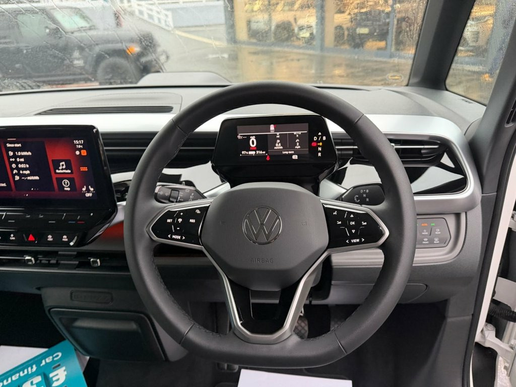 Just 750 miles!!! LIFE PRO 77KWH EV MPV. Purec with Dark Grey trim, delivery mileage ID Buzz with great specification & as new throughout. 19 inch Polished wheels, sun protection glass, illuminated puddle lights, interior ambient multicolour lighting with Light Themes, reversing camera, Parking Assist, radar adaptive cruise control, Navigation, IQ Drive Assist, heated seats and climate control, rear tables, adjustable Drive modes, App Connect with Android Auto plus much more. New throughout with delivery mileage & Vat Q! 10 Colour Ambient Lighting, 19in Alloy Wheels - Tilburg - Bi-Colour, 2 Waste Bins for Door Storage Compartmen, 2-Zone Climatronic with Enhanced Air Fil, 2x USB-C Ports in Dashboard - 1x USB-C C, 3-Point Seat Belts - Outer Rear with ECE, 3-Point Seat Belts in Front with Pretens, 9 Speakers, ABS - Anti-Lock Braking System, Adaptive Cruise Control - ACC with Speed, Anti-Theft Alarm System with Interior Mo, App Connect with Wireless Connection for, Armrests for Front Seats - Innerside of , Automatic Dimming Interior Rear View Mir, Autonomous Emergency Braking - Front Ass, Black Decorative Trims, Body Coloured Bumpers, Buzz Box, Car2X - Intelligent Vehicle Networking, Carpet Floor Covering and Fl
