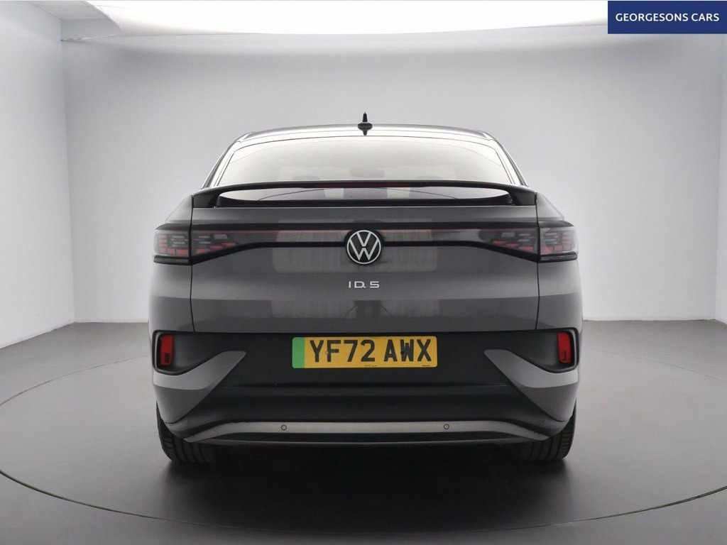 The Volkswagen ID.5 Pro 77kWh Style combines a powerful electric motor with 286hp, delivering 0-62mph in 6.7 seconds and up to 323 miles WLTP range in this rear-wheel-drive setup with a smooth single-speed automatic transmission. The Style trim brings elegant coupe-SUV styling with a premium interior. With one owner, this ID.5 is in excellent condition. Enjoy the expansive panoramic glass roof for an airy cabin feel, while integrated satellite navigation, Apple CarPlay, Bluetooth and DAB radio ensure seamless connectivity. Parking is effortless with reverse camera, parking sensors and park assist. Stay comfortable with dual-zone climate control, heated front seats and heated steering wheel. Adaptive cruise control with speed limiter and lane assist enhance safety and relaxation on every journey. The stylish five-door coupe-SUV includes a 549-litre boot for practicality. 3 Rear Head Restraints, 3-Point Seatbelts in Front with Seatbelt, ABS - Anti-Lock Braking System, App Connect with Wireless Connection for, Armrest - Drivers and Passenger, Assistance Package, Autonomous Emergency Braking - Front Ass, Auxillary Battery with Operating Voltage, Body Coloured Bumpers, Car2X - Intelligent Vehicle Networking, Central Control Unit - Infotainment Scre, Centre Console with Storage Compartments, Climate Windscreen, Comfort Package, Comfort Package Plus, Curtain and Side Airbags in Front with C, DAB+ - Digital Radio Reception, DC Battery Charging Capability - Type 2-, Design Package, Design Package Plus, Diversity Antenna for FM Reception, Door and Side Trim Panel wit
