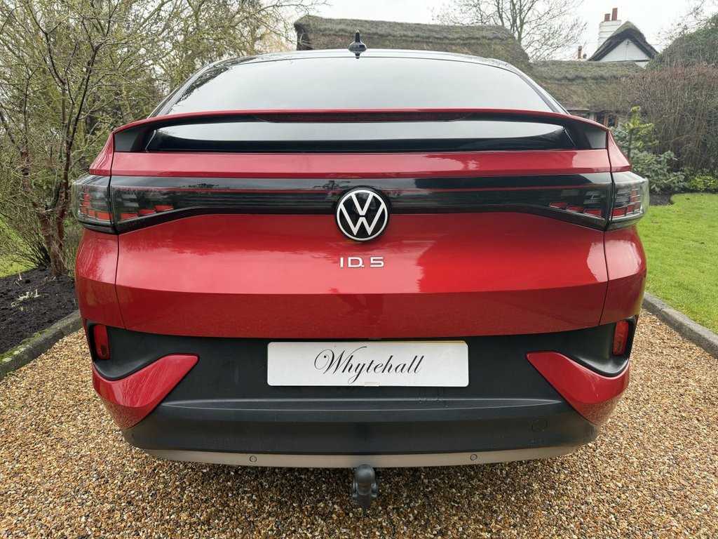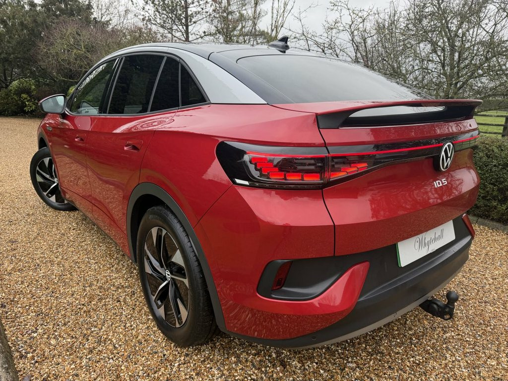 Whytehall are delighted to offer this superb colour combination 1 owner VOLKSWAGEN ID.5 Pro Performance 77kWh Tech SUV 5dr Electric Auto (204 ps) Finished in Kings red metallic, Panoramic roof, Electric deployable tow-bar. having had only one owner since new. As an electric vehicle, it boasts a substantial 82 kWh battery, offering an impressive maximum range of 323 miles on a full charge. This model, in the Tech trim, comes equipped with a factory fitted electric deployable trailer hitch, making it versatile for various needs. The Assistance Package Plus enhances safety with Blind Spot Assistance and a 360 degree camera for parking, while the Infotainment Package Plus includes a helpful Head Up Display. Further enhancing the driving experience are the Design Package features, such as automatic LED headlights, and the Interior Style package, which includes a heated steering wheel for added comfort. The electric powertrain of this ID.5 Pro Performance Tech provides a smooth and quiet drive, with a full charge at home taking approximately 12 hours and 40 minutes using a 7kW charger. For quicker top ups, public charging can replenish the battery from empty to 80% in as little as 30 minutes. These charging capabilities, combined with its extensive 323 mile range, position this vehicle favourably against others in its class, offering both convenience and long distance potential. The inclusion of features like the Head Up Display and the 360 degree camera further elevate its appeal 19in Alloy Wheels - Hamar, 3 Rear Head Restraints, 3-Point Seatbelts in Front with Seatbelt, ABS - Anti-Lock Braking System, App Connect with Wireless Connection for, Armrest - Drivers and Passenger, Assistance Package, Assistance Package Plus, Autonomous Emergency Braking - Front Ass, Auxillary Battery with Operating Voltage, Body Coloured Bumpers, Car2X - Intelligent Vehicle Networking, Carpet Mats - Front and Rear, Central Control Unit - Infotainment Scre, Centre Console with Storage Compartments, Charging Cable Mode 3 - Type 2 - 7.2KW 3, Charging Socket AC Type 2, Climate Windscreen, Comfort Package, Comfort Package Plus, Curtain and Side Airbags in Front with C, DAB+ - Digital Radio Rec