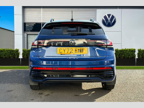 Black Design Pack with 18in Misano Alloys, Black design pack with 18" alloy wheels - Taigo, Karoso artvelours cloth - Titan black, 18" Misano black alloy wheels with diamond-turned surface, Electric windows, Rear wash/wipe with intermittent wipe setting, Body coloured bumpers, Body coloured exterior mirror housings and door handles, Bumpers in R-Line style, External USB type C socket and charging sockets, Front scuff plates with R-Line logo, Rear side wing doors, Ambient lighting with logo projection, Auto headlights, Front fog lamps with cornering function, Headlight range control, LED headlamps, LED rear combination lamp, LED third brake light, Rear fog light on one side, reversing light on both sides, Electronic stability control, Front and rear disc brakes, Hill start assist, Driver alert system, Driving profile selection, Power Steering, Aspherical driver's exterior mirror, Left convex exterior mirror, Power folding adjustable/heated exterior mirrors and front passenger exterior mirror lowering function, 2 x 3-point seatbelts/outer rear seats with ECE label, 3-point seat belts in front with pretensioner and height adjustment, 3-point seatbelt for centre rear seat, Driver and front passenger airbags with front passenger airbag de-activation, front side and curtain airbags, Driver and front passenger safety-optimised head restraints, Extended and predictive pedestrian/ cyclist protection, Front curtain and side airbags with center airbag, Manual rear child locks, Single tone horn, Tyre pressure loss indicator, Black carpets, Front + rear carpet mats, Air care climatronic air conditoning system with active combination filter and 2-zone temperature control, 12V socket in centre console, Black roof lining, Chrome bezel for instrument cluster, vents, door handles + gear shift, Front centre armrest, Height and reach adjustable steering wheel, Karoso artvelours cloth upholstery, Leather trimmed gear knob, Leather wrapped multifunction steering wheel, Luggage compartment floor, Seat covers in grey + titanium black, Stainless steel pedals, Storage compartment under front seats, 2 front reading lights, Front footwell illumination, Interior ambient lighting and surround lighting, Luggage compartment light, XDS electronic differential lock for improved traction and handling, Sun visors with illuminated vanity mirrors, App-Connect including App-Connect Wireless, Wireless Charging including Bluetooth, Digital radio reception (DAB+), Diversity antenna for FM reception, WeConnect plus, Digital cockpit pro - 10.25" high resolution TFT dash display screen with customizable menus and information, e-Call (emergency call), Travel assist including emergency assist, Washer fluid level indicator, Start-stop system with battery regeneration (recuperation - energy recovery during braking), Grey anodised matte decorative inserts in dash and front door panels, 3 rear head restraints, 3 seat bench in 2nd row, Child seat anchor for child seat system i-Size, 2x top tether and child seat anchor in front on front passenger side, Driver and front passenger seat height adjustment, Front sports comfort seats, Lumbar support for driver's and front passengers seat, Single front passenger seat, Split folding backrest with centre armrest and unsplit rear seat bench, Chrome Package - Taigo, Drivers assistance pack - Taigo, Light and Sight pack including High beam assist - Taigo, Anti-theft alarm system with interior monitoring, backup horn, and towing protection, Anti-theft wheel bolts, Low rolling resistance tyres
