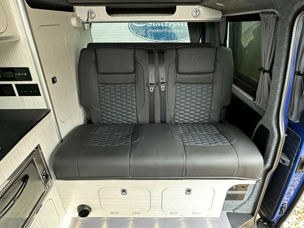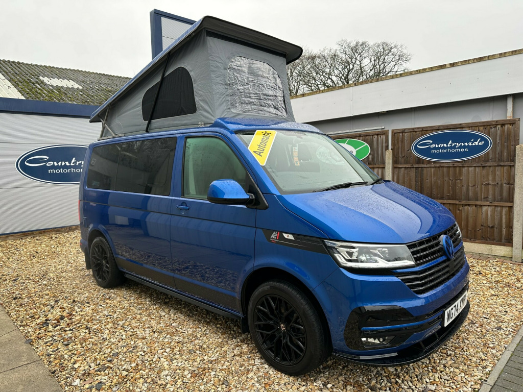Powered by the 150ps DSG VW T6.1-Great VW Autohaus Conversion built with style.A rare opportunity to own this limited edition, 1-owner vehicle with a LOW MILEAGE OF 4100Reversing Camera , Folding Mirrors , Leather interior, Air con, Diesel Heating, LED headlamps.Call now 01202 855531 Option 1 for Sales'' We have attempted to make the above description as accurate as possible but please bear in mind that honest mistakes can happen so this description cannot form any part of any future contract. Some items fitted to models on display may be excluded from said contract' ib' bed system, 150 bhp engine, 240 mains & usb sockets, 4 berth, 4 seat belts, alloy wheels, awning rail, battery charger, blinds, cab aircon, camera, cruise control, curtains, diesel heating, driveaway awning rail, dsg automatic, elevating roof, euro 6, fresh water tank, fridge, front sensors, gas hob, heating, highline spec, isofix, leather trim, leisure battery, mains hookup, plgv (under 3.5t), rear park sensors, rear parking sensors, rear tailgate, reimo elevated roof with luxurious mattress, rib seat/bed, side running bars, sink, swivel cab seats