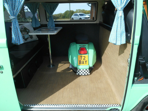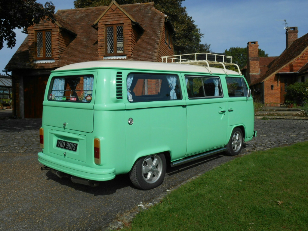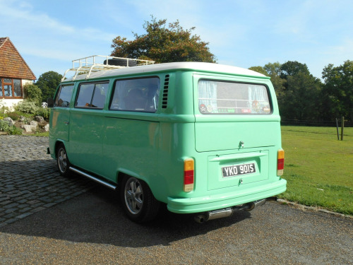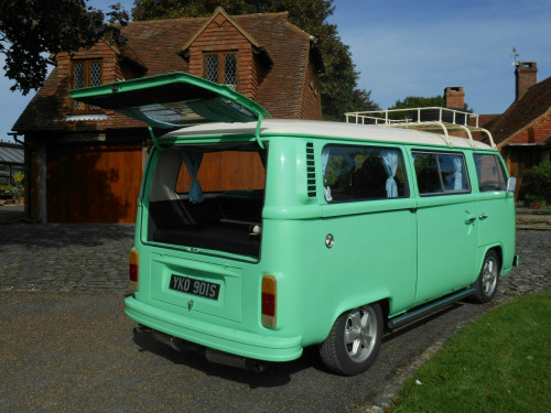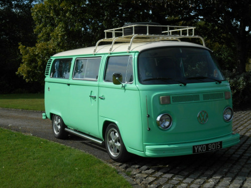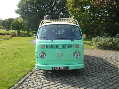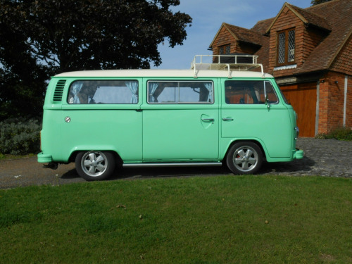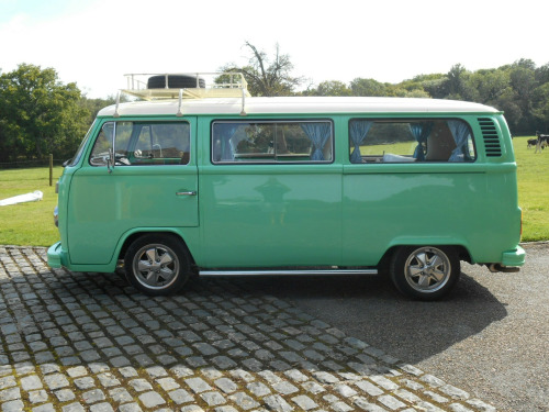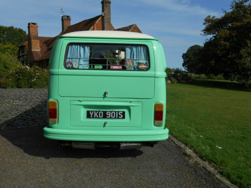 This CLASSIC 1978 Manufactured VW T2 CAMPER VAN is Finished in PEPERMINT GREEN with Contrasting IVORY ROOF and Fitted with 15'' FUCHS STYLE PORSCHE ALLOY WHEELS on LOWERED SUSPENSION and COMES with LARGE AS NEW FRAMED TENT EXTENSION for EXTRA SLEEPING ARRANGMENTS and COVERED ENTERTAINMENT AREA. ( would easily accommodate 4/6 PEOPLE) . ONLY 2 OWNERS since 2009 both VW Enthusiasts the first of whom set about a Complete Restoration after purchasing the car which had been stolen & recovered and consequently registered as a cat D total loss which is purely considered not to be ecconomicably viable for to reair repair even though there was no damage. During the rebuild the 2.0ltr ENGINE was OVERHAULED alomg with MANY other Modification & UPGRADES to make the Vehicle more Up to date for Todays Roads along with a BARE METAL BODY REFURBISHMENT in its VW CLASSIC COLOUR SCHEME , Fitted with BLACK LEATHER FRONT SEATS, a NEW ROCK and ROLL BED, Removeable Table and a QUIRKY VESPA SEAT in Which the STEREO SUB WOOFER is FITTED , Wooden Sports Steering Wheel , CURTAINS ALL ROUND, Side Chrome Sill Bars,and FRONT CAGE ROOF RACK to house your Luggage , Spare Wheel and Fitted tent ETC. The Vehicle Features on the Front Cover of the Febuary 2015 VW VIBE MAGAZINE with a 4 PAGE Write Up. There has been to much work carried out on the vehicle to list here and would have cost far more than the asking price. REGISTERED as HISTORIC VEHICLE so NO ROAD TAX or MOT NEEDED and ULEZ COMPLIANT.