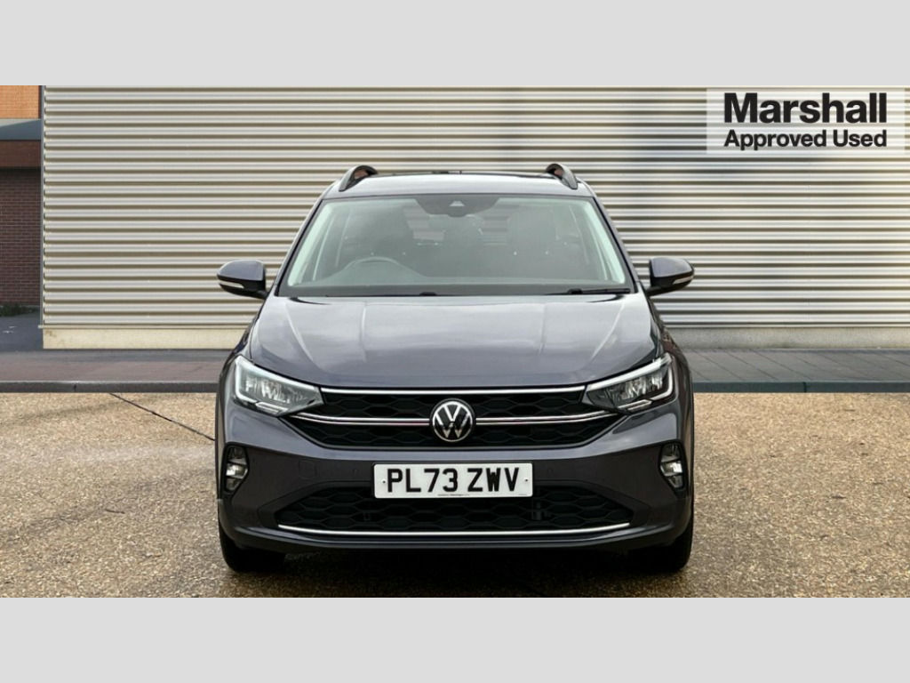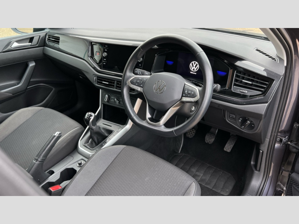 Volkswagen Taigo 1.0 TSI 110 Life 5dr e-Call (emergency call), Power Steering, Travel assist including emergency assist, Washer fluid level indicator, Wireless Charging including Bluetooth, Start-stop system with battery regeneration (recuperation - energy recovery during braking), WeConnect plus, Ambient lighting with logo projection, Aspherical driver's exterior mirror, Auto headlights, Body coloured bumpers, Body coloured exterior mirror housings and door handles, Electric windows, External USB type C socket and charging sockets, Heat insulating glass windscreen, LED rear combination lamp, LED third brake light, Left convex exterior mirror, Power folding adjustable/heated exterior mirrors and front passenger exterior mirror lowering function, Rear fog light on one side, reversing light on both sides, Rear side wing doors, Rear wash/wipe with intermittent wipe setting, 'Slash/ Austin' Cloth upholstery, 12V socket in centre console, 2 front reading lights, 3 rear head restraints, 3 seat bench in 2nd row, Black carpets, Child seat anchor for child seat system i-Size, 2x top tether and child seat anchor in front on front passenger side, Door and side trim panels in titan black, Driver and front passenger seat height adjustment, Front centre armrest, Handbrake lever handle in leather, Height and reach adjustable steering wheel, Leather trimmed gear knob, Leather wrapped multifunction steering wheel, Luggage compartment floor, Luggage compartment light, Lumbar support for driver's and front passengers seat, Seat covers in titanium black, Single front passenger seat, Split folding backrest with centre armrest and unsplit rear seat bench, Storage compartment under front seats, Sun visors with illuminated vanity mirrors, Chrome Package - Taigo, Drivers assistance pack - Taigo, Light and Sight pack including High beam assist - Taigo, 2 x 3-point seatbelts/outer rear seats with ECE label, 3-point seat belts in front with pretensioner and height adjustment, 3-point seatbelt for centre rear seat, Adaptive driver and front passenger airbags with passenger airbag deactivation function, Driver and front passenger safety-optimised head restraints, Electronic stability control, Extended and predictive pedestrian/ cyclist protection, Front and rear disc brakes, Front curtain and side airbags with center airbag, Hill start assist, Manual rear child locks, Single tone horn, Tyre pressure loss indicator, Anti-theft alarm system with interior monitoring, backup horn, and towing protection, Anti-theft wheel bolts, Lava stone black gloss/matt decorative inserts in dash and front door panels, Low rolling resistance tyres