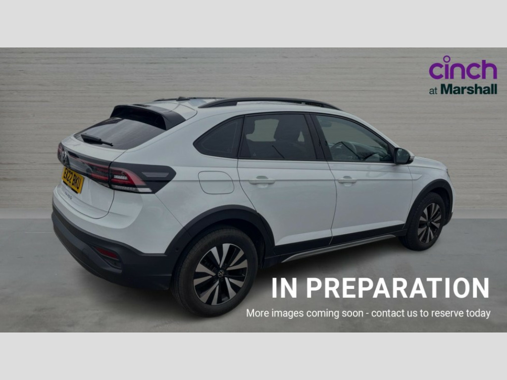 Volkswagen Taigo 1.0 TSI 110 Life 5dr App-Connect including App-Connect Wireless, Driver alert system, e-Call (emergency call), Power Steering, Travel assist including emergency assist, Washer fluid level indicator, Wireless Charging including Bluetooth, Start-stop system with battery regeneration (recuperation - energy recovery during braking), Digital radio reception (DAB+), Diversity antenna for FM reception, WeConnect plus, Ambient lighting with logo projection, Aspherical driver's exterior mirror, Auto headlights, Body coloured bumpers, Body coloured exterior mirror housings and door handles, Electric windows, External USB type C socket and charging sockets, Front fog lamps with cornering function, Headlight range control, Heat insulating glass windscreen, LED headlamps, LED rear combination lamp, LED third brake light, Left convex exterior mirror, Power folding adjustable/heated exterior mirrors and front passenger exterior mirror lowering function, Rear fog light on one side, reversing light on both sides, Rear side wing doors, Rear wash/wipe with intermittent wipe setting, 'Slash/ Austin' Cloth upholstery, 12V socket in centre console, 2 front reading lights, 3 rear head restraints, 3 seat bench in 2nd row, Black carpets, Child seat anchor for child seat system i-Size, 2x top tether and child seat anchor in front on front passenger side, Door and side trim panels in titan black, Driver and front passenger seat height adjustment, Front centre armrest, Handbrake lever handle in leather, Height and reach adjustable steering wheel, Leather trimmed gear knob, Leather wrapped multifunction steering wheel, Luggage compartment floor, Luggage compartment light, Lumbar support for driver's and front passengers seat, Seat covers in titanium black, Single front passenger seat, Split folding backrest with centre armrest and unsplit rear seat bench, Storage compartment under front seats, Sun visors with illuminated vanity mirrors, Chrome Package - Taigo, Drivers assistance pack - Taigo, Light and Sight pack including High beam assist - Taigo, 2 x 3-point seatbelts/outer rear seats with ECE label, 3-point seat belts in front with pretensioner and height adjustment, 3-point seatbelt for centre rear seat, Driver and front passenger airbags with front passenger airbag de-activation, front side and curtain airbags, Driver and front passenger safety-optimised head restraints, Electronic stability control, Extended and predictive pedestrian/ cyclist protection, Front and rear disc brakes, Front curtain and side airbags with center airbag, Hill start assist, Manual rear child locks, Single tone horn, Tyre pressure loss indicator, Anti-theft alarm system with interior monitoring, backup horn, and towing protection, Anti-theft wheel bolts, Lava stone black gloss/matt decorative inserts in dash and front door panels, Low rolling resistance tyres