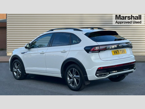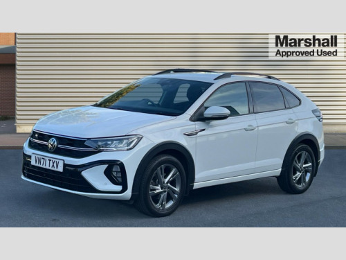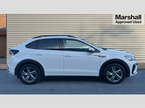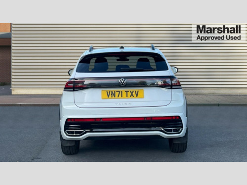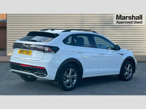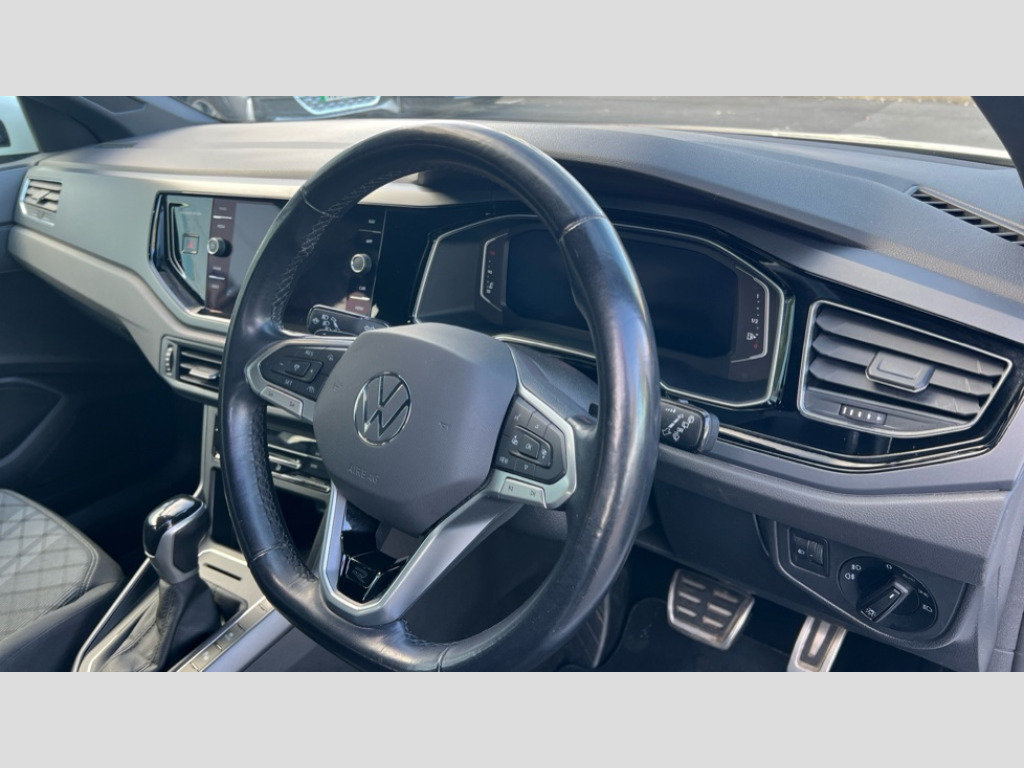 Volkswagen Taigo 1.0 TSI 110 R-Line 5dr DSG Adaptive cruise control, App-Connect including App-Connect Wireless, Digital cockpit pro - 10.25" high resolution TFT dash display screen with customizable menus and information, Driver alert system, Driving profile selection, e-Call (emergency call), Power Steering, Travel assist including emergency assist, Washer fluid level indicator, Wireless Charging including Bluetooth, Start-stop system with battery regeneration (recuperation - energy recovery during braking), XDS electronic differential lock for improved traction and handling, Digital radio reception (DAB+), Diversity antenna for FM reception, WeConnect plus, Ambient lighting with logo projection, Aspherical driver's exterior mirror, Body coloured bumpers, Body coloured exterior mirror housings and door handles, Bumpers in R-Line style, Electric windows, External USB type C socket and charging sockets, Front scuff plates with R-Line logo, LED rear combination lamp, LED third brake light, Left convex exterior mirror, Power folding adjustable/heated exterior mirrors and front passenger exterior mirror lowering function, Rear fog light on one side, reversing light on both sides, Rear wash/wipe with intermittent wipe setting, 12V socket in centre console, 2 front reading lights, 3 rear head restraints, Air care climatronic air conditoning system with active combination filter and 2-zone temperature control, Black carpets, Black roof lining, Child seat anchor for child seat system i-Size, 2x top tether and child seat anchor in front on front passenger side, Chrome bezel for instrument cluster, vents, door handles + gear shift, Driver and front passenger seat height adjustment, Front + rear carpet mats, Front centre armrest, Front footwell illumination, Front sports comfort seats, Height and reach adjustable steering wheel, Interior ambient lighting and surround lighting, Karoso artvelours cloth upholstery, Leather trimmed gear knob, Leather wrapped multifunction steering wheel, Luggage compartment floor, Luggage compartment light, Lumbar support for driver's and front passengers seat, Seat covers in grey + titanium black, Split folding backrest with centre armrest and unsplit rear seat bench, Stainless steel pedals, Storage compartment under front seats, Sun visors with illuminated vanity mirrors, Chrome Package - Taigo, Drivers assistance pack - Taigo, 2 x 3-point seatbelts/outer rear seats with ECE label, 3-point seat belts in front with pretensioner and height adjustment, 3-point seatbelt for centre rear seat, Driver and front passenger airbags with front passenger airbag de-activation, front side and curtain airbags, Driver and front passenger safety-optimised head restraints, Electronic stability control, Extended and predictive pedestrian/ cyclist protection, Front and rear disc brakes, Front curtain and side airbags with center airbag, Hill start assist, Single tone horn, Tyre pressure loss indicator, Anti-theft alarm system with interior monitoring, backup horn, and towing protection, Anti-theft wheel bolts, Grey anodised matte decorative inserts in dash and front door panels, Low rolling resistance tyres