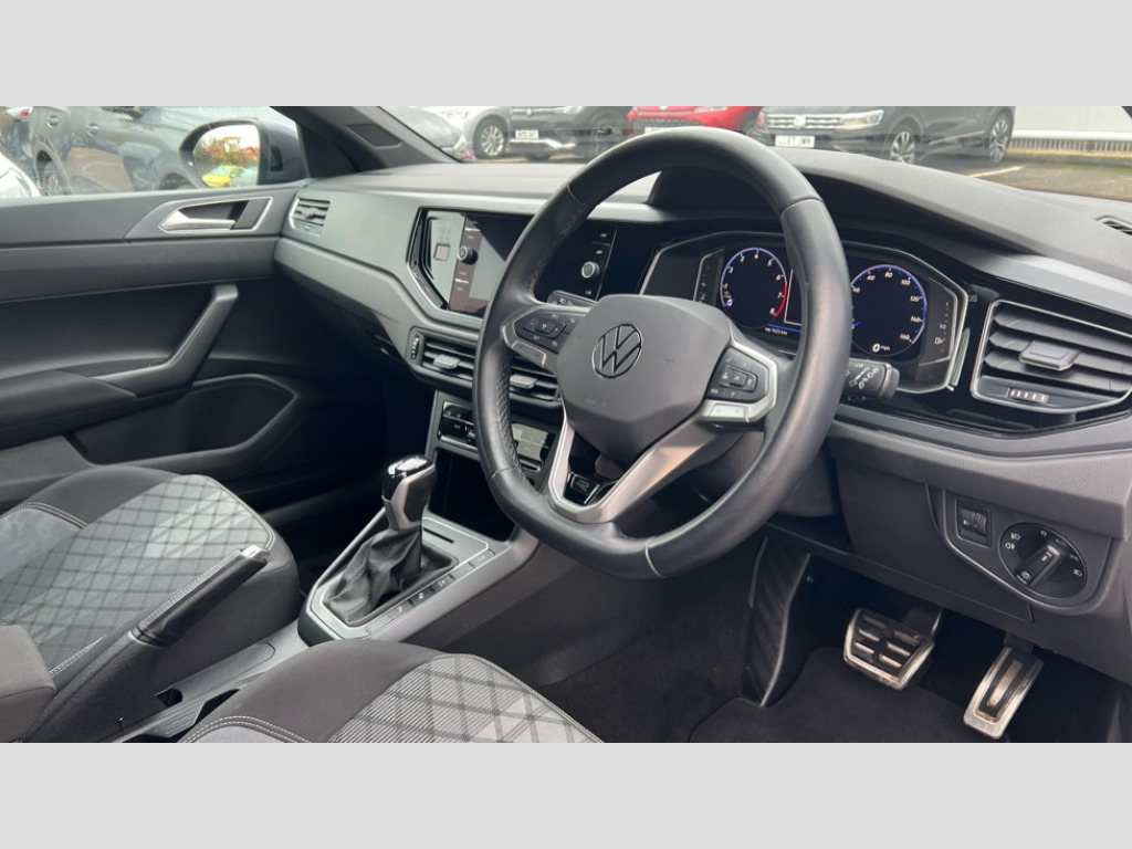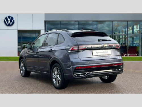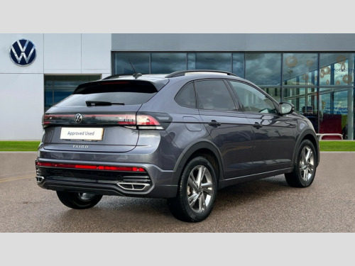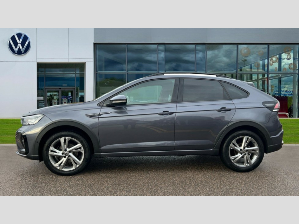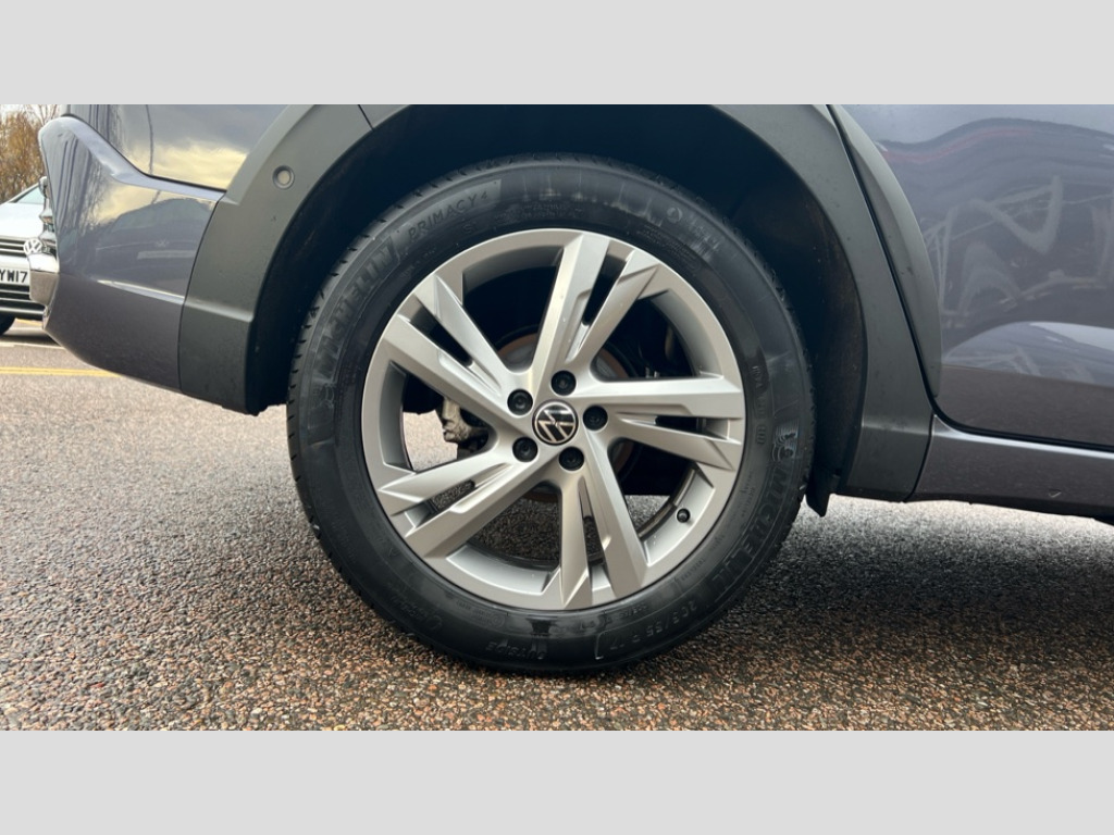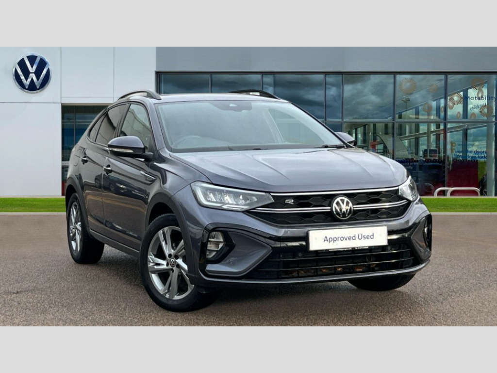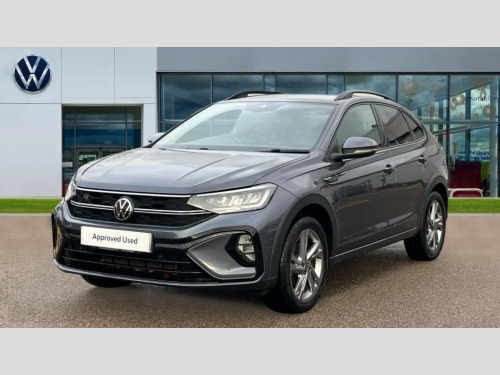 Volkswagen Taigo 1.0 TSI 110 R-Line 5dr DSG Adaptive cruise control, App-Connect including App-Connect Wireless, Digital cockpit pro - 10.25" high resolution TFT dash display screen with customizable menus and information, Driver alert system, Driving profile selection, e-Call (emergency call), Power Steering, Travel assist including emergency assist, Washer fluid level indicator, Wireless Charging including Bluetooth, Start-stop system with battery regeneration (recuperation - energy recovery during braking), XDS electronic differential lock for improved traction and handling, Digital radio reception (DAB+), Diversity antenna for FM reception, WeConnect plus, Ambient lighting with logo projection, Aspherical driver's exterior mirror, Auto headlights, Body coloured bumpers, Body coloured exterior mirror housings and door handles, Bumpers in R-Line style, Electric windows, External USB type C socket and charging sockets, Front fog lamps with cornering function, Front scuff plates with R-Line logo, Headlight range control, LED headlamps, LED rear combination lamp, LED third brake light, Left convex exterior mirror, Power folding adjustable/heated exterior mirrors and front passenger exterior mirror lowering function, Rear fog light on one side, reversing light on both sides, Rear side wing doors, Rear wash/wipe with intermittent wipe setting, 12V socket in centre console, 2 front reading lights, 3 rear head restraints, 3 seat bench in 2nd row, Air care climatronic air conditoning system with active combination filter and 2-zone temperature control, Black carpets, Black roof lining, Child seat anchor for child seat system i-Size, 2x top tether and child seat anchor in front on front passenger side, Chrome bezel for instrument cluster, vents, door handles + gear shift, Driver and front passenger seat height adjustment, Front + rear carpet mats, Front centre armrest, Front footwell illumination, Front sports comfort seats, Height and reach adjustable steering wheel, Interior ambient lighting and surround lighting, Karoso artvelours cloth upholstery, Leather trimmed gear knob, Leather wrapped multifunction steering wheel, Luggage compartment floor, Luggage compartment light, Lumbar support for driver's and front passengers seat, Seat covers in grey + titanium black, Single front passenger seat, Split folding backrest with centre armrest and unsplit rear seat bench, Stainless steel pedals, Storage compartment under front seats, Sun visors with illuminated vanity mirrors, Chrome Package - Taigo, Drivers assistance pack - Taigo, Light and Sight pack including High beam assist - Taigo, 2 x 3-point seatbelts/outer rear seats with ECE label, 3-point seat belts in front with pretensioner and height adjustment, 3-point seatbelt for centre rear seat, Driver and front passenger airbags with front passenger airbag de-activation, front side and curtain airbags, Driver and front passenger safety-optimised head restraints, Electronic stability control, Extended and predictive pedestrian/ cyclist protection, Front and rear disc brakes, Front curtain and side airbags with center airbag, Hill start assist, Manual rear child locks, Single tone horn, Tyre pressure loss indicator, Anti-theft alarm system with interior monitoring, backup horn, and towing protection, Anti-theft wheel bolts, Grey anodised matte decorative inserts in dash and front door panels, Low rolling resistance tyres