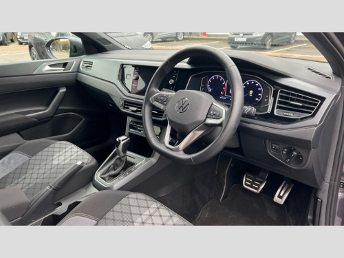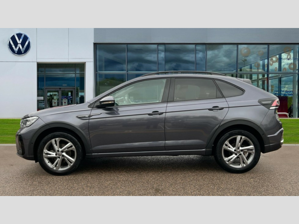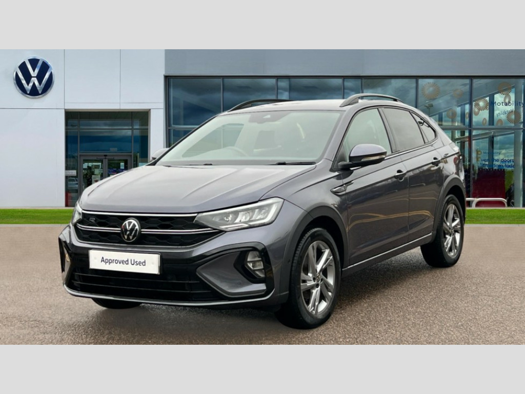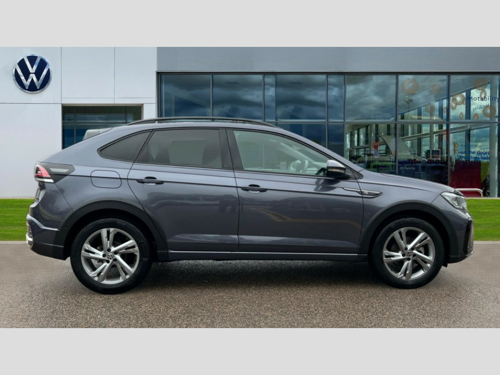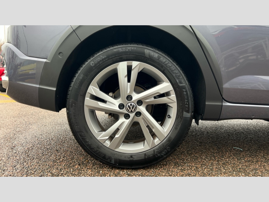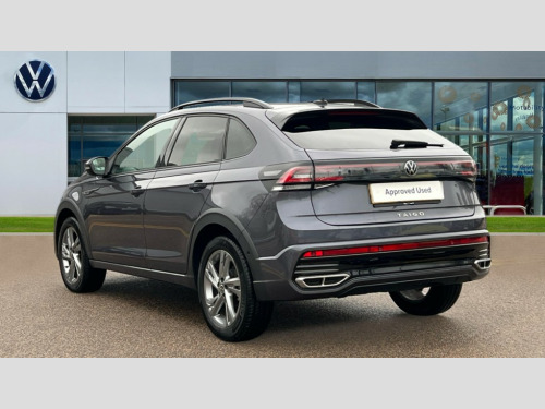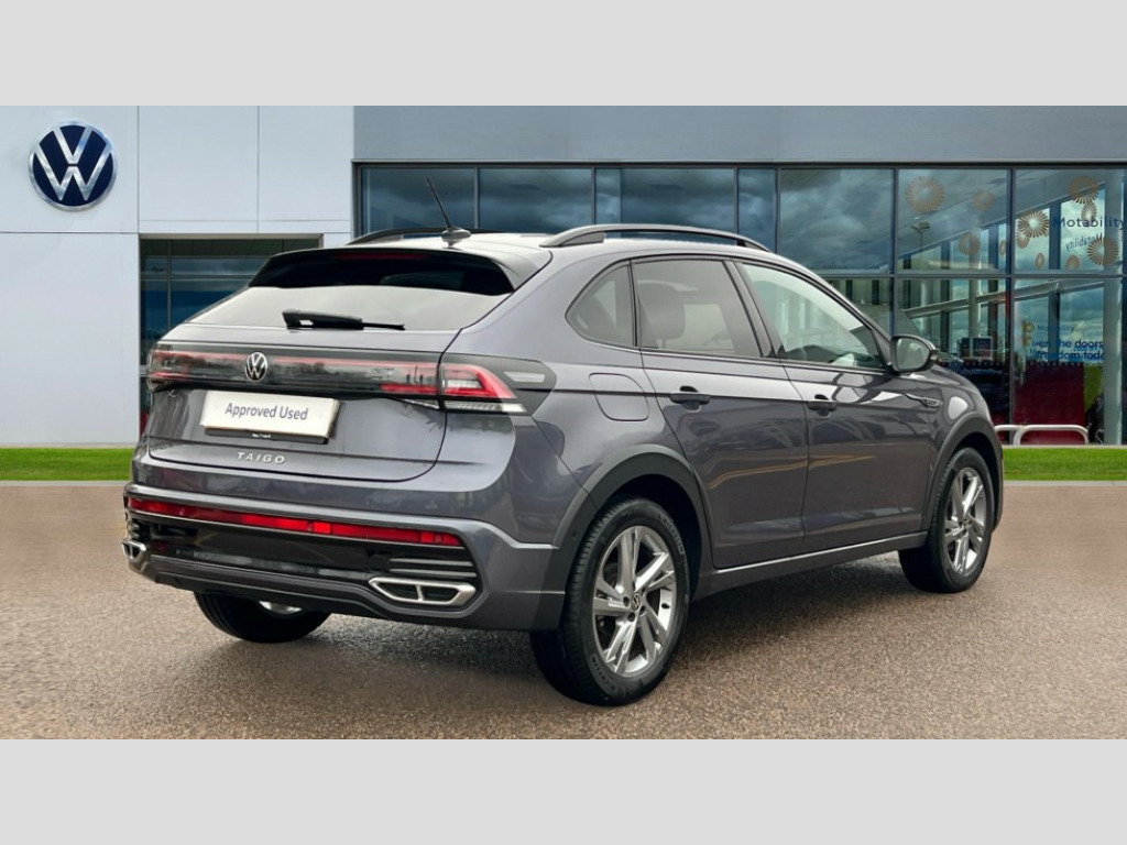 Volkswagen Taigo 1.0 TSI 110 R-Line 5dr DSG Adaptive cruise control, Advanced driver attention and drowsiness monitor, App-Connect including App-Connect Wireless, Digital cockpit pro - 10.25" high resolution TFT dash display screen with customizable menus and information, Driving profile selection, e-Call (emergency call), Power Steering, Travel assist including emergency assist, Washer fluid level indicator, Wireless Charging including Bluetooth, Start-stop system with battery regeneration (recuperation - energy recovery during braking), XDS electronic differential lock for improved traction and handling, Digital radio reception (DAB+), Diversity antenna for FM reception, WeConnect plus, Ambient lighting with logo projection, Aspherical driver's exterior mirror, Auto headlights, Body coloured bumpers, Bumpers in R-Line style, Electric windows, External USB type C socket and charging sockets, Front scuff plates with R-Line logo, LED rear combination lamp, LED third brake light, Left convex exterior mirror, Power folding adjustable/heated exterior mirrors and front passenger exterior mirror lowering function, Rear fog light on one side, reversing light on both sides, Rear side wing doors, Rear wash/wipe with intermittent wipe setting, 12V socket in centre console, 2 front reading lights, 3 rear head restraints, 3 seat bench in 2nd row, Air care climatronic air conditoning system with active combination filter and 2-zone temperature control, Black carpets, Black roof lining, Child seat anchor for child seat system i-Size, 2x top tether and child seat anchor in front on front passenger side, Chrome bezel for instrument cluster, vents, door handles + gear shift, Driver and front passenger seat height adjustment, Front + rear carpet mats, Front centre armrest, Front footwell illumination, Front sports comfort seats, Height and reach adjustable steering wheel, Interior ambient lighting and surround lighting, Karoso artvelours cloth upholstery, Leather trimmed gear knob, Leather wrapped multifunction steering wheel, Luggage compartment floor, Luggage compartment light, Lumbar support for driver's and front passengers seat, Seat covers in grey + titanium black, Single front passenger seat, Split folding backrest with centre armrest and unsplit rear seat bench, Stainless steel pedals, Storage compartment under front seats, Sun visors with illuminated vanity mirrors, Chrome Package - Taigo, Drivers assistance pack - Taigo, Light and Sight pack including High beam assist - Taigo, 2 x 3-point seatbelts/outer rear seats with ECE label, 3-point seat belts in front with pretensioner and height adjustment, 3-point seatbelt for centre rear seat, Adaptive driver and front passenger airbags with passenger airbag deactivation function, Driver and front passenger safety-optimised head restraints, Electronic stability control, Extended and predictive pedestrian/ cyclist protection, Front and rear disc brakes, Front curtain and side airbags with center airbag, Hill start assist, Manual rear child locks, Single tone horn, Tyre pressure loss indicator, Anti-theft alarm system with interior monitoring, backup horn, and towing protection, Anti-theft wheel bolts, Grey anodised matte decorative inserts in dash and front door panels, Low rolling resistance tyres