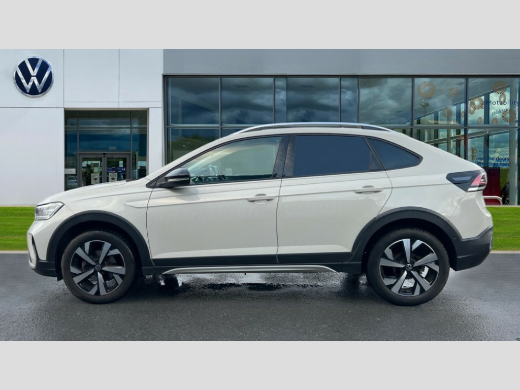 Volkswagen Taigo 1.0 TSI 110 Style 5dr App-Connect including App-Connect Wireless, Digital cockpit pro - 10.25" high resolution TFT dash display screen with customizable menus and information, Driver alert system, e-Call (emergency call), Power Steering, Travel assist including emergency assist, Washer fluid level indicator, Wireless Charging including Bluetooth, Rear shock absorption, Start-stop system with battery regeneration (recuperation - energy recovery during braking), Digital radio reception (DAB+), Diversity antenna for FM reception, WeConnect plus, Ambient lighting with logo projection, Aspherical driver's exterior mirror, Body coloured bumpers and radiator grille with chrome trim and front fog lamps with chrome bezel, Body coloured exterior mirror housings and door handles, Dual chrome twin tailpipes on left and right, Electric windows, External USB type C socket and charging sockets, LED rear combination lamp, LED third brake light, Left convex exterior mirror, Power folding adjustable/heated exterior mirrors and front passenger exterior mirror lowering function, Rear fog light on one side, reversing light on both sides, Rear side wing doors, Rear wash/wipe with intermittent wipe setting, 12V socket in centre console, 2 front reading lights, 3 rear head restraints, 3 seat bench in 2nd row, Air care climatronic air conditoning system with active combination filter and 2-zone temperature control, Black carpets, Child seat anchor for child seat system i-Size, 2x top tether and child seat anchor in front on front passenger side, Chrome bezel for instrument cluster, vents, door handles + gear shift, Driver and front passenger seat height adjustment, Front + rear carpet mats, Front centre armrest, Front footwell illumination, Front sports comfort seats, Height and reach adjustable steering wheel, Interior ambient lighting and surround lighting, Leather trimmed gear knob, Leather wrapped multifunction steering wheel, Luggage compartment floor, Luggage compartment light, Lumbar support for driver's and front passengers seat, Single front passenger seat, Split folding backrest with centre armrest and unsplit rear seat bench, Storage compartment under front seats, Sun visors with illuminated vanity mirrors, Chrome Package - Taigo, Drivers assistance pack - Taigo, IQ.LIGHT - LED matrix headlights pack - Taigo, Light and sight pack - Taigo, 2 x 3-point seatbelts/outer rear seats with ECE label, 3-point seat belts in front with pretensioner and height adjustment, 3-point seatbelt for centre rear seat, Driver and front passenger airbags with front passenger airbag de-activation, front side and curtain airbags, Driver and front passenger safety-optimised head restraints, Electronic stability control, Extended and predictive pedestrian/ cyclist protection, Front and rear disc brakes, Front curtain and side airbags with center airbag, Hill start assist, Manual rear child locks, Single tone horn, Tyre pressure loss indicator, Anti-theft alarm system with interior monitoring, backup horn, and towing protection, Anti-theft wheel bolts, Low rolling resistance tyres