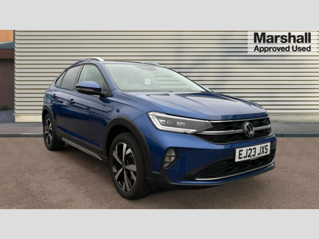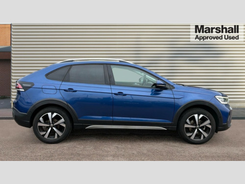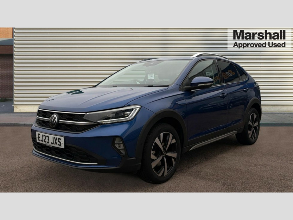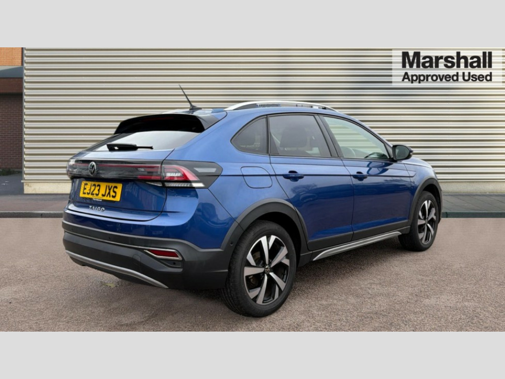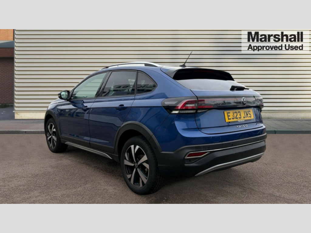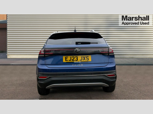 Volkswagen Taigo 1.0 TSI 110 Style 5dr App-Connect including App-Connect Wireless, Digital cockpit pro - 10.25" high resolution TFT dash display screen with customizable menus and information, Driver alert system, e-Call (emergency call), Power Steering, Travel assist including emergency assist, Washer fluid level indicator, Wireless Charging including Bluetooth, Rear shock absorption, Start-stop system with battery regeneration (recuperation - energy recovery during braking), Digital radio reception (DAB+), Diversity antenna for FM reception, WeConnect plus, Ambient lighting with logo projection, Aspherical driver's exterior mirror, Body coloured bumpers and radiator grille with chrome trim and front fog lamps with chrome bezel, Body coloured exterior mirror housings and door handles, Dual chrome twin tailpipes on left and right, Electric windows, External USB type C socket and charging sockets, LED rear combination lamp, LED third brake light, Left convex exterior mirror, Power folding adjustable/heated exterior mirrors and front passenger exterior mirror lowering function, Rear fog light on one side, reversing light on both sides, Rear side wing doors, Rear wash/wipe with intermittent wipe setting, 12V socket in centre console, 2 front reading lights, 3 rear head restraints, 3 seat bench in 2nd row, Air care climatronic air conditoning system with active combination filter and 2-zone temperature control, Black carpets, Child seat anchor for child seat system i-Size, 2x top tether and child seat anchor in front on front passenger side, Chrome bezel for instrument cluster, vents, door handles + gear shift, Driver and front passenger seat height adjustment, Front + rear carpet mats, Front centre armrest, Front footwell illumination, Front sports comfort seats, Height and reach adjustable steering wheel, Interior ambient lighting and surround lighting, Leather trimmed gear knob, Leather wrapped multifunction steering wheel, Luggage compartment floor, Luggage compartment light, Lumbar support for driver's and front passengers seat, Single front passenger seat, Split folding backrest with centre armrest and unsplit rear seat bench, Storage compartment under front seats, Sun visors with illuminated vanity mirrors, Chrome Package - Taigo, Drivers assistance pack - Taigo, IQ.LIGHT - LED matrix headlights pack - Taigo, Light and sight pack - Taigo, 2 x 3-point seatbelts/outer rear seats with ECE label, 3-point seat belts in front with pretensioner and height adjustment, 3-point seatbelt for centre rear seat, Driver and front passenger airbags with front passenger airbag de-activation, front side and curtain airbags, Driver and front passenger safety-optimised head restraints, Electronic stability control, Extended and predictive pedestrian/ cyclist protection, Front and rear disc brakes, Front curtain and side airbags with center airbag, Hill start assist, Manual rear child locks, Single tone horn, Tyre pressure loss indicator, Anti-theft alarm system with interior monitoring, backup horn, and towing protection, Anti-theft wheel bolts, Low rolling resistance tyres