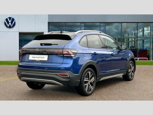Volkswagen Taigo 1.0 TSI 110 Style 5dr App-Connect including App-Connect Wireless, Digital cockpit pro - 10.25" high resolution TFT dash display screen with customizable menus and information, Driver alert system, e-Call (emergency call), Power Steering, Travel assist including emergency assist, Washer fluid level indicator, Wireless Charging including Bluetooth, Rear shock absorption, Start-stop system with battery regeneration (recuperation - energy recovery during braking), Digital radio reception (DAB+), Diversity antenna for FM reception, WeConnect plus, Advanced high beam control dynamic light assist for LED matrix headlamps, Ambient lighting with logo projection, Aspherical driver's exterior mirror, Body coloured bumpers and radiator grille with chrome trim and front fog lamps with chrome bezel, Body coloured exterior mirror housings and door handles, Dual chrome twin tailpipes on left and right, Dynamic headlight range control, Electric windows, Exterior ambient lighting in illuminated front grille, External USB type C socket and charging sockets, Front fog lamps with cornering function, LED matrix headlamps, LED rear combination lamp, LED third brake light, Left convex exterior mirror, Power folding adjustable/heated exterior mirrors and front passenger exterior mirror lowering function, Rear fog light on one side, reversing light on both sides, Rear side wing doors, Rear wash/wipe with intermittent wipe setting, 12V socket in centre console, 2 front reading lights, 3 rear head restraints, 3 seat bench in 2nd row, Air care climatronic air conditoning system with active combination filter and 2-zone temperature control, Black carpets, Child seat anchor for child seat system i-Size, 2x top tether and child seat anchor in front on front passenger side, Chrome bezel for instrument cluster, vents, door handles + gear shift, Driver and front passenger seat height adjustment, Front + rear carpet mats, Front centre armrest, Front footwell illumination, Front sports comfort seats, Height and reach adjustable steering wheel, Interior ambient lighting and surround lighting, Leather trimmed gear knob, Leather wrapped multifunction steering wheel, Luggage compartment floor, Luggage compartment light, Lumbar support for driver's and front passengers seat, Single front passenger seat, Split folding backrest with centre armrest and unsplit rear seat bench, Storage compartment under front seats, Sun visors with illuminated vanity mirrors, Chrome Package - Taigo, Drivers assistance pack - Taigo, Light and sight pack - Taigo, 2 x 3-point seatbelts/outer rear seats with ECE label, 3-point seat belts in front with pretensioner and height adjustment, 3-point seatbelt for centre rear seat, Driver and front passenger airbags with front passenger airbag de-activation, front side and curtain airbags, Driver and front passenger safety-optimised head restraints, Electronic stability control, Extended and predictive pedestrian/ cyclist protection, Front and rear disc brakes, Front curtain and side airbags with center airbag, Hill start assist, Manual rear child locks, Single tone horn, Tyre pressure loss indicator, Anti-theft alarm system with interior monitoring, backup horn, and towing protection, Anti-theft wheel bolts, Low rolling resistance tyres