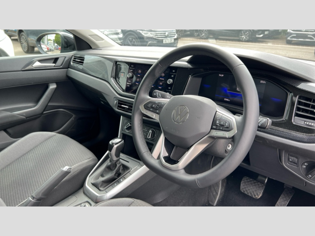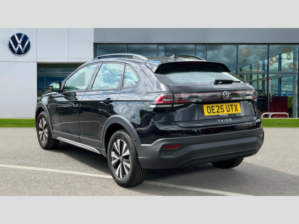 Volkswagen Taigo 1.0 TSI 115 Life 5dr DSG Adaptive cruise control, Advanced driver attention and drowsiness monitor, Dynamic road sign display, e-Call (emergency call), Power Steering, Travel assist including emergency assist, Washer fluid level indicator, Wireless Charging including Bluetooth, Start-stop system with battery regeneration (recuperation - energy recovery during braking), WeConnect plus, Ambient lighting with logo projection, Aspherical driver's exterior mirror, Auto headlights, Body coloured bumpers, Body coloured exterior mirror housings and door handles, Electric windows, External USB type C socket and charging sockets, Heat insulating glass windscreen, LED rear combination lamp, LED third brake light, Left convex exterior mirror, Power folding adjustable/heated exterior mirrors and front passenger exterior mirror lowering function, Rear fog light on one side, reversing light on both sides, Rear side wing doors, Rear wash/wipe with intermittent wipe setting, 'Slash/ Austin' Cloth upholstery, 12V socket in centre console, 2 front reading lights, 3 rear head restraints, 3 seat bench in 2nd row, Black carpets, Child seat anchor for child seat system i-Size, 2x top tether and child seat anchor in front on front passenger side, Door and side trim panels in titan black, Driver and front passenger seat height adjustment, Front centre armrest, Height and reach adjustable steering wheel, Leather trimmed gear knob, Leather wrapped multifunction steering wheel with paddle shift, Luggage compartment floor, Luggage compartment light, Lumbar support for driver's and front passengers seat, Seat covers in titanium black, Single front passenger seat, Split folding backrest with centre armrest and unsplit rear seat bench, Storage compartment under front seats, Sun visors with illuminated vanity mirrors, Chrome Package - Taigo, Drivers assistance pack - Taigo, Light and Sight pack including High beam assist - Taigo, 2 x 3-point seatbelts/outer rear seats with ECE label, 3-point seat belts in front with pretensioner and height adjustment, 3-point seatbelt for centre rear seat, Adaptive driver and front passenger airbags with passenger airbag deactivation function, Driver and front passenger safety-optimised head restraints, Electronic stability control, Extended and predictive pedestrian/ cyclist protection, Front and rear disc brakes, Front curtain and side airbags with center airbag, Hill start assist, Manual rear child locks, Single tone horn, Tyre pressure loss indicator, Anti-theft alarm system with interior monitoring, backup horn, and towing protection, Lava stone black gloss/matt decorative inserts in dash and front door panels, Low rolling resistance tyres