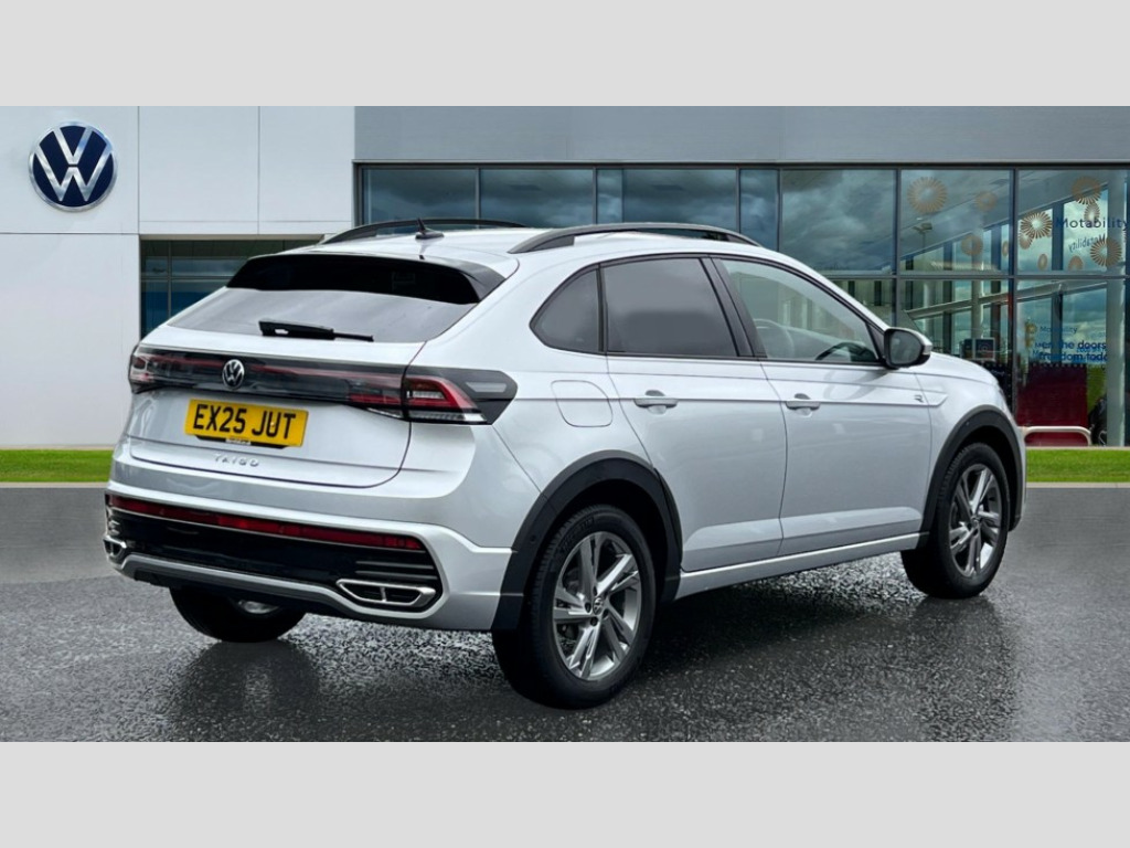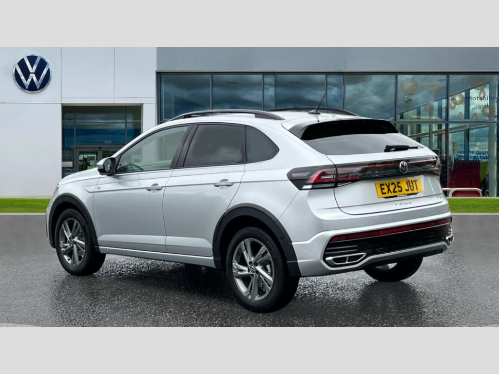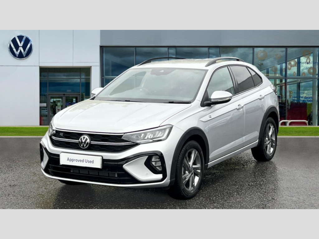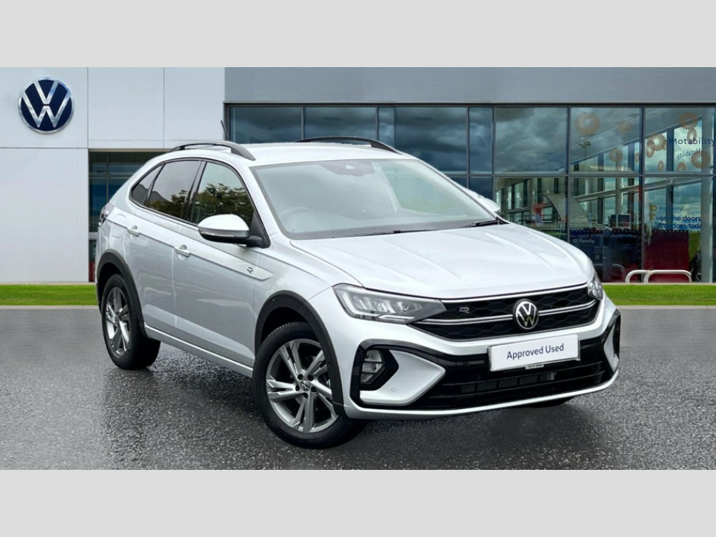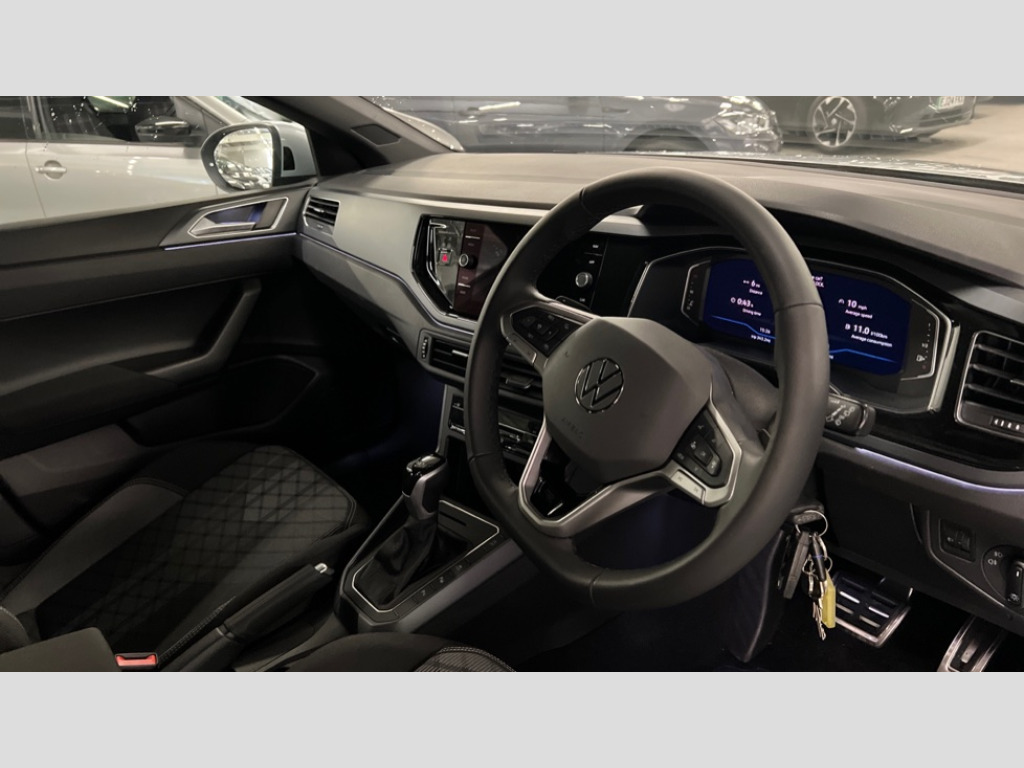 Volkswagen Taigo 1.0 TSI 115 R-Line 5dr DSG Adaptive cruise control, Advanced driver attention and drowsiness monitor, App-Connect including App-Connect Wireless, Digital cockpit pro - 10.25" high resolution TFT dash display screen with customizable menus and information, Driving profile selection, Dynamic road sign display, e-Call (emergency call), Power Steering, Travel assist including emergency assist, Washer fluid level indicator, Wireless Charging including Bluetooth, Start-stop system with battery regeneration (recuperation - energy recovery during braking), XDS electronic differential lock for improved traction and handling, Digital radio reception (DAB+), Diversity antenna for FM reception, WeConnect plus, Ambient lighting with logo projection, Aspherical driver's exterior mirror, Auto headlights, Body coloured bumpers, Bumpers in R-Line style, Electric windows, External USB type C socket and charging sockets, Front scuff plates with R-Line logo, LED rear combination lamp, LED third brake light, Left convex exterior mirror, Power folding adjustable/heated exterior mirrors and front passenger exterior mirror lowering function, Rear fog light on one side, reversing light on both sides, Rear side wing doors, Rear wash/wipe with intermittent wipe setting, 12V socket in centre console, 2 front reading lights, 3 rear head restraints, 3 seat bench in 2nd row, Air care climatronic air conditoning system with active combination filter and 2-zone temperature control, Black carpets, Black roof lining, Child seat anchor for child seat system i-Size, 2x top tether and child seat anchor in front on front passenger side, Chrome bezel for instrument cluster, vents, door handles + gear shift, Driver and front passenger seat height adjustment, Front + rear carpet mats, Front centre armrest, Front footwell illumination, Front sports comfort seats, Height and reach adjustable steering wheel, Interior ambient lighting and surround lighting, Karoso artvelours cloth upholstery, Leather trimmed gear knob, Leather wrapped multifunction steering wheel, Luggage compartment floor, Luggage compartment light, Lumbar support for driver's and front passengers seat, Seat covers in grey + titanium black, Single front passenger seat, Split folding backrest with centre armrest and unsplit rear seat bench, Stainless steel pedals, Storage compartment under front seats, Sun visors with illuminated vanity mirrors, Chrome Package - Taigo, Drivers assistance pack - Taigo, Light and Sight pack including High beam assist - Taigo, 2 x 3-point seatbelts/outer rear seats with ECE label, 3-point seat belts in front with pretensioner and height adjustment, 3-point seatbelt for centre rear seat, Adaptive driver and front passenger airbags with passenger airbag deactivation function, Driver and front passenger safety-optimised head restraints, Electronic stability control, Extended and predictive pedestrian/ cyclist protection, Front and rear disc brakes, Front curtain and side airbags with center airbag, Hill start assist, Manual rear child locks, Single tone horn, Tyre pressure loss indicator, Anti-theft alarm system with interior monitoring, backup horn, and towing protection, Grey anodised matte decorative inserts in dash and front door panels, Low rolling resistance tyres