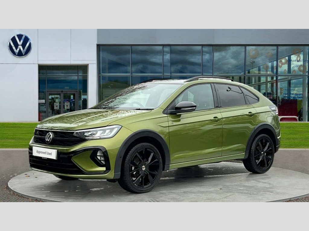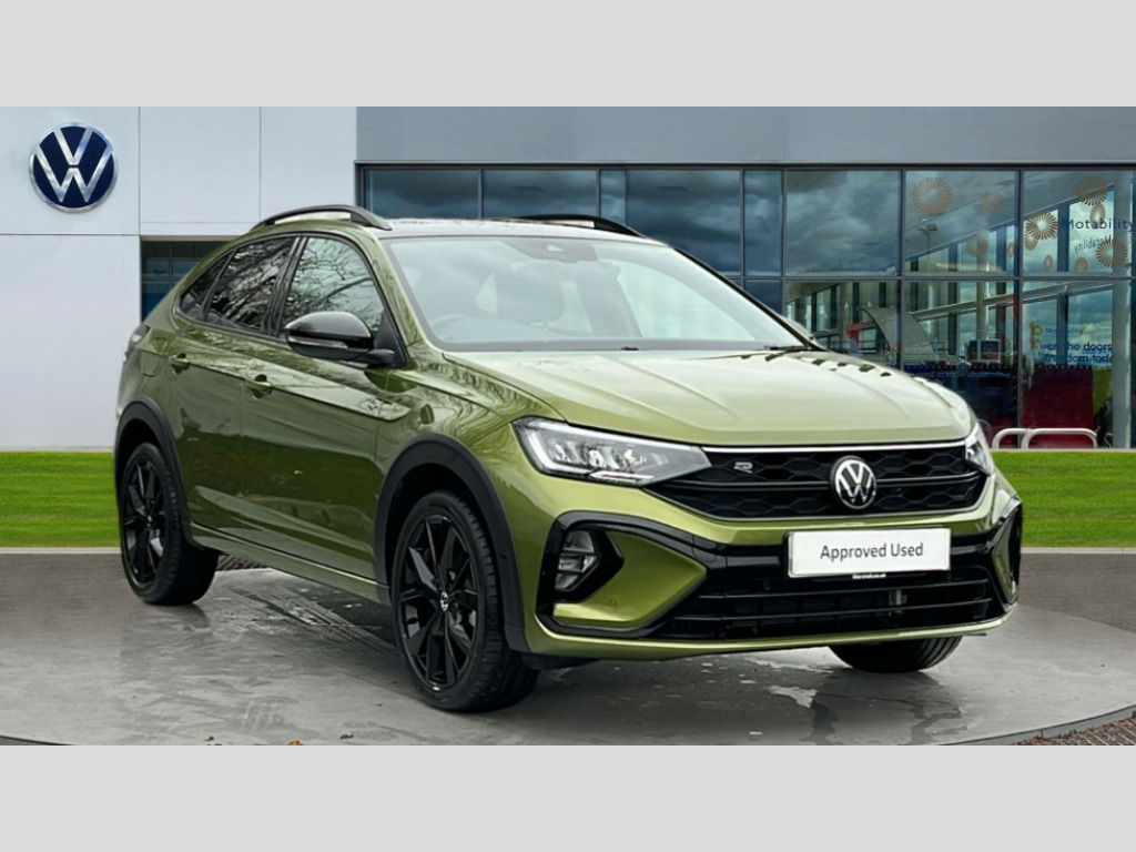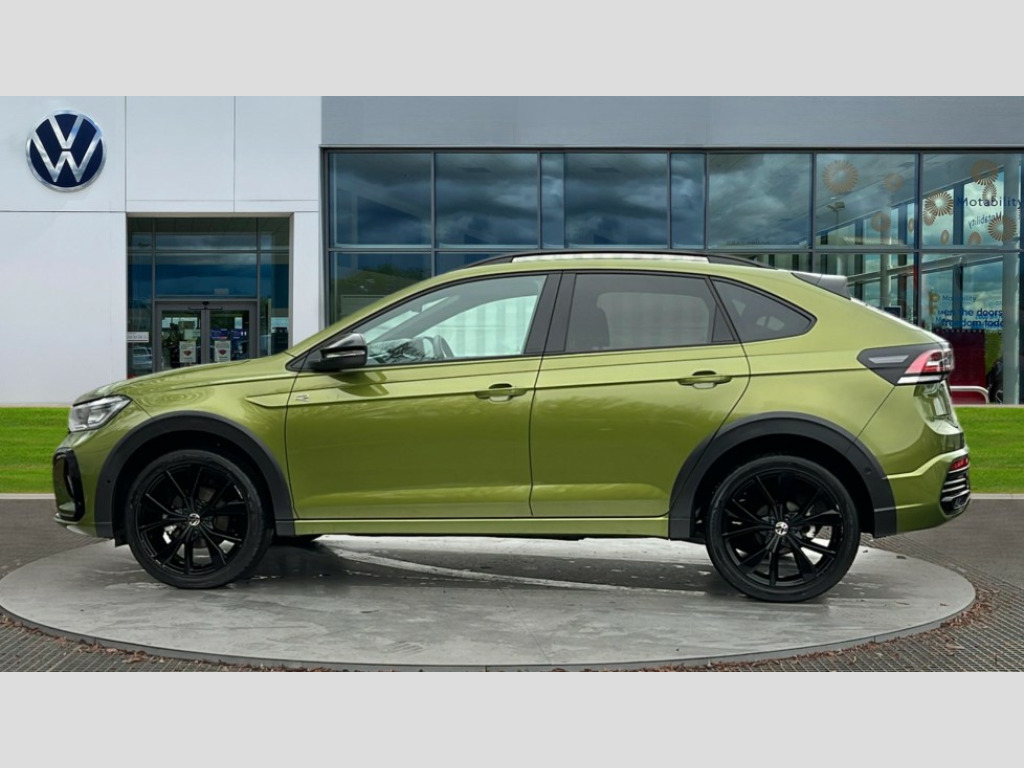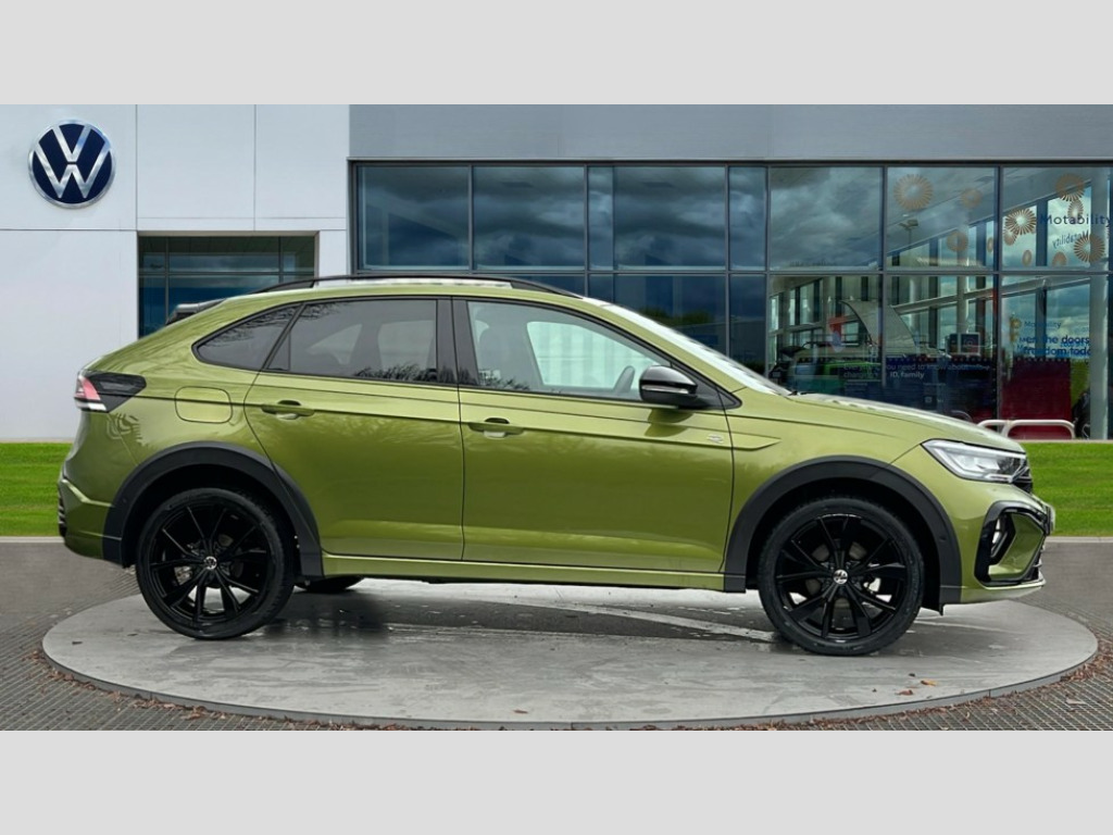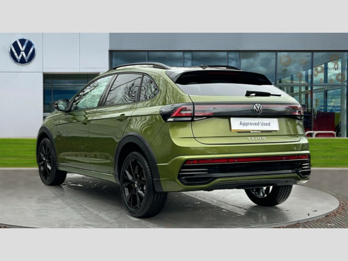 Volkswagen Taigo 1.0 TSI 115 R-Line 5dr DSG Adaptive cruise control, Advanced driver attention and drowsiness monitor, App-Connect including App-Connect Wireless, Digital cockpit pro - 10.25" high resolution TFT dash display screen with customizable menus and information, Driving profile selection, Dynamic road sign display, e-Call (emergency call), Power Steering, Travel assist including emergency assist, Washer fluid level indicator, Wireless Charging including Bluetooth, Start-stop system with battery regeneration (recuperation - energy recovery during braking), XDS electronic differential lock for improved traction and handling, Digital radio reception (DAB+), Diversity antenna for FM reception, WeConnect plus, Ambient lighting with logo projection, Aspherical driver's exterior mirror, Auto headlights, Body coloured bumpers, Bumpers in R-Line style, Electric windows, External USB type C socket and charging sockets, Front scuff plates with R-Line logo, LED rear combination lamp, LED third brake light, Left convex exterior mirror, Power folding adjustable/heated exterior mirrors and front passenger exterior mirror lowering function, Rear fog light on one side, reversing light on both sides, Rear side wing doors, Rear wash/wipe with intermittent wipe setting, 12V socket in centre console, 2 front reading lights, 3 rear head restraints, 3 seat bench in 2nd row, Air care climatronic air conditoning system with active combination filter and 2-zone temperature control, Black carpets, Black roof lining, Child seat anchor for child seat system i-Size, 2x top tether and child seat anchor in front on front passenger side, Chrome bezel for instrument cluster, vents, door handles + gear shift, Driver and front passenger seat height adjustment, Front + rear carpet mats, Front centre armrest, Front footwell illumination, Front sports comfort seats, Height and reach adjustable steering wheel, Interior ambient lighting and surround lighting, Karoso artvelours cloth upholstery, Leather trimmed gear knob, Leather wrapped multifunction steering wheel, Luggage compartment floor, Luggage compartment light, Lumbar support for driver's and front passengers seat, Seat covers in grey + titanium black, Single front passenger seat, Split folding backrest with centre armrest and unsplit rear seat bench, Stainless steel pedals, Storage compartment under front seats, Sun visors with illuminated vanity mirrors, Chrome Package - Taigo, Drivers assistance pack - Taigo, Light and Sight pack including High beam assist - Taigo, 2 x 3-point seatbelts/outer rear seats with ECE label, 3-point seat belts in front with pretensioner and height adjustment, 3-point seatbelt for centre rear seat, Adaptive driver and front passenger airbags with passenger airbag deactivation function, Driver and front passenger safety-optimised head restraints, Electronic stability control, Extended and predictive pedestrian/ cyclist protection, Front and rear disc brakes, Front curtain and side airbags with center airbag, Hill start assist, Manual rear child locks, Single tone horn, Tyre pressure loss indicator, Anti-theft alarm system with interior monitoring, backup horn, and towing protection, Grey anodised matte decorative inserts in dash and front door panels, Low rolling resistance tyres