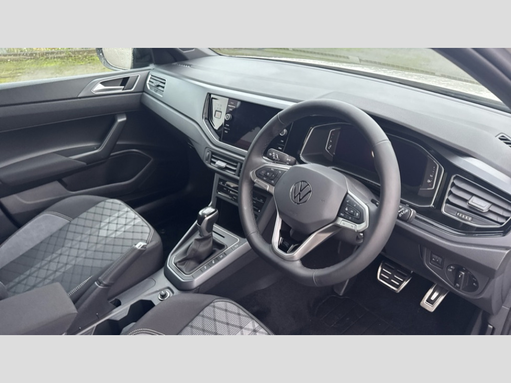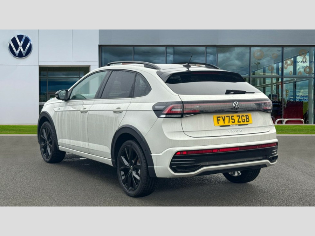 Volkswagen Taigo 1.0 TSI 115 R-Line 5dr DSG Adaptive cruise control, Advanced driver attention and drowsiness monitor, App-Connect including App-Connect Wireless, Digital cockpit pro - 10.25" high resolution TFT dash display screen with customizable menus and information, Driving profile selection, Dynamic road sign display, e-Call (emergency call), Power Steering, Travel assist including emergency assist, Washer fluid level indicator, Wireless Charging including Bluetooth, Start-stop system with battery regeneration (recuperation - energy recovery during braking), XDS electronic differential lock for improved traction and handling, Digital radio reception (DAB+), Diversity antenna for FM reception, WeConnect plus, Ambient lighting with logo projection, Aspherical driver's exterior mirror, Auto headlights, Body coloured bumpers, Bumpers in R-Line style, Electric windows, External USB type C socket and charging sockets, Front scuff plates with R-Line logo, LED rear combination lamp, LED third brake light, Left convex exterior mirror, Power folding adjustable/heated exterior mirrors and front passenger exterior mirror lowering function, Rear fog light on one side, reversing light on both sides, Rear side wing doors, Rear wash/wipe with intermittent wipe setting, 12V socket in centre console, 2 front reading lights, 3 rear head restraints, 3 seat bench in 2nd row, Air care climatronic air conditoning system with active combination filter and 2-zone temperature control, Black carpets, Black roof lining, Child seat anchor for child seat system i-Size, 2x top tether and child seat anchor in front on front passenger side, Chrome bezel for instrument cluster, vents, door handles + gear shift, Driver and front passenger seat height adjustment, Front + rear carpet mats, Front centre armrest, Front footwell illumination, Front sports comfort seats, Height and reach adjustable steering wheel, Interior ambient lighting and surround lighting, Karoso artvelours cloth upholstery, Leather trimmed gear knob, Leather wrapped multifunction steering wheel, Luggage compartment floor, Luggage compartment light, Lumbar support for driver's and front passengers seat, Seat covers in grey + titanium black, Single front passenger seat, Split folding backrest with centre armrest and unsplit rear seat bench, Stainless steel pedals, Storage compartment under front seats, Sun visors with illuminated vanity mirrors, Chrome Package - Taigo, Drivers assistance pack - Taigo, Light and Sight pack including High beam assist - Taigo, 2 x 3-point seatbelts/outer rear seats with ECE label, 3-point seat belts in front with pretensioner and height adjustment, 3-point seatbelt for centre rear seat, Adaptive driver and front passenger airbags with passenger airbag deactivation function, Driver and front passenger safety-optimised head restraints, Electronic stability control, Extended and predictive pedestrian/ cyclist protection, Front and rear disc brakes, Front curtain and side airbags with center airbag, Hill start assist, Manual rear child locks, Single tone horn, Tyre pressure loss indicator, Anti-theft alarm system with interior monitoring, backup horn, and towing protection, Grey anodised matte decorative inserts in dash and front door panels, Low rolling resistance tyres