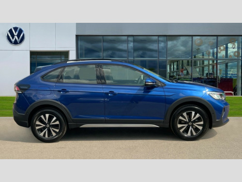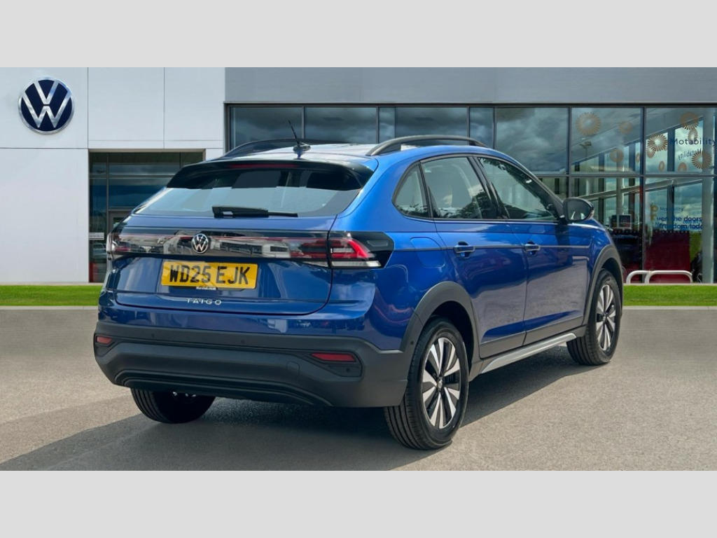 Volkswagen Taigo 1.0 TSI Life 5dr 8" Digital cockpit basic display, Advanced driver attention and drowsiness monitor, Dynamic road sign display, e-Call (emergency call), Power Steering, Predictive adaptive cruise control, Travel assist including emergency assist, Washer fluid level indicator, Wireless Charging including Bluetooth, Start-stop system with battery regeneration (recuperation - energy recovery during braking), Digital radio reception (DAB+), WeConnect plus, Ambient lighting with logo projection, Aspherical driver's exterior mirror, Auto headlights, Body coloured bumpers, Body coloured exterior mirror housings and door handles, Electric windows, External USB type C socket and charging sockets, Heat insulating glass windscreen, LED rear combination lamp, LED third brake light, Left convex exterior mirror, Power folding adjustable/heated exterior mirrors and front passenger exterior mirror lowering function, Rear fog light on one side, reversing light on both sides, Rear side wing doors, Rear wash/wipe with intermittent wipe setting, 'Slash/ Austin' Cloth upholstery, 12V socket in centre console, 2 front reading lights, 3 rear head restraints, 3 seat bench in 2nd row, Black carpets, Child seat anchor for child seat system i-Size, 2x top tether and child seat anchor in front on front passenger side, Door and side trim panels in titan black, Driver and front passenger seat height adjustment, Front centre armrest, Handbrake lever handle in leather, Height and reach adjustable steering wheel, Leather trimmed gear knob, Leather wrapped multifunction steering wheel, Luggage compartment floor, Luggage compartment light, Lumbar support for driver's and front passengers seat, Seat covers in titanium black, Single front passenger seat, Split folding backrest with centre armrest and unsplit rear seat bench, Storage compartment under front seats, Sun visors with illuminated vanity mirrors, Chrome Package - Taigo, Drivers assistance pack - Taigo, Light and Sight pack including High beam assist - Taigo, 2 x 3-point seatbelts/outer rear seats with ECE label, 3-point seat belts in front with pretensioner and height adjustment, 3-point seatbelt for centre rear seat, Adaptive driver and front passenger airbags with passenger airbag deactivation function, Driver and front passenger airbags with front passenger airbag de-activation, front side and curtain airbags, Driver and front passenger safety-optimised head restraints, Electronic stability control, Extended and predictive pedestrian/ cyclist protection, Front and rear disc brakes, Front curtain and side airbags with center airbag, Hill start assist, Manual rear child locks, Single tone horn, Tyre pressure loss indicator, Anti-theft alarm system with interior monitoring, backup horn, and towing protection, Lava stone black gloss/matt decorative inserts in dash and front door panels, Low rolling resistance tyres