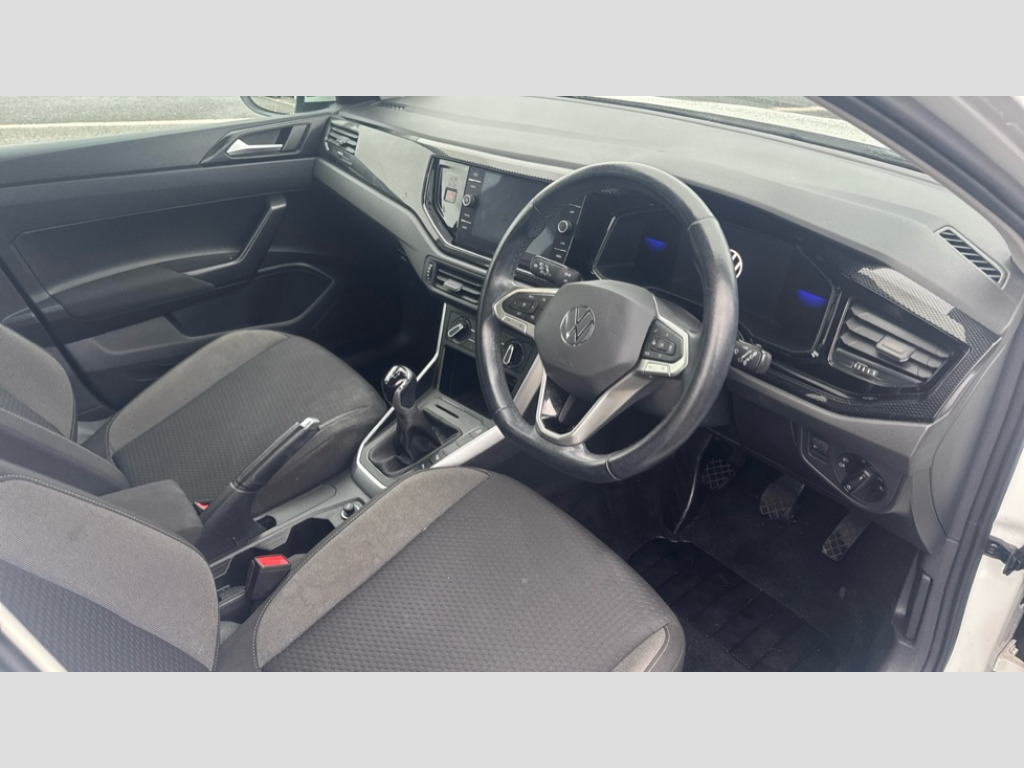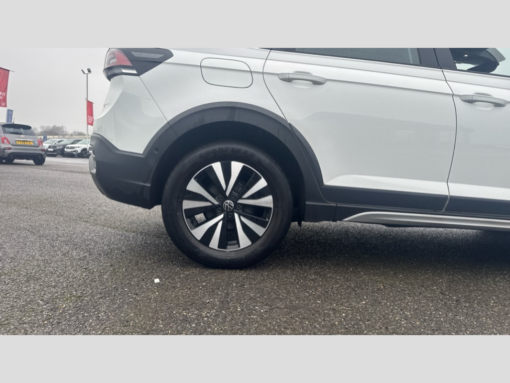 Volkswagen Taigo 1.0 TSI Life 5dr App-Connect including App-Connect Wireless, Driver alert system, e-Call (emergency call), Power Steering, Travel assist including emergency assist, Washer fluid level indicator, Wireless Charging including Bluetooth, Start-stop system with battery regeneration (recuperation - energy recovery during braking), Digital radio reception (DAB+), Diversity antenna for FM reception, WeConnect plus, Ambient lighting with logo projection, Aspherical driver's exterior mirror, Auto headlights, Body coloured bumpers, Body coloured exterior mirror housings and door handles, Electric windows, External USB type C socket and charging sockets, Front fog lamps with cornering function, Headlight range control, Heat insulating glass windscreen, LED headlamps, LED rear combination lamp, LED third brake light, Left convex exterior mirror, Power folding adjustable/heated exterior mirrors and front passenger exterior mirror lowering function, Rear fog light on one side, reversing light on both sides, Rear side wing doors, Rear wash/wipe with intermittent wipe setting, 'Slash/ Austin' Cloth upholstery, 12V socket in centre console, 2 front reading lights, 3 rear head restraints, 3 seat bench in 2nd row, Black carpets, Child seat anchor for child seat system i-Size, 2x top tether and child seat anchor in front on front passenger side, Door and side trim panels in titan black, Driver and front passenger seat height adjustment, Front centre armrest, Handbrake lever handle in leather, Height and reach adjustable steering wheel, Leather trimmed gear knob, Leather wrapped multifunction steering wheel, Luggage compartment floor, Luggage compartment light, Lumbar support for driver's and front passengers seat, Seat covers in titanium black, Single front passenger seat, Split folding backrest with centre armrest and unsplit rear seat bench, Storage compartment under front seats, Sun visors with illuminated vanity mirrors, Chrome Package - Taigo, Drivers assistance pack - Taigo, Light and Sight pack including High beam assist - Taigo, 2 x 3-point seatbelts/outer rear seats with ECE label, 3-point seat belts in front with pretensioner and height adjustment, 3-point seatbelt for centre rear seat, Driver and front passenger airbags with front passenger airbag de-activation, front side and curtain airbags, Driver and front passenger safety-optimised head restraints, Electronic stability control, Extended and predictive pedestrian/ cyclist protection, Front and rear disc brakes, Front curtain and side airbags with center airbag, Hill start assist, Manual rear child locks, Single tone horn, Tyre pressure loss indicator, Anti-theft alarm system with interior monitoring, backup horn, and towing protection, Anti-theft wheel bolts, Lava stone black gloss/matt decorative inserts in dash and front door panels, Low rolling resistance tyres