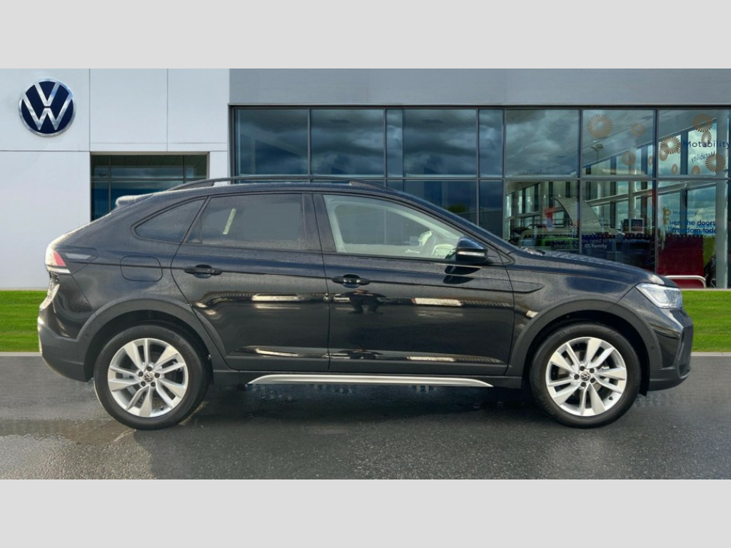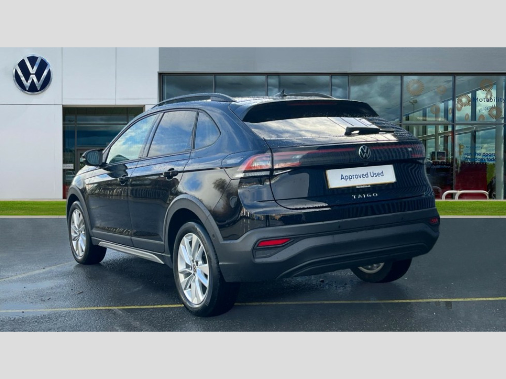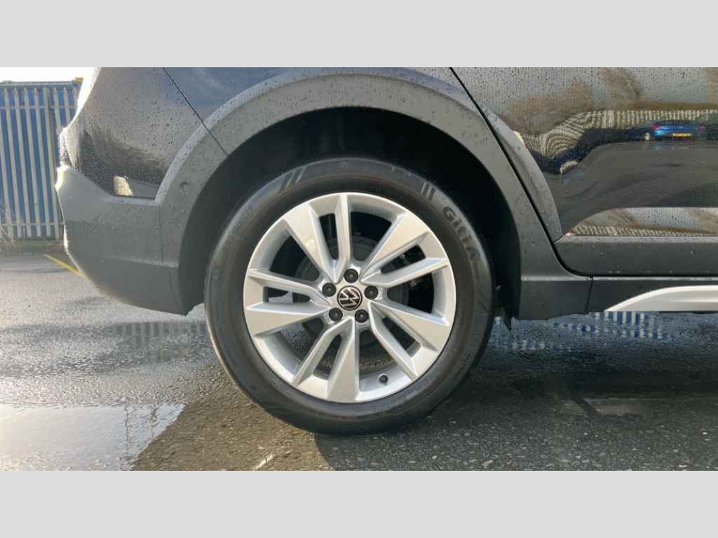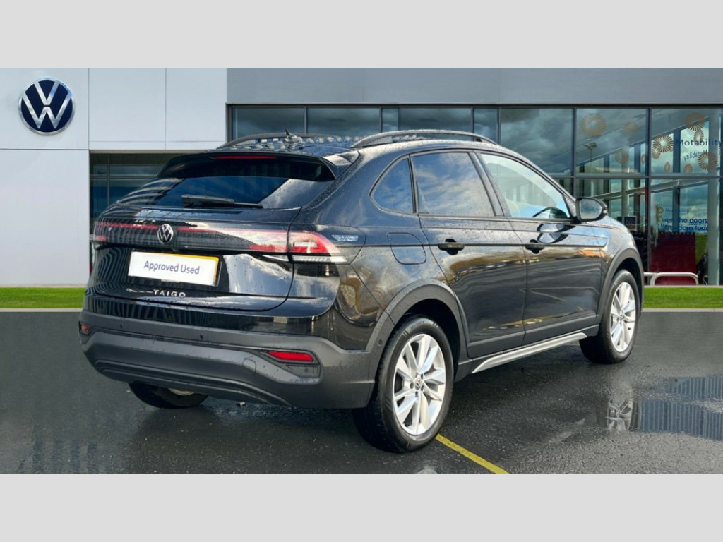 Volkswagen Taigo 1.0 TSI Match 5dr Advanced driver attention and drowsiness monitor, Dynamic road sign display, e-Call (emergency call), Power Steering, Predictive adaptive cruise control, Rear view camera, Travel assist including emergency assist, Washer fluid level indicator, Wireless Charging including Bluetooth, Start-stop system with battery regeneration (recuperation - energy recovery during braking), WeConnect plus, Ambient lighting with logo projection, Aspherical driver's exterior mirror, Body coloured bumpers, Body coloured exterior mirror housings and door handles, Electric windows, External USB type C socket and charging sockets, Heat insulating glass windscreen, LED rear combination lamp, LED third brake light, Left convex exterior mirror, Power folding adjustable/heated exterior mirrors and front passenger exterior mirror lowering function, Rear fog light on one side, reversing light on both sides, Rear side wing doors, Rear wash/wipe with intermittent wipe setting, Side windows in heat-insulating glass, from B-pillar and rear window dark tinted, 'Slash/ Austin' Cloth upholstery, 12V socket in centre console, 2 front reading lights, 3 rear head restraints, 3 seat bench in 2nd row, Black carpets, Ceramique headliner, Child seat anchor for child seat system i-Size, 2x top tether and child seat anchor in front on front passenger side, Door and side trim panels in titan black, Driver and front passenger seat height adjustment, Front centre armrest, Handbrake lever handle in leather, Height and reach adjustable steering wheel, Leather trimmed gear knob, Leather wrapped multifunction steering wheel, Luggage compartment floor, Luggage compartment light, Lumbar support for driver's and front passengers seat, Seat covers in titanium black, Single front passenger seat, Split folding backrest with centre armrest and unsplit rear seat bench, Storage compartment under front seats, Sun visors with illuminated vanity mirrors, Titanium black instrument panel, Chrome Package - Taigo, Drivers assistance package - Taigo, Light and sight pack - Taigo, 2 x 3-point seatbelts/outer rear seats with ECE label, 3-point seat belts in front with pretensioner and height adjustment, 3-point seatbelt for centre rear seat, Driver and front passenger airbag with front passenger airbag deactivation, Driver and front passenger safety-optimised head restraints, Electronic stability control, Extended and predictive pedestrian/ cyclist protection, Front and rear disc brakes, Front curtain and side airbags with center airbag, Hill start assist, Manual rear child locks, Single tone horn, Tyre pressure loss indicator, Anti-theft alarm system with interior monitoring, backup horn, and towing protection, Keyless locking and starting system keyless access with safelock, Black (slush) Dashboard, Lava stone black gloss/matt decorative inserts in dash and front door panels, Low rolling resistance tyres