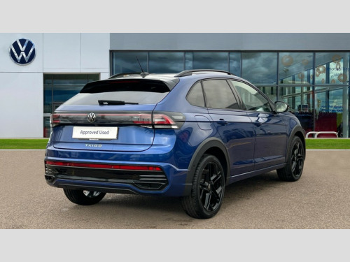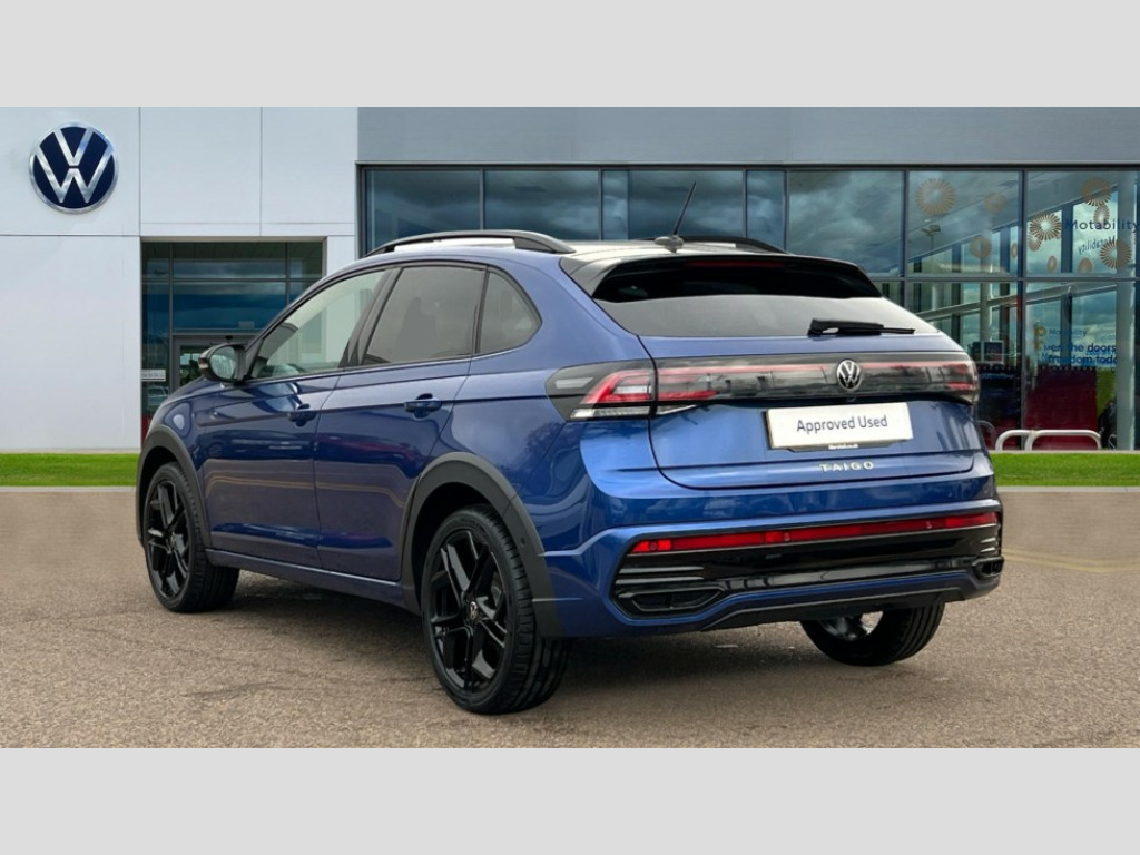 Volkswagen Taigo 1.0 TSI 115 Black Edition 5dr Advanced driver attention and drowsiness monitor, Digital cockpit pro - 10.25" high resolution TFT dash display screen with customizable menus and information, Driving profile selection, e-Call (emergency call), Power Steering, Predictive adaptive cruise control, Travel assist including emergency assist, Washer fluid level indicator, Wireless Charging including Bluetooth, Start-stop system with battery regeneration (recuperation - energy recovery during braking), XDS electronic differential lock for improved traction and handling, Digital radio reception (DAB+), WeConnect plus, Ambient lighting with logo projection, Aspherical driver's exterior mirror, Auto headlights, Body coloured bumpers, Body coloured door handles, Cornering headlights, Electric windows, External USB type C socket and charging sockets, LED rear combination lamp, LED third brake light, Left convex exterior mirror, Power folding adjustable/heated exterior mirrors and front passenger exterior mirror lowering function, Rear fog light on one side, reversing light on both sides, Rear side wing doors, Rear wash/wipe with intermittent wipe setting, 12V socket in centre console, 2 front reading lights, 3 rear head restraints, 3 seat bench in 2nd row, Air care climatronic air conditoning system with active combination filter and 2-zone temperature control, Black carpets, Black roof lining, Child seat anchor for child seat system i-Size, 2x top tether and child seat anchor in front on front passenger side, Chrome bezel for instrument cluster, vents, door handles + gear shift, Driver and front passenger seat height adjustment, Front + rear carpet mats, Front centre armrest, Front footwell illumination, Front sports comfort seats, Heated front seats, Height and reach adjustable steering wheel, Interior ambient lighting and surround lighting, Karoso artvelours cloth upholstery, Leather trimmed gear knob, Leather wrapped multifunction steering wheel, Luggage compartment floor, Luggage compartment light, Lumbar support for driver's and front passengers seat, Seat covers in grey + titanium black, Single front passenger seat, Split folding backrest with centre armrest and unsplit rear seat bench, Stainless steel pedals, Storage compartment under front seats, Sun visors with illuminated vanity mirrors, Black design pack - Taigo Black Edition, Black roof pack with mirror housing - Taigo, IQ.LIGHT - LED matrix headlights pack - Taigo, Light and Sight pack including High beam assist - Taigo, 2 x 3-point seatbelts/outer rear seats with ECE label, 3-point seat belts in front with pretensioner and height adjustment, 3-point seatbelt for centre rear seat, Adaptive driver and front passenger airbags with passenger airbag deactivation function, Driver and front passenger safety-optimised head restraints, Electronic stability control, Extended and predictive pedestrian/ cyclist protection, Front and rear disc brakes, Front curtain and side airbags with center airbag, Hill start assist, Manual rear child locks, Single tone horn, Tyre pressure loss indicator, Anti-theft alarm system with interior monitoring, backup horn, and towing protection, Grey anodised matte decorative inserts in dash and front door panels, 18" Misano black alloy wheels with diamond-turned surface, Breakdown kit, Low rolling resistance tyres