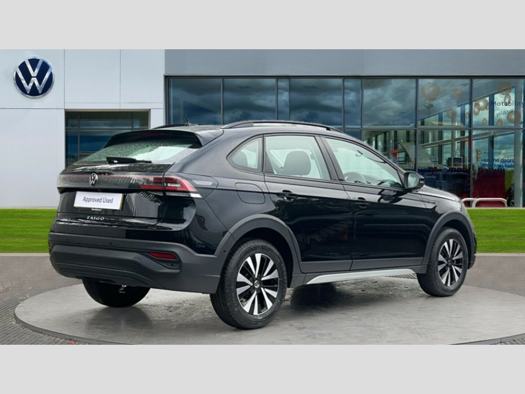 Volkswagen Taigo 1.0 TSI 115 Life 5dr DSG Adaptive cruise control, Advanced driver attention and drowsiness monitor, Dynamic road sign display, e-Call (emergency call), Power Steering, Travel assist including emergency assist, Washer fluid level indicator, Wireless Charging including Bluetooth, Start-stop system with battery regeneration (recuperation - energy recovery during braking), WeConnect plus, Ambient lighting with logo projection, Aspherical driver's exterior mirror, Auto headlights, Body coloured bumpers, Body coloured exterior mirror housings and door handles, Electric windows, External USB type C socket and charging sockets, Heat insulating glass windscreen, LED rear combination lamp, LED third brake light, Left convex exterior mirror, Power folding adjustable/heated exterior mirrors and front passenger exterior mirror lowering function, Rear fog light on one side, reversing light on both sides, Rear side wing doors, Rear wash/wipe with intermittent wipe setting, 'Slash/ Austin' Cloth upholstery, 12V socket in centre console, 2 front reading lights, 3 rear head restraints, 3 seat bench in 2nd row, Black carpets, Child seat anchor for child seat system i-Size, 2x top tether and child seat anchor in front on front passenger side, Door and side trim panels in titan black, Driver and front passenger seat height adjustment, Front centre armrest, Height and reach adjustable steering wheel, Leather trimmed gear knob, Leather wrapped multifunction steering wheel with paddle shift, Luggage compartment floor, Luggage compartment light, Lumbar support for driver's and front passengers seat, Seat covers in titanium black, Single front passenger seat, Split folding backrest with centre armrest and unsplit rear seat bench, Storage compartment under front seats, Sun visors with illuminated vanity mirrors, Chrome Package - Taigo, Drivers assistance pack - Taigo, Light and Sight pack including High beam assist - Taigo, 2 x 3-point seatbelts/outer rear seats with ECE label, 3-point seat belts in front with pretensioner and height adjustment, 3-point seatbelt for centre rear seat, Adaptive driver and front passenger airbags with passenger airbag deactivation function, Driver and front passenger safety-optimised head restraints, Electronic stability control, Extended and predictive pedestrian/ cyclist protection, Front and rear disc brakes, Front curtain and side airbags with center airbag, Hill start assist, Manual rear child locks, Single tone horn, Tyre pressure loss indicator, Anti-theft alarm system with interior monitoring, backup horn, and towing protection, Lava stone black gloss/matt decorative inserts in dash and front door panels, Low rolling resistance tyres